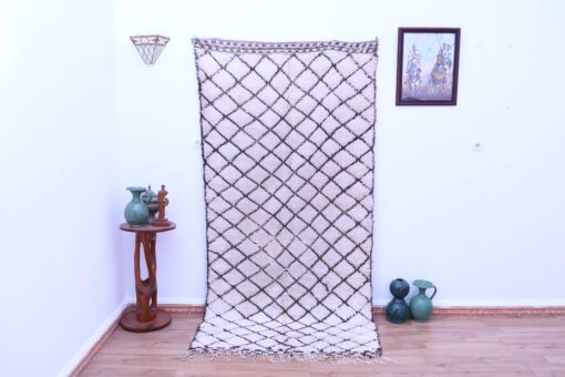 سجادة صوف مغربية فاخرة من بني وراين، مقاس 125×265 سم - صناعة يدوية، جمال أبيضسجادة صوف مغربية فاخرة من بني وراين، مقاس 125×265 سم – صناعة يدوية، جمال أبيض