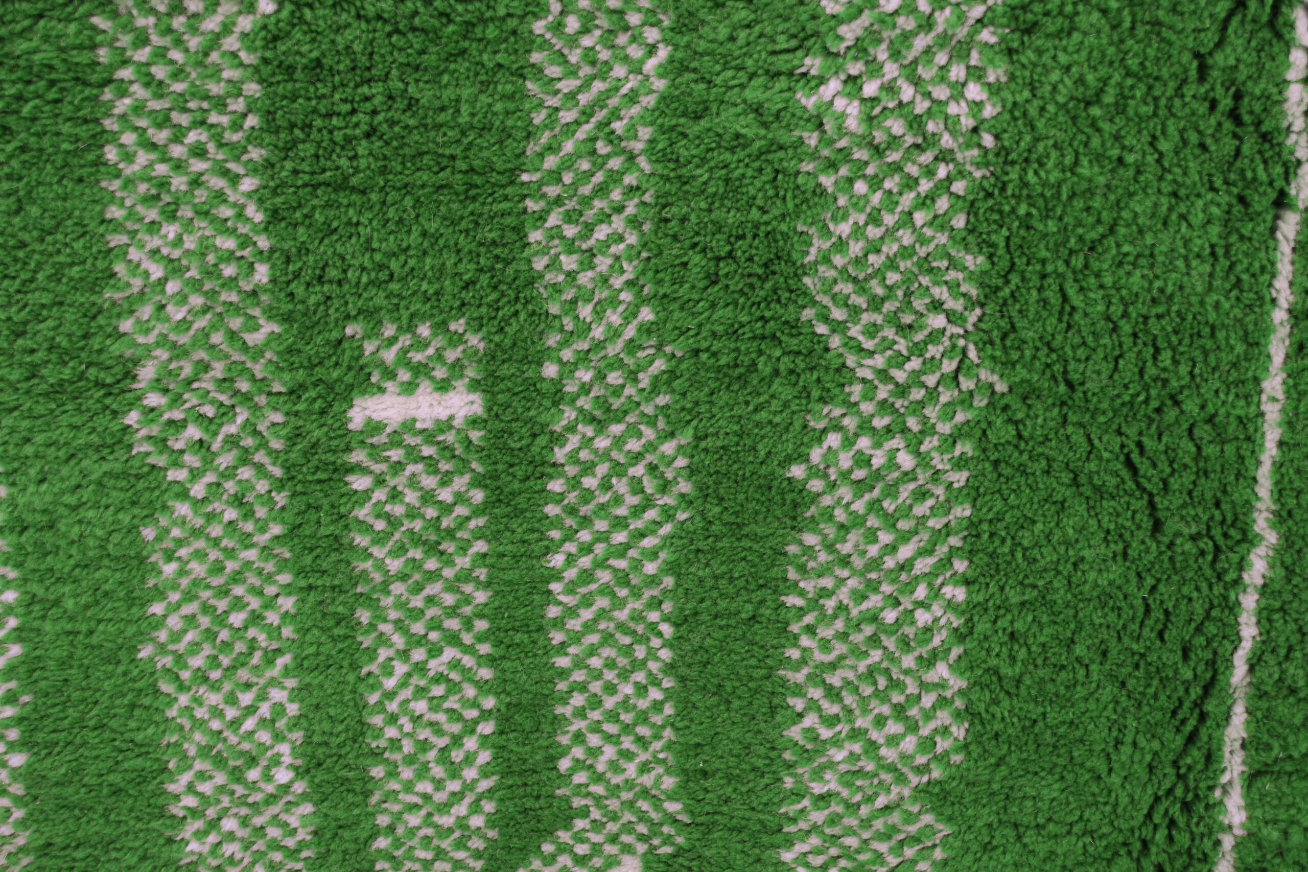 تُعدّ هذه السجادة المغربية الأصيلة المصنوعة يدويًا قطعةً مميزةً وجريئة التصميم تُضفي لمسةً عصريةً على أي منزل حديث. منسوجة من صوف 100% بمقاس 7×10، تتميز هذه السجادة المغربية بلونها الأخضر الغني وخطوطها المحايدة الناعمة التي تُوحي بالحداثة والبساطة واللمسة البوهيمية في آنٍ واحد. استخدمها كسجادة في غرفة المعيشة تحت الأريكة، أو في غرفة النوم.