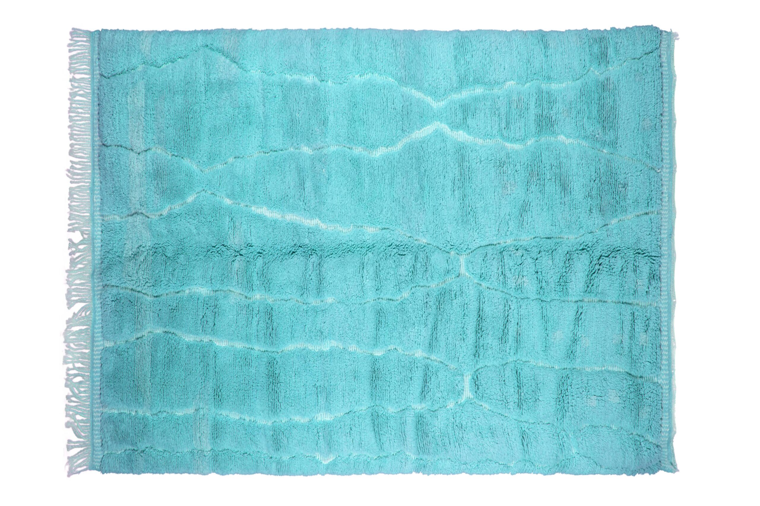 Moroccan Rug Handmade Wool 7x10 - Turquoise Blue Modern Boho Area Rug for Living Room Bedroom - Mrirt BerberMoroccan Rug Handmade Wool 7×10 – Turquoise Blue Modern Boho Area Rug for Living Room Bedroom – Mrirt Berber