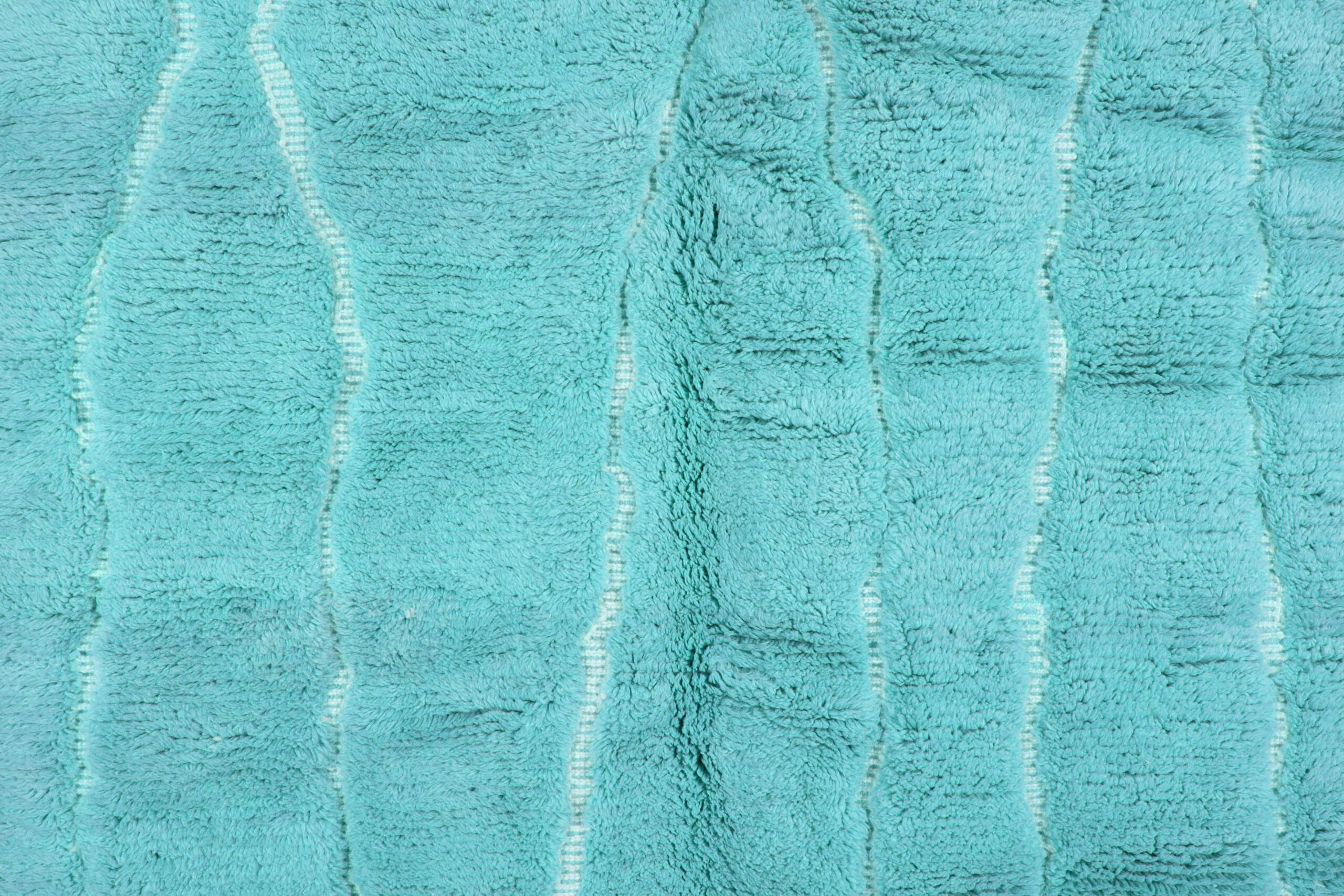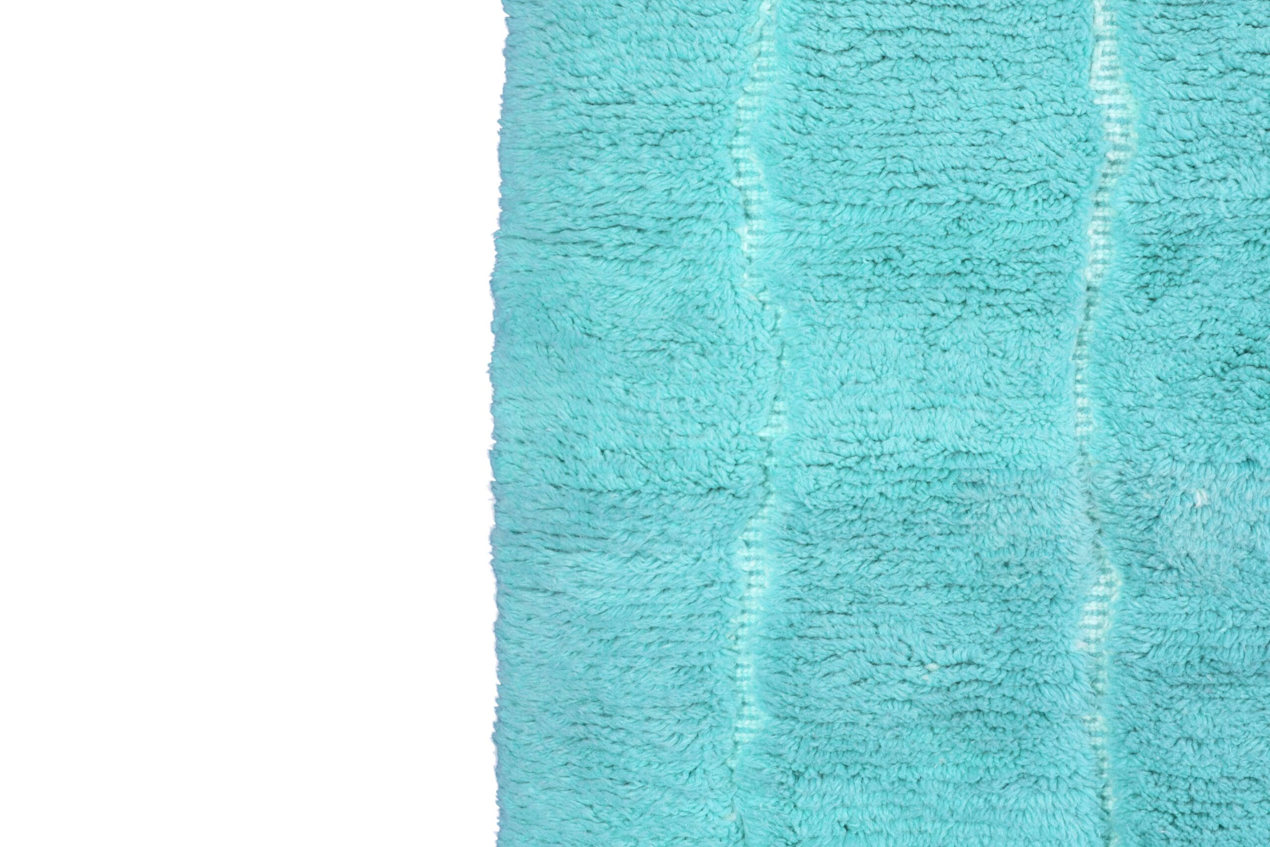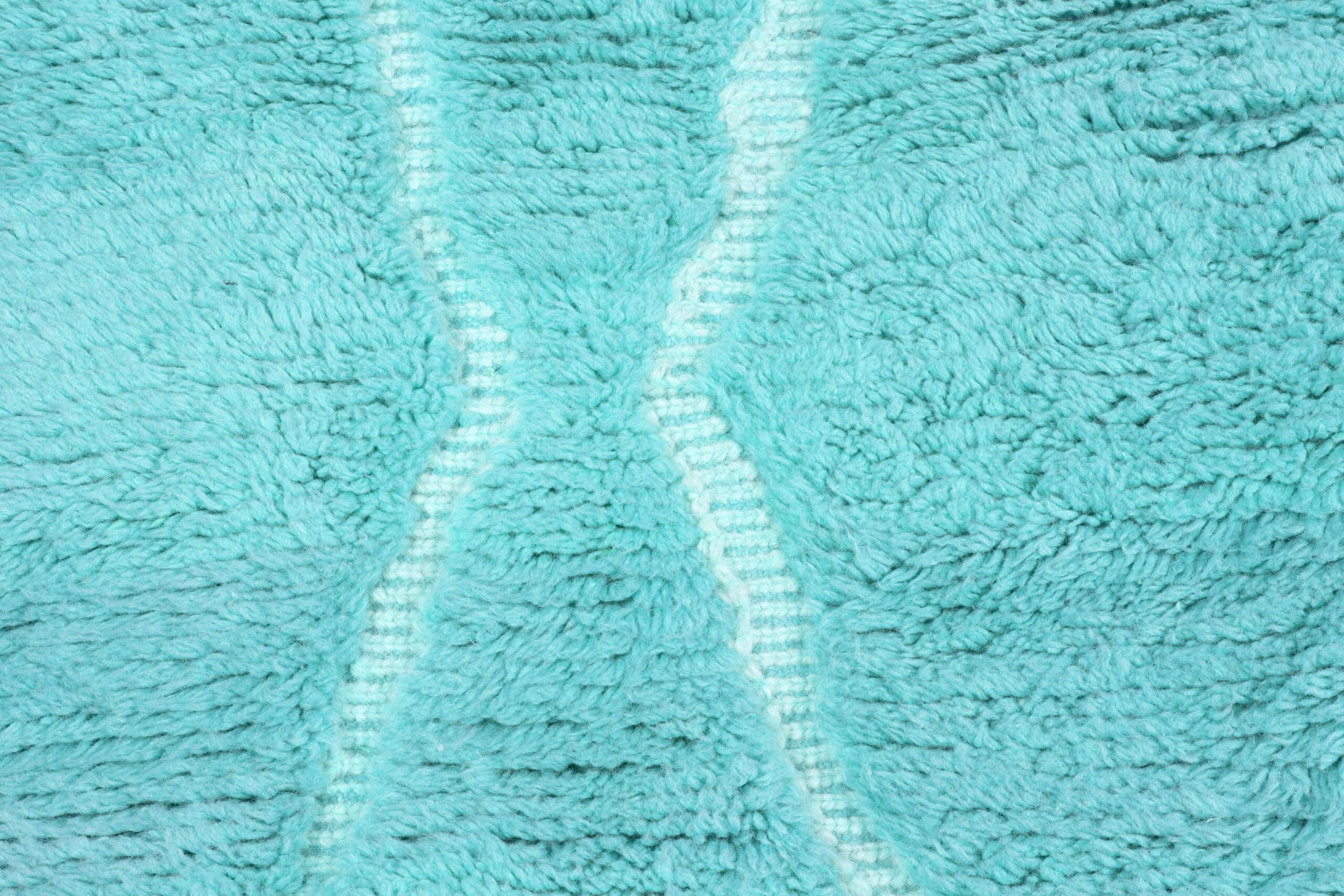 The color reads as turquoise/aqua blue with subtle lighter raised lines—perfect if you’re searching for a colorful but still clean, modern Moroccan rug. The plush wool pile gives that cozy, sink-in feel you want from a living room rug, and the simple geometric texture works beautifully in boho, minimalist, modern, Scandinavian, and mid-century modern homes. Use it as a large area rug under a sofa and coffee table, or as a bedroom area rug for a warm, soft landing every morning.