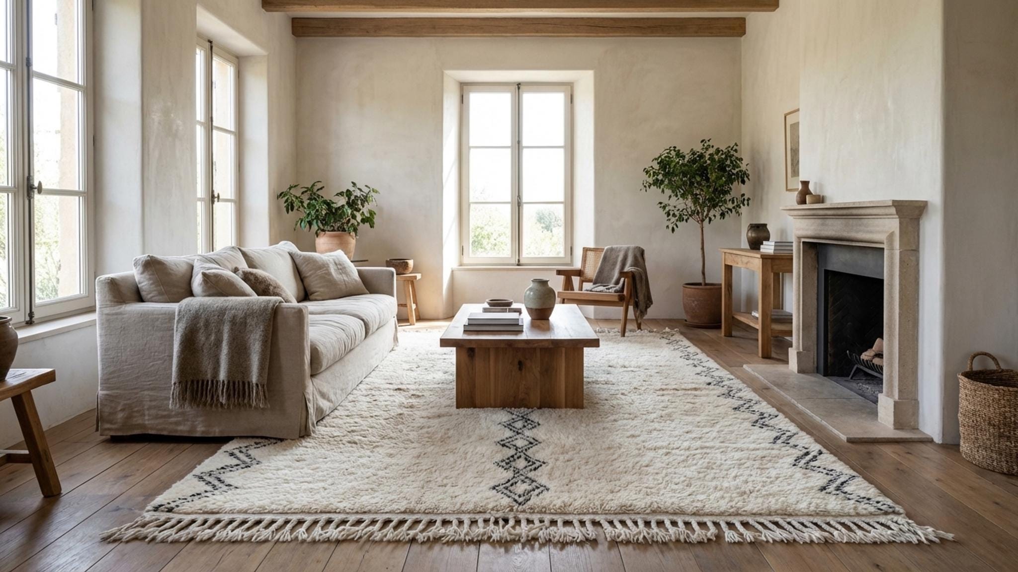 This authentic Moroccan rug is a handmade Beni Ourain wool piece, woven by 3rd generation Berber artisans in Morocco. If you’re searching for a premium Moroccan rug with true heritage, this one-of-a-kind Berber rug brings soft natural wool, timeless minimal patterning, and elevated craftsmanship to modern homes. Fair trade certified (Label STEP), this Moroccan rug is made with care, tradition, and ethical sourcing from start to finish.