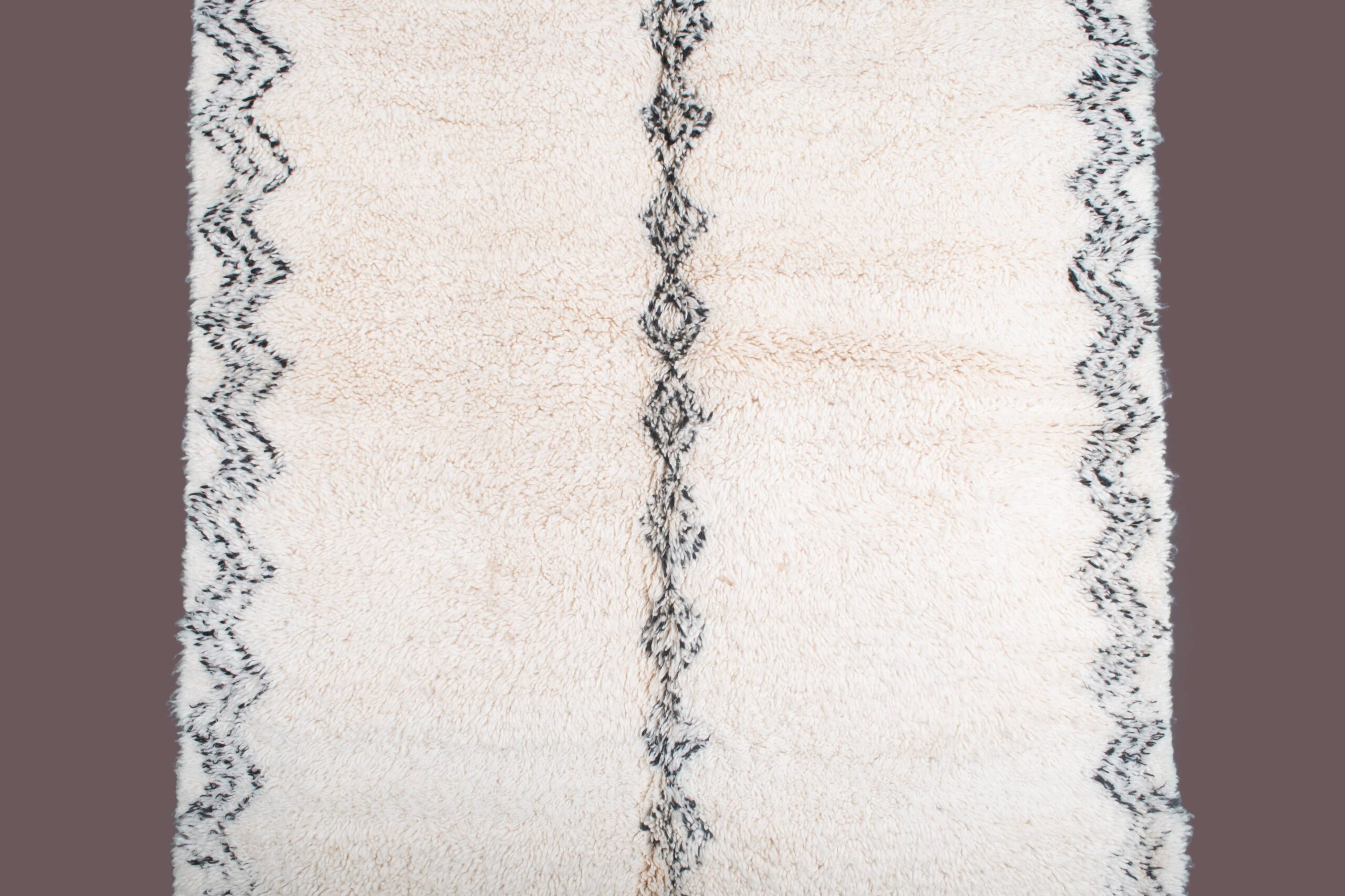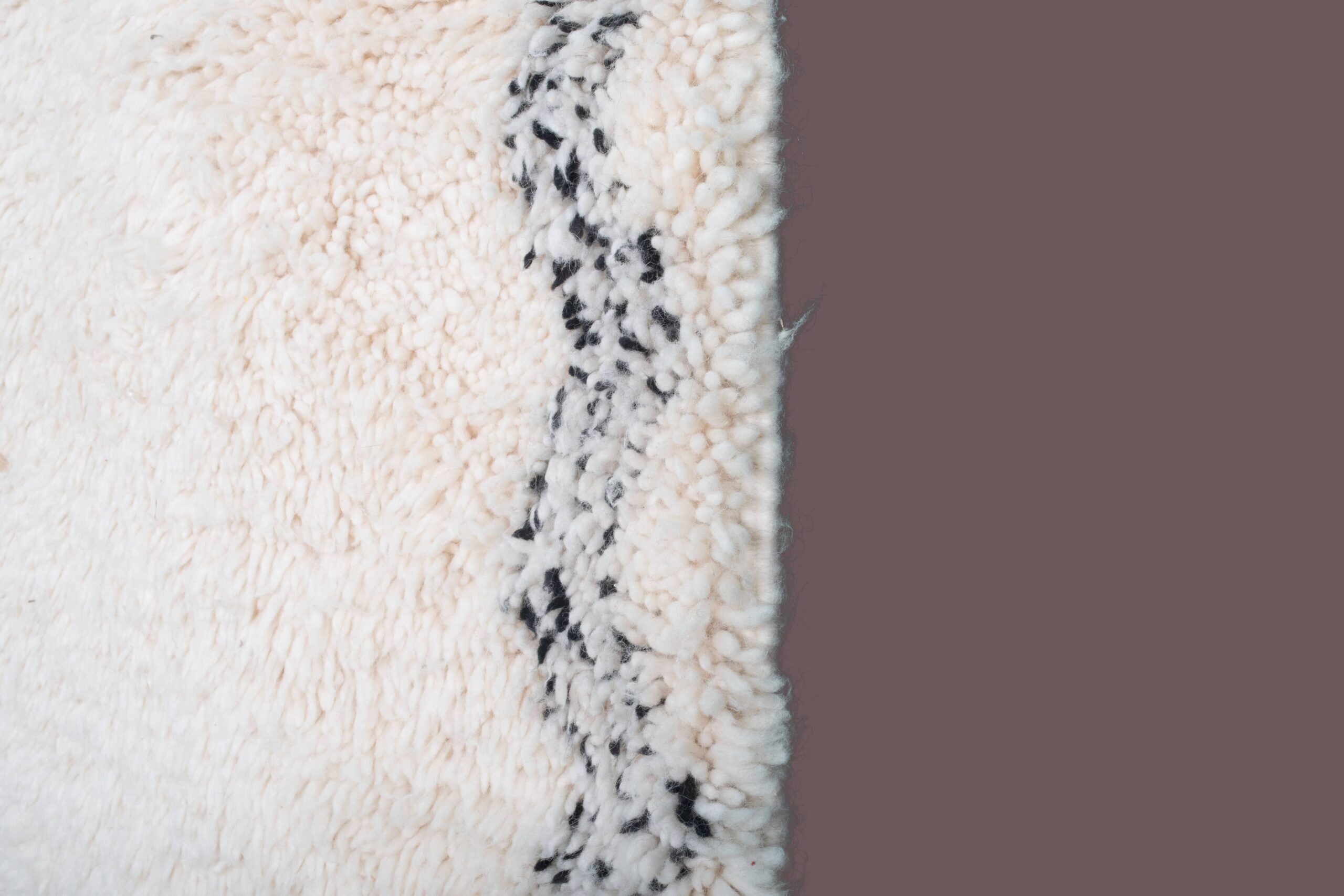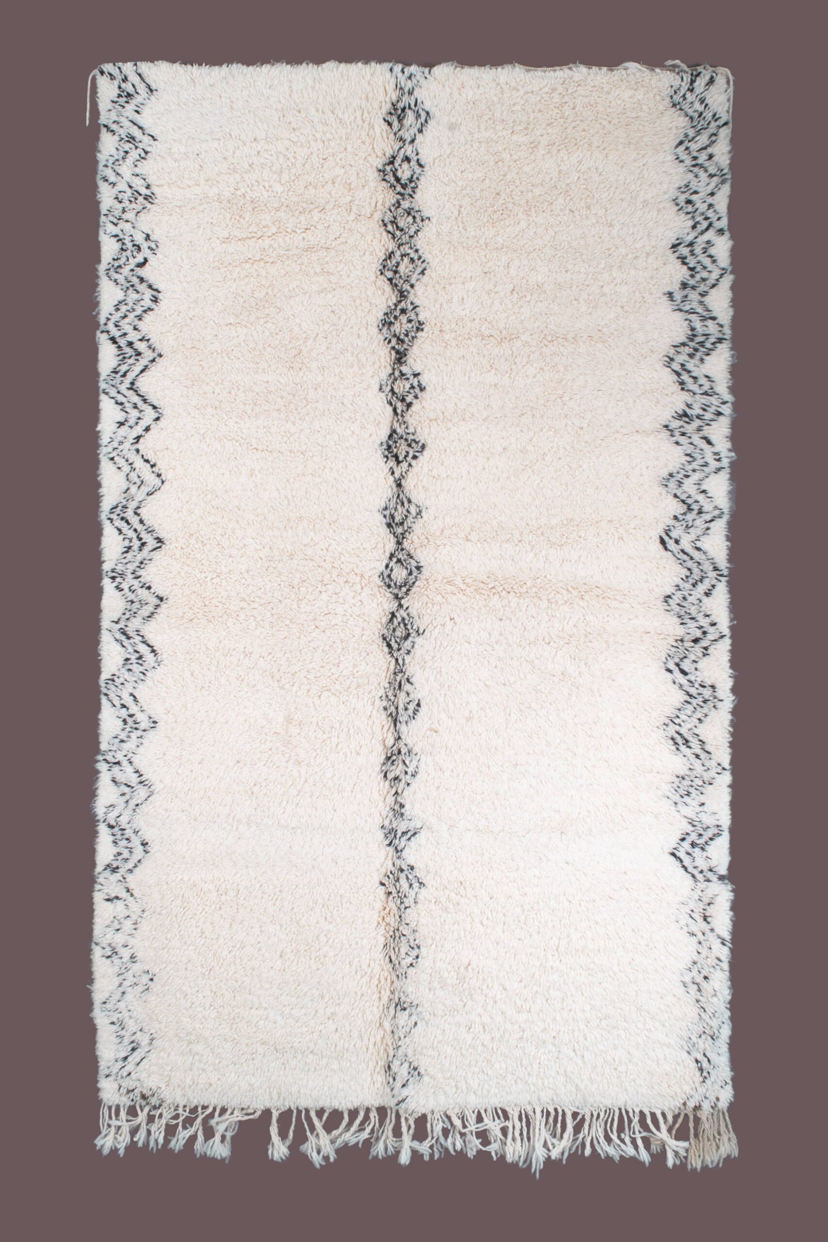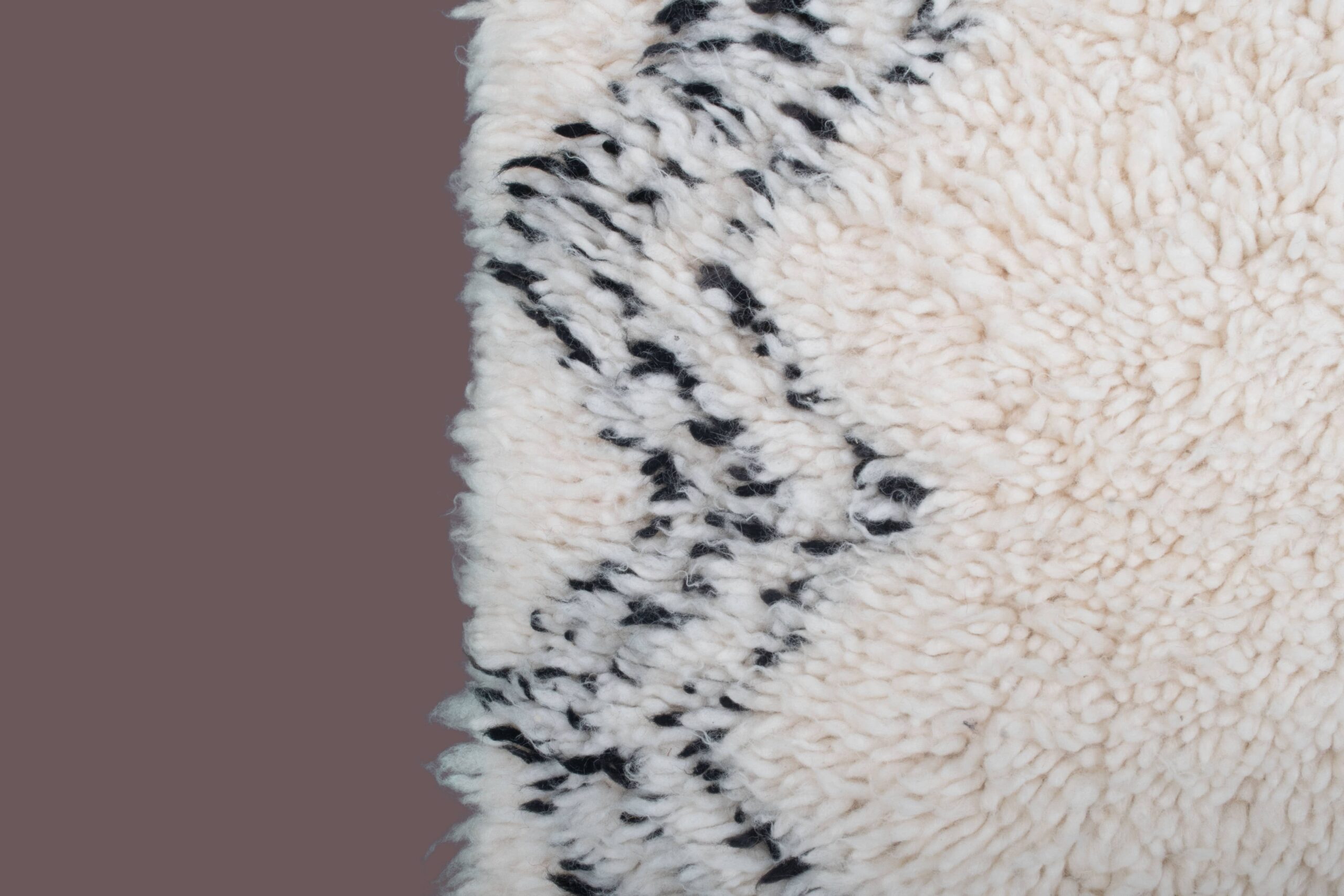 This authentic handmade Moroccan rug is a timeless, cozy upgrade for a modern American home. This Moroccan rug is handwoven from natural wool in a versatile ivory/cream neutral that brightens a space without feeling stark. Sized 5×9 ft, it works beautifully as a living room rug under a coffee table or as a bedroom area rug beside the bed. Fair trade certified and made by 3rd generation Berber artisans.