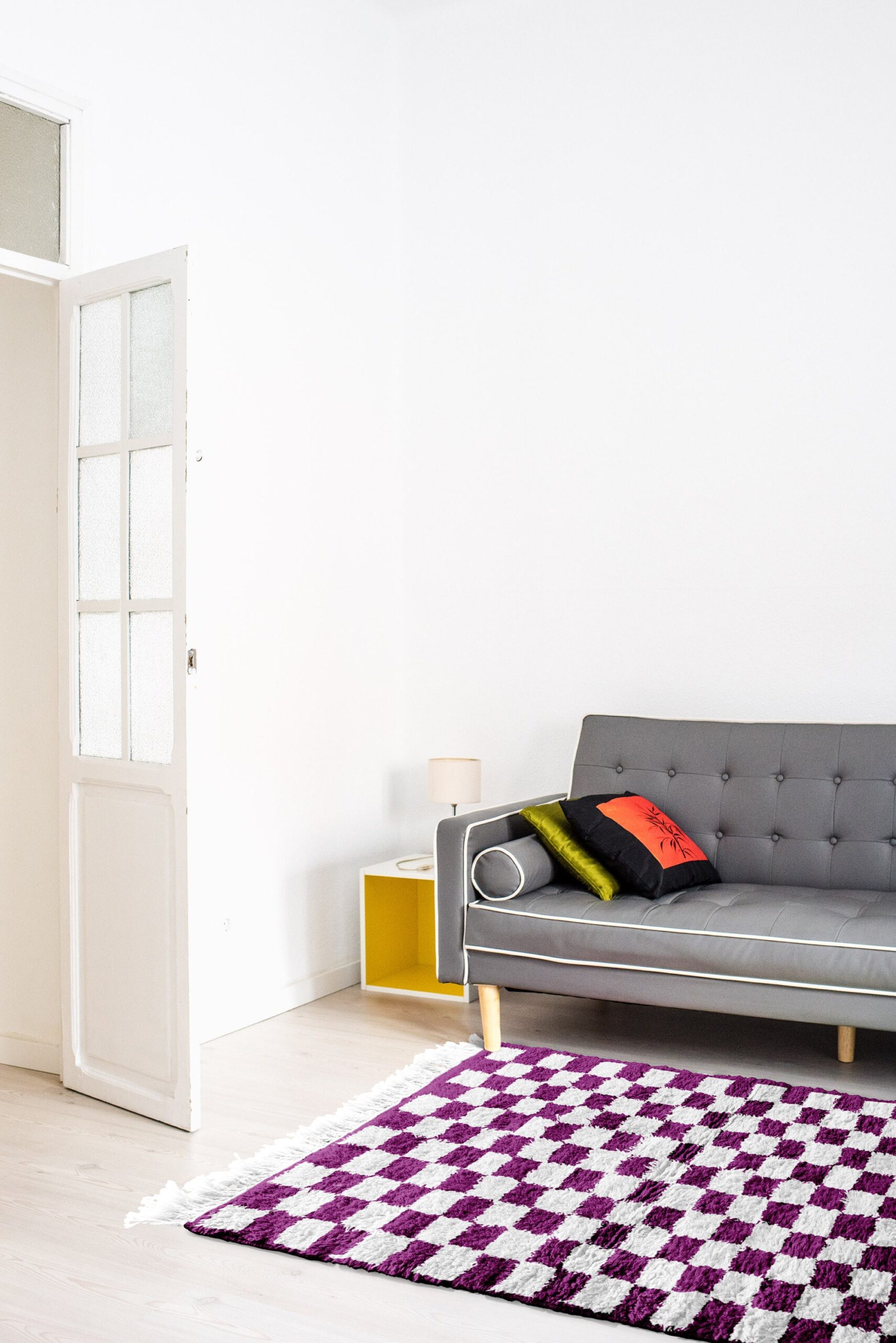 The colors in this wool rug are buyer-friendly and easy to style: creamy ivory paired with a deep plum/wine tone in a clean checkerboard grid. The look is boho-meets-modern, great for minimalist spaces that need warmth, and also a natural fit for Scandinavian-friendly interiors. Use it as a statement area rug in the living room, a soft landing in the bedroom, or a bold but tasteful rug for an office or reading nook. The wool pile feels plush and cozy underfoot.