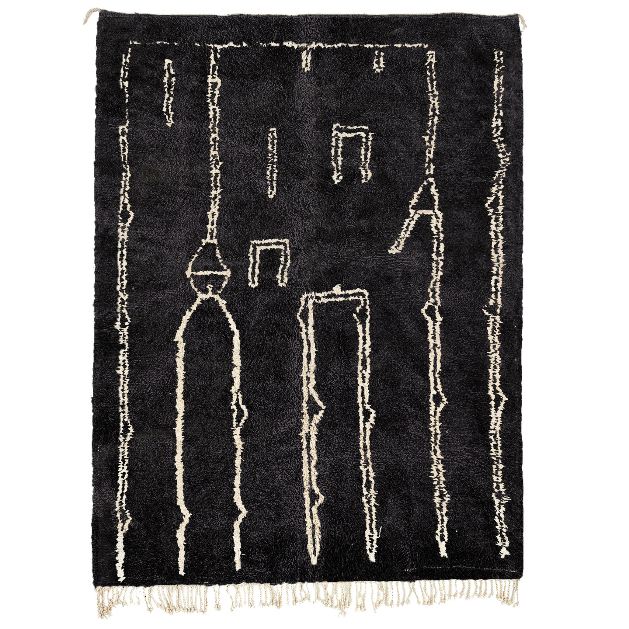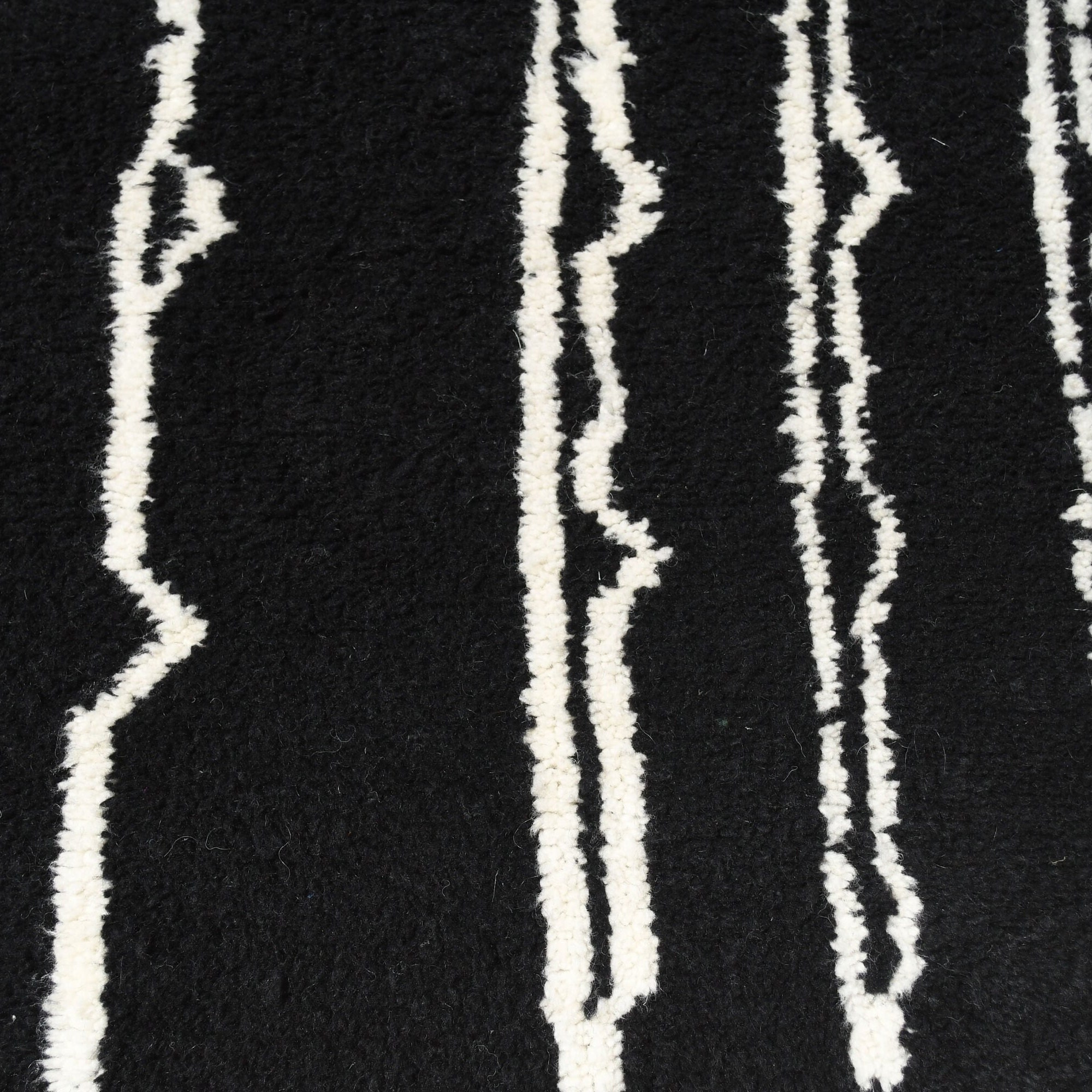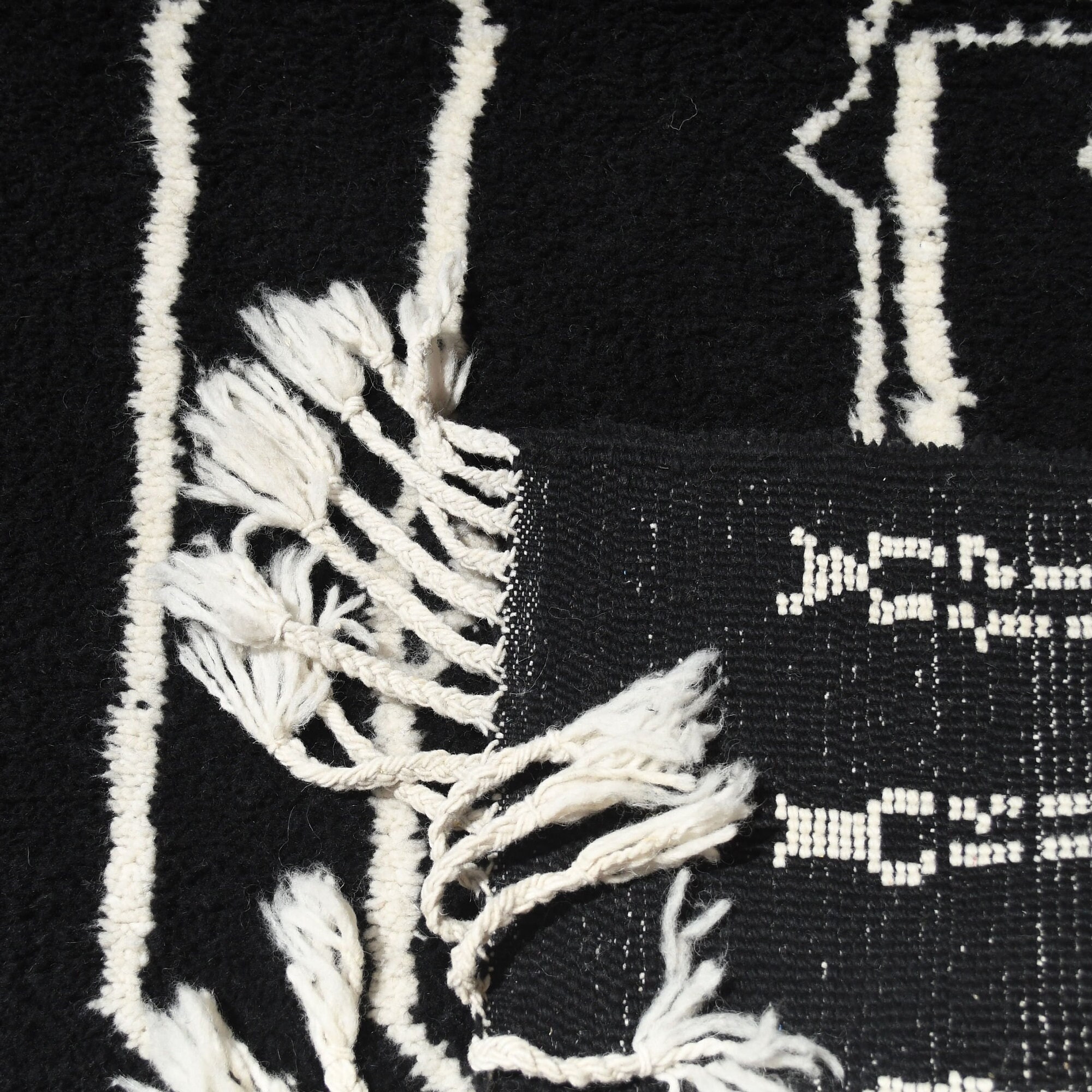 The deep black field paired with ivory/cream lines creates a high-contrast look that feels both modern and timeless. This black and white Moroccan rug works beautifully with minimalist, Scandinavian, mid-century modern, and modern farmhouse interiors. The plush wool pile feels warm and soft underfoot—perfect for a cozy living room rug near the sofa or a bedroom rug that makes mornings easier. If you love “clean but not cold,” this handwoven area rug adds texture without adding clutter.