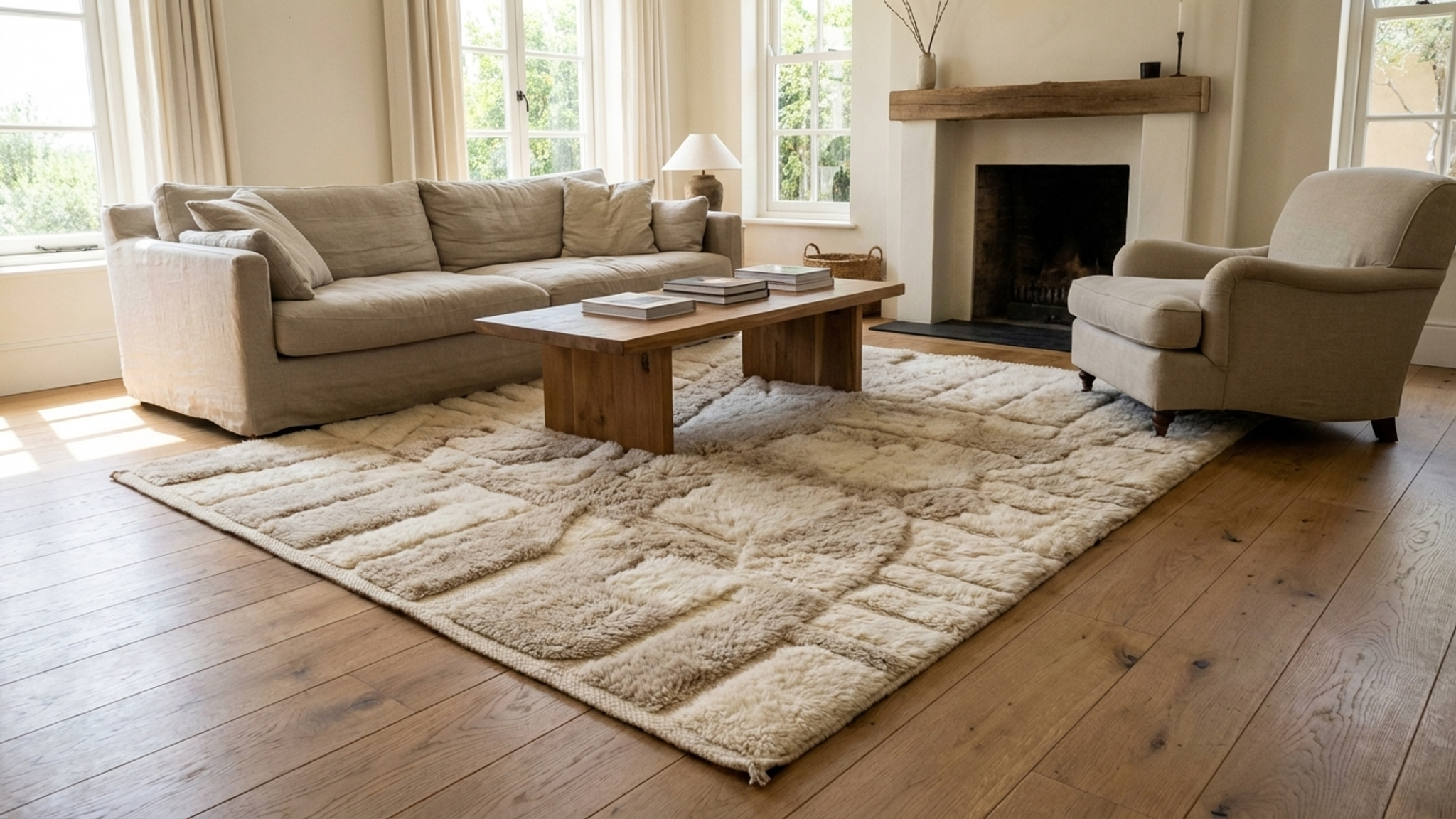 ✨ Also works as a large area rug for a reading nook or studio, pairing beautifully with linen, oak, black accents, and clay ceramics.