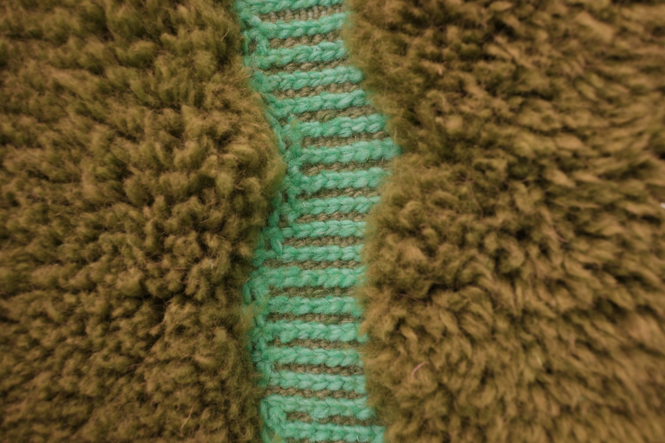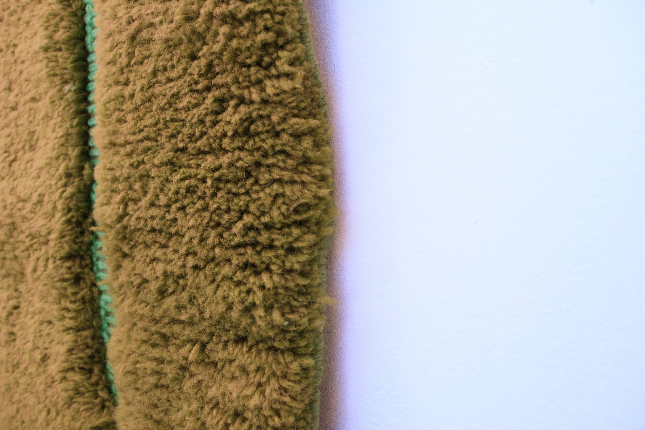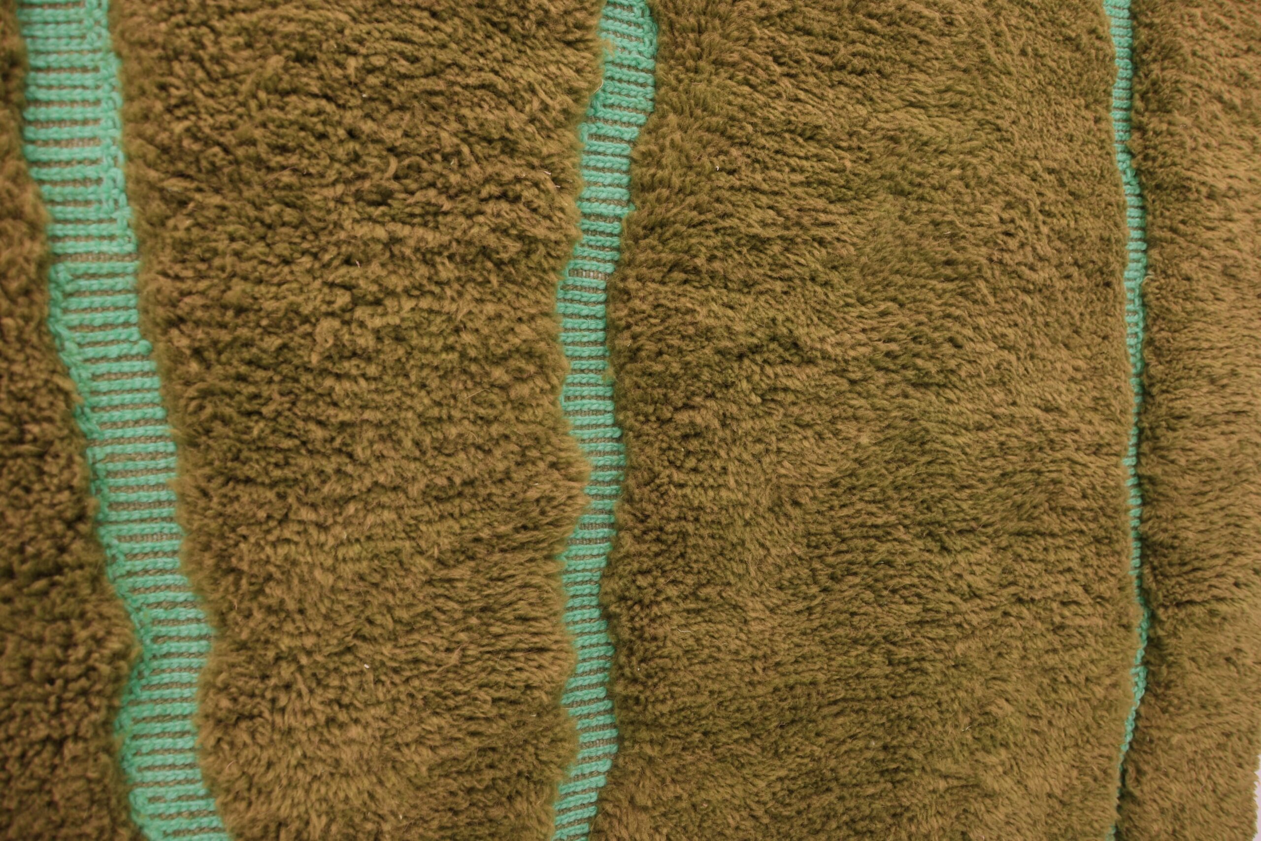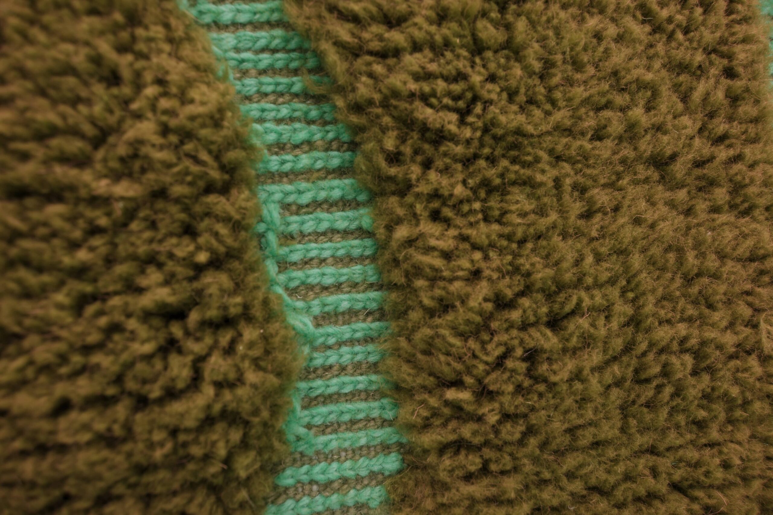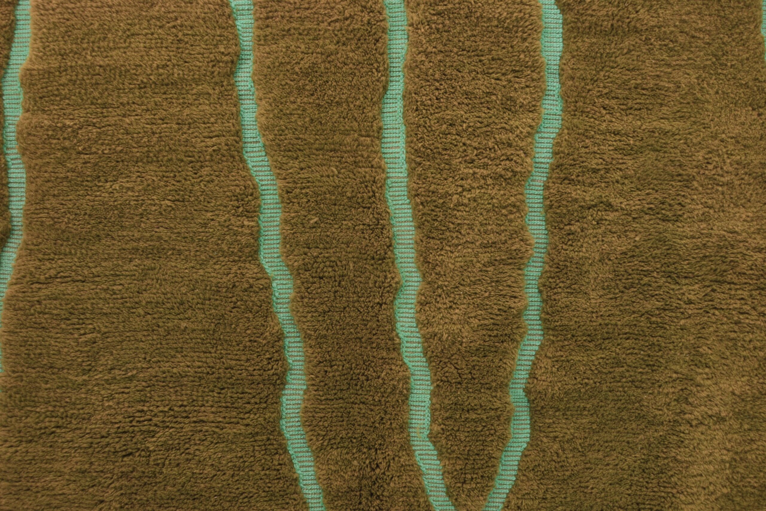 The rug’s color palette is a harmonious blend of earthy tones, primarily featuring a rich olive grün base complemented by gentle sage green lines. This combination creates a serene and natural ambiance, making it an ideal choice for spaces that aim to evoke tranquility and warmth. The colors work seamlessly together, enhancing the rug’s ability to blend with a wide range of decor themes.