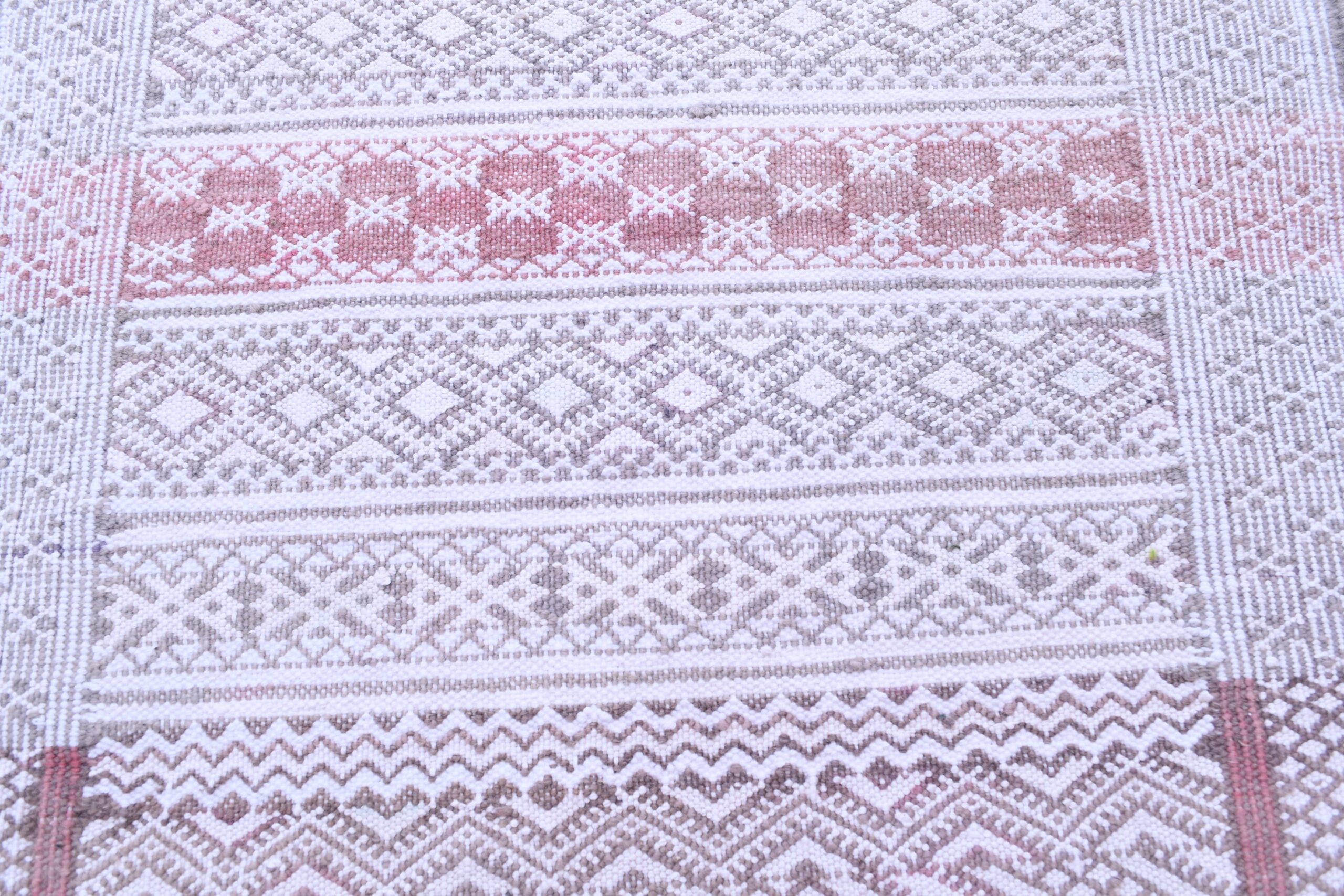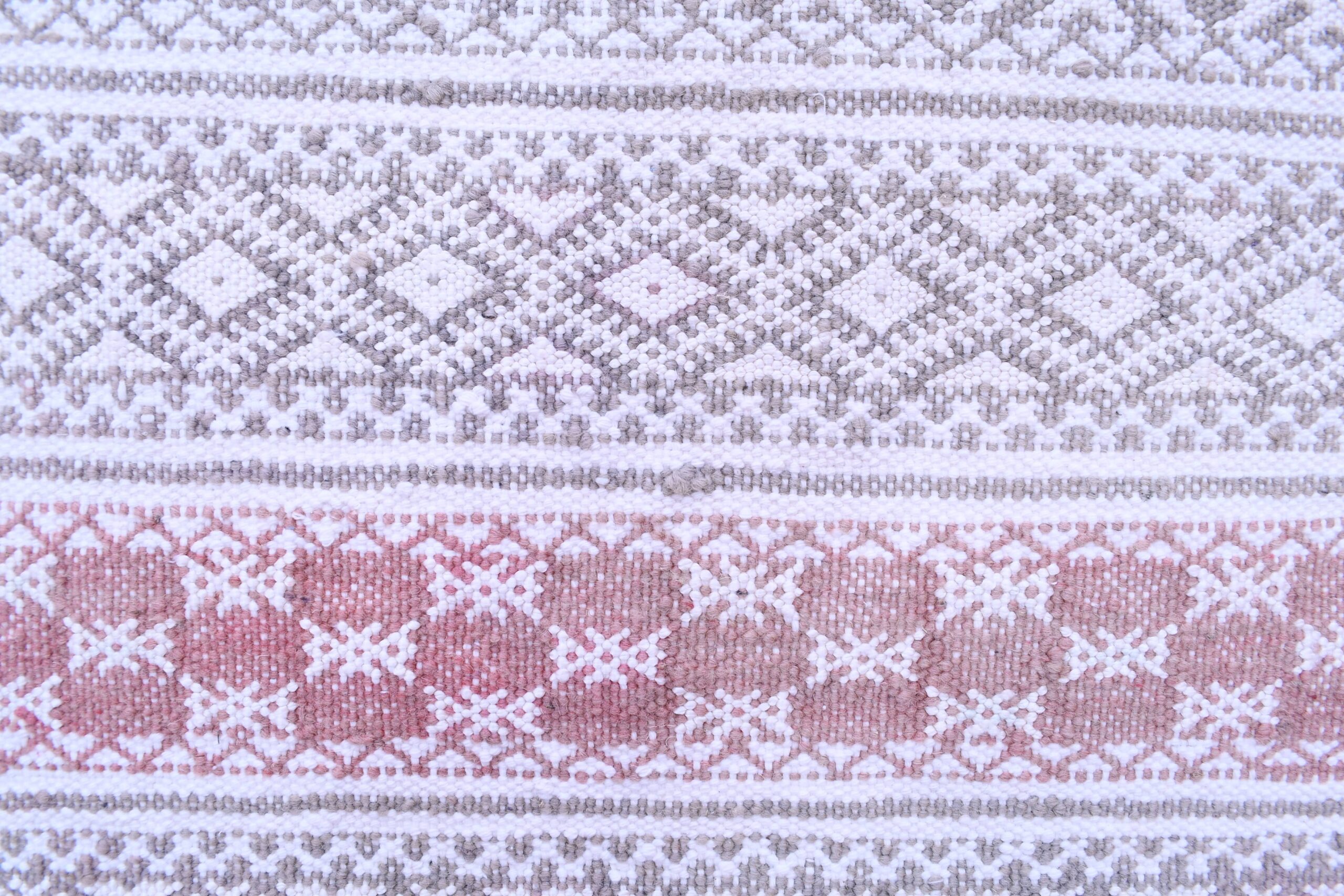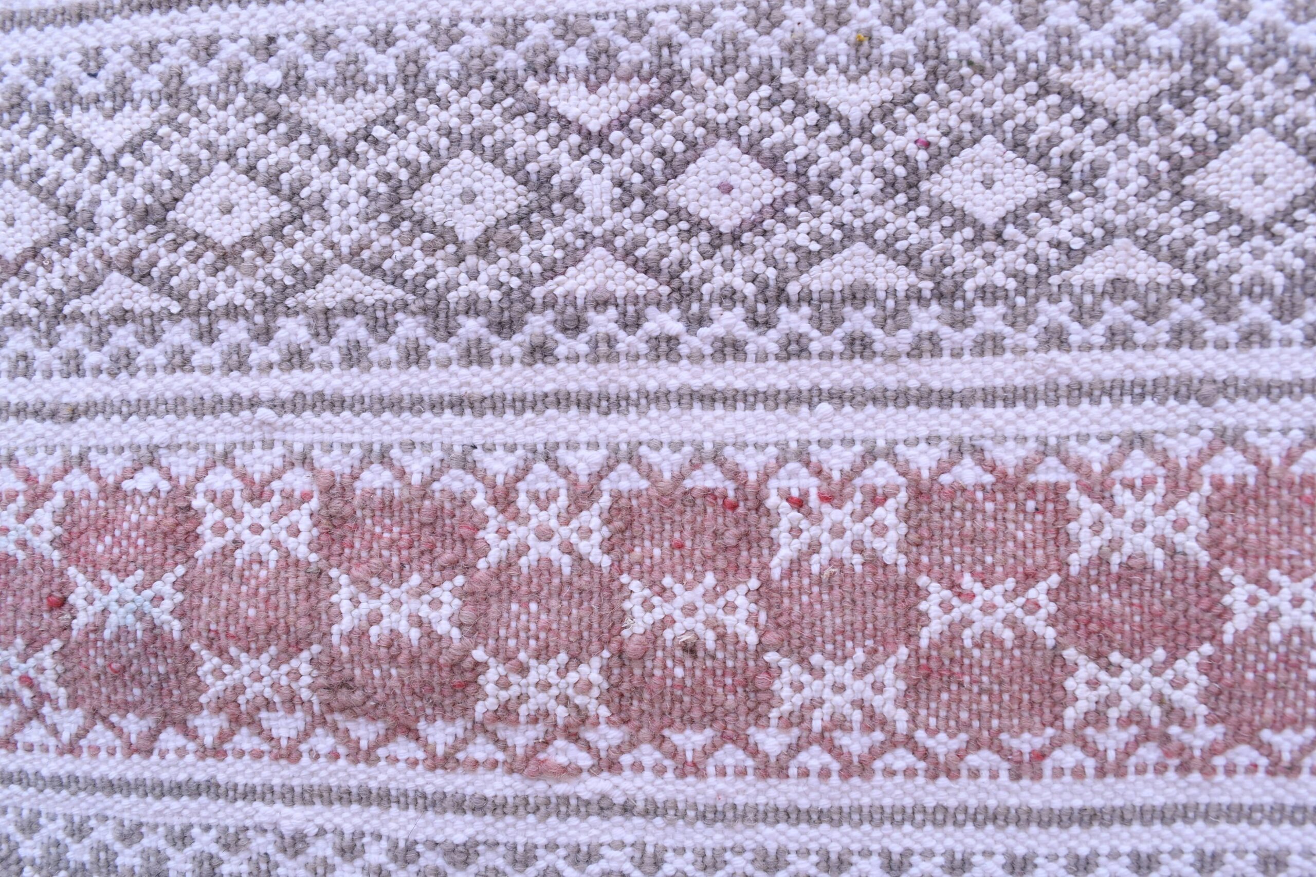 Dieser Tiflet Kelim-Teppich eignet sich ideal für Wohnzimmer, Flure oder als Blickfang im Schlafzimmer und passt sich nahtlos an verschiedene Einrichtungsstile an. Seine neutralen Töne und sein unverwechselbares Design machen ihn zu einer vielseitigen Wahl, die sowohl mit modernen als auch mit traditionellen Möbeln harmoniert.