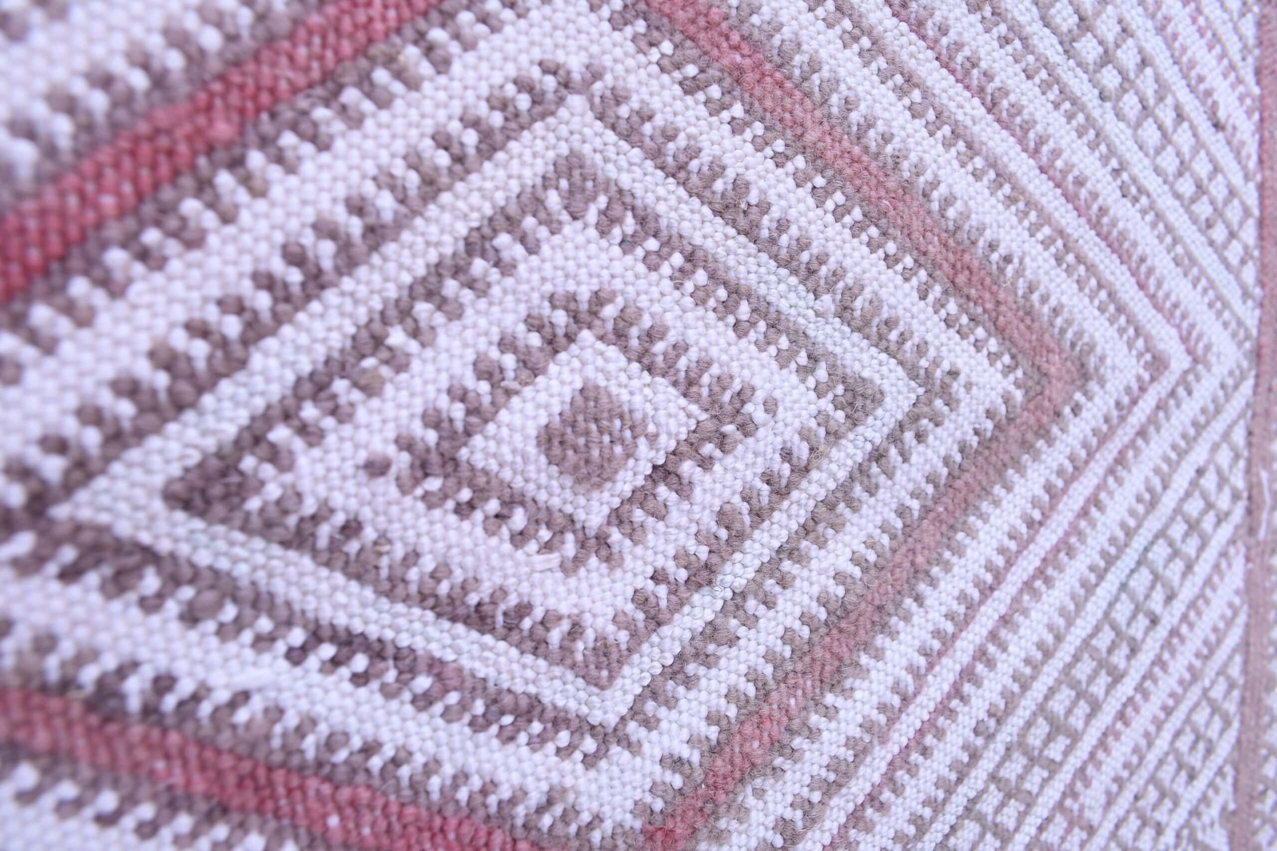 Erleben Sie das reiche Erbe und die außergewöhnliche Kunstfertigkeit marokkanischer Teppiche mit diesem Tiflet-Kelim-Stück, das Ihren Wohnraum mit seinem einzigartigen Charme und seiner Eleganz perfekt verschönert.