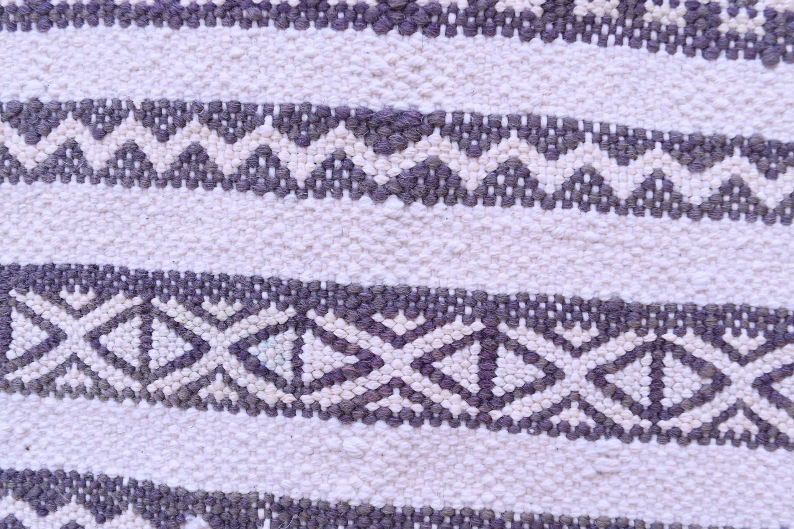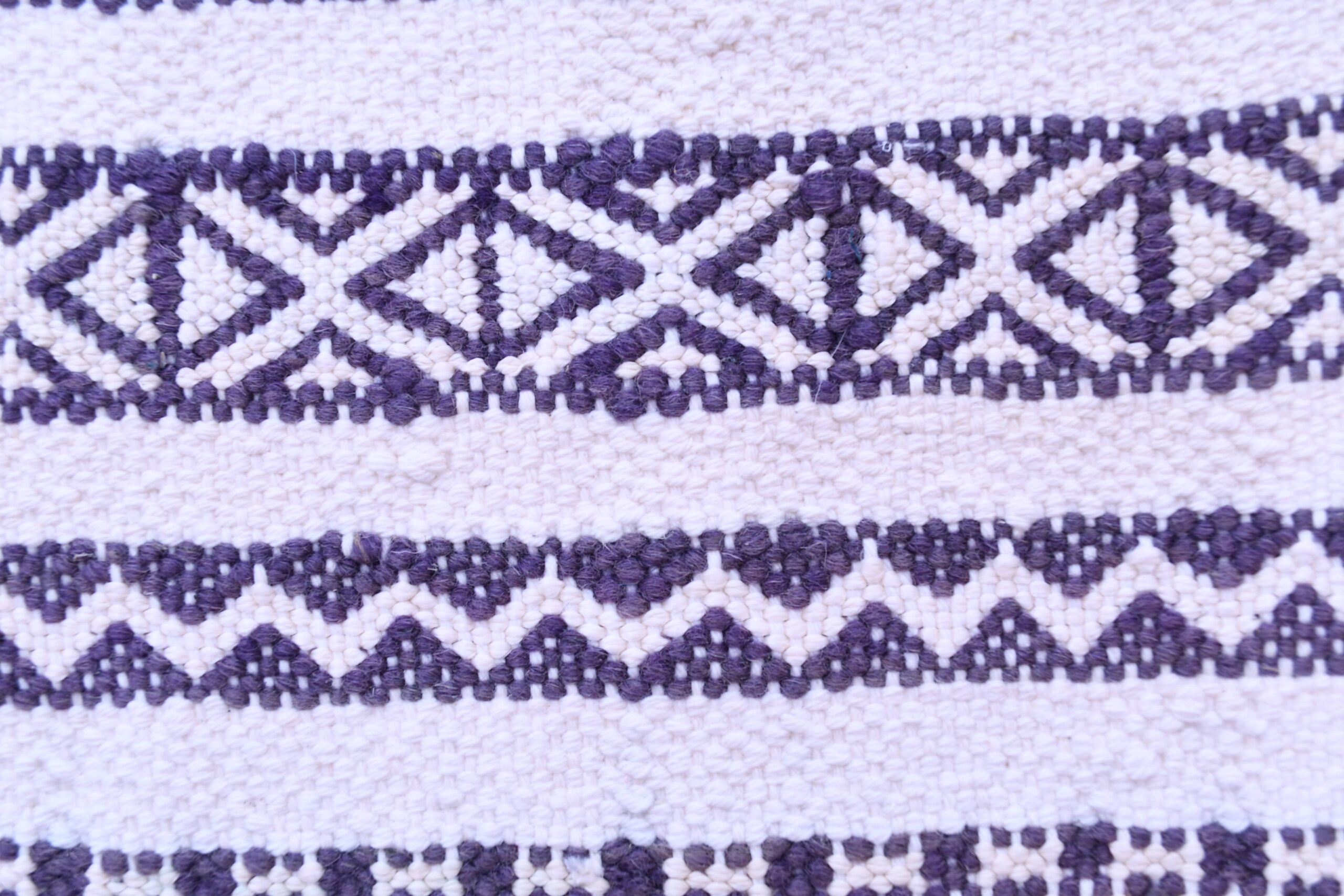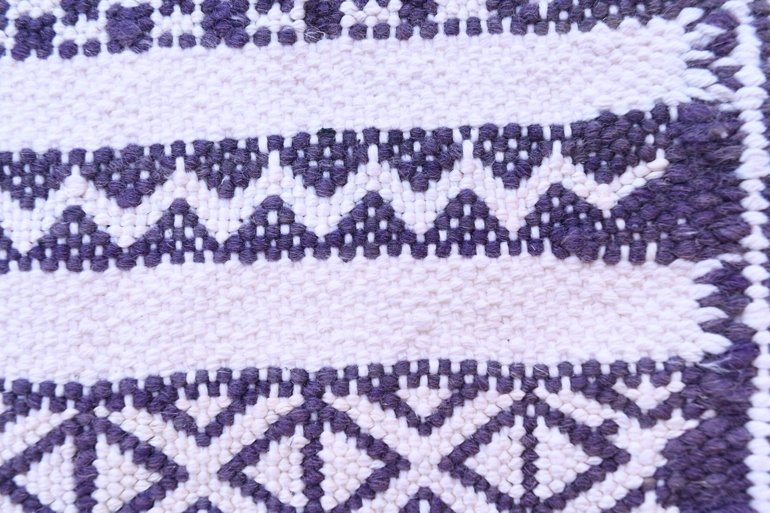Der Teppich besticht durch eine harmonische Mischung aus tiefem Lila und natürlichem Elfenbein. Diese markante Farbpalette unterstreicht nicht nur die geometrischen Muster, sondern verleiht jedem Raum auch einen Hauch von Eleganz und Raffinesse. Der Kontrast zwischen sattem Lila und dezentem Elfenbein schafft eine optisch ansprechende Balance, die verschiedene Einrichtungsstile ergänzt.