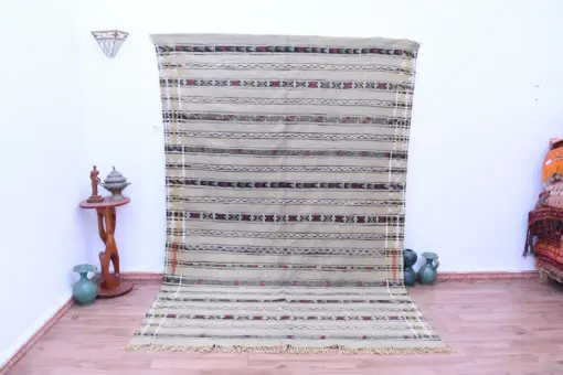 With its generous size of 204.00 × 305.00 cm, this rug is ideal for larger living spaces, dining rooms, or bedrooms. Its neutral tones and elegant design make it a versatile addition to any room, seamlessly blending with both modern and traditional décor. The rug can serve as a stunning focal point, enhancing the overall ambiance and adding a touch of Moroccan charm to your home.