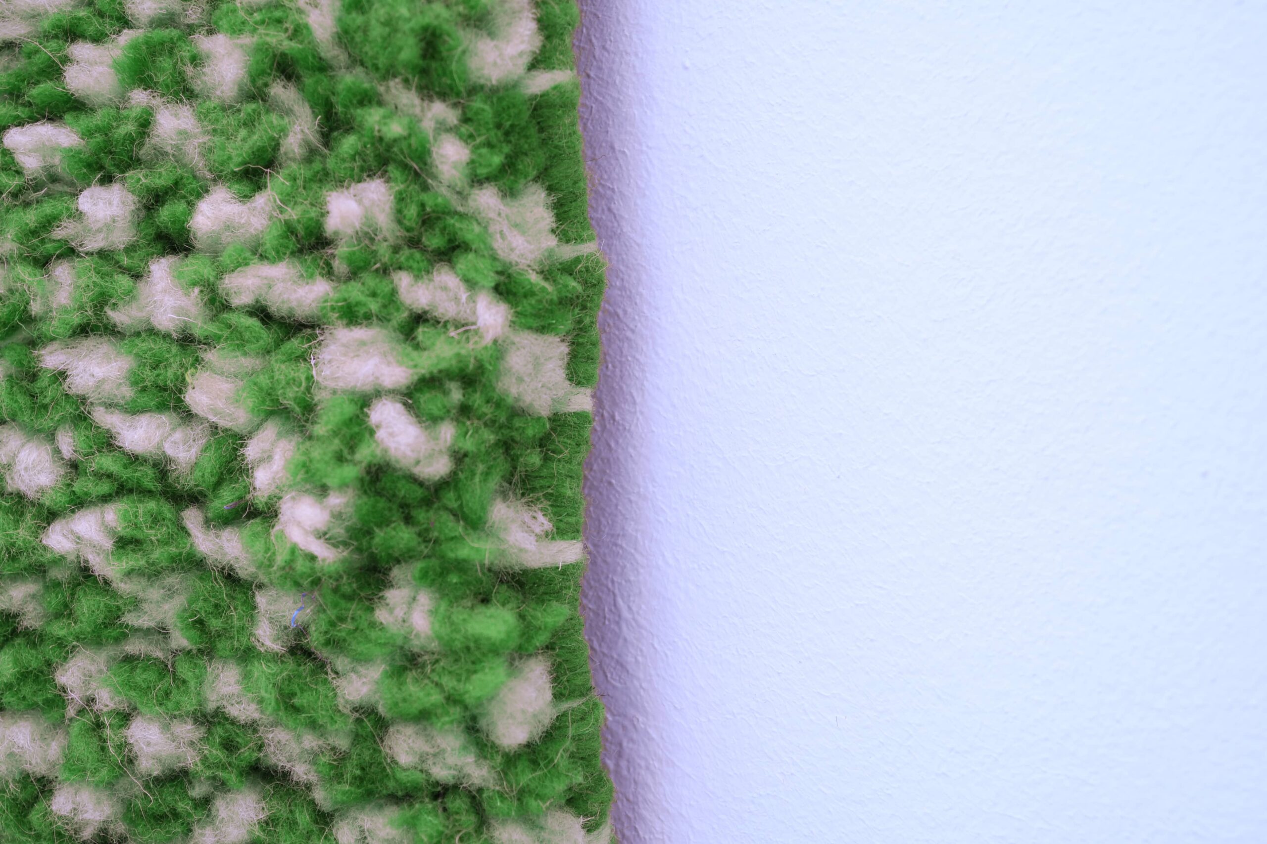 La alfombra cuenta con una mezcla armoniosa de vibrantes verde y suaves tonos beige. El verde intenso es el color dominante, simbolizando la naturaleza y la tranquilidad, mientras que los acentos beige aportan calidez y equilibrio. Esta combinación de colores es versátil, lo que permite que la alfombra se integre a la perfección en diversos estilos de diseño de interiores, desde minimalistas hasta eclécticos.