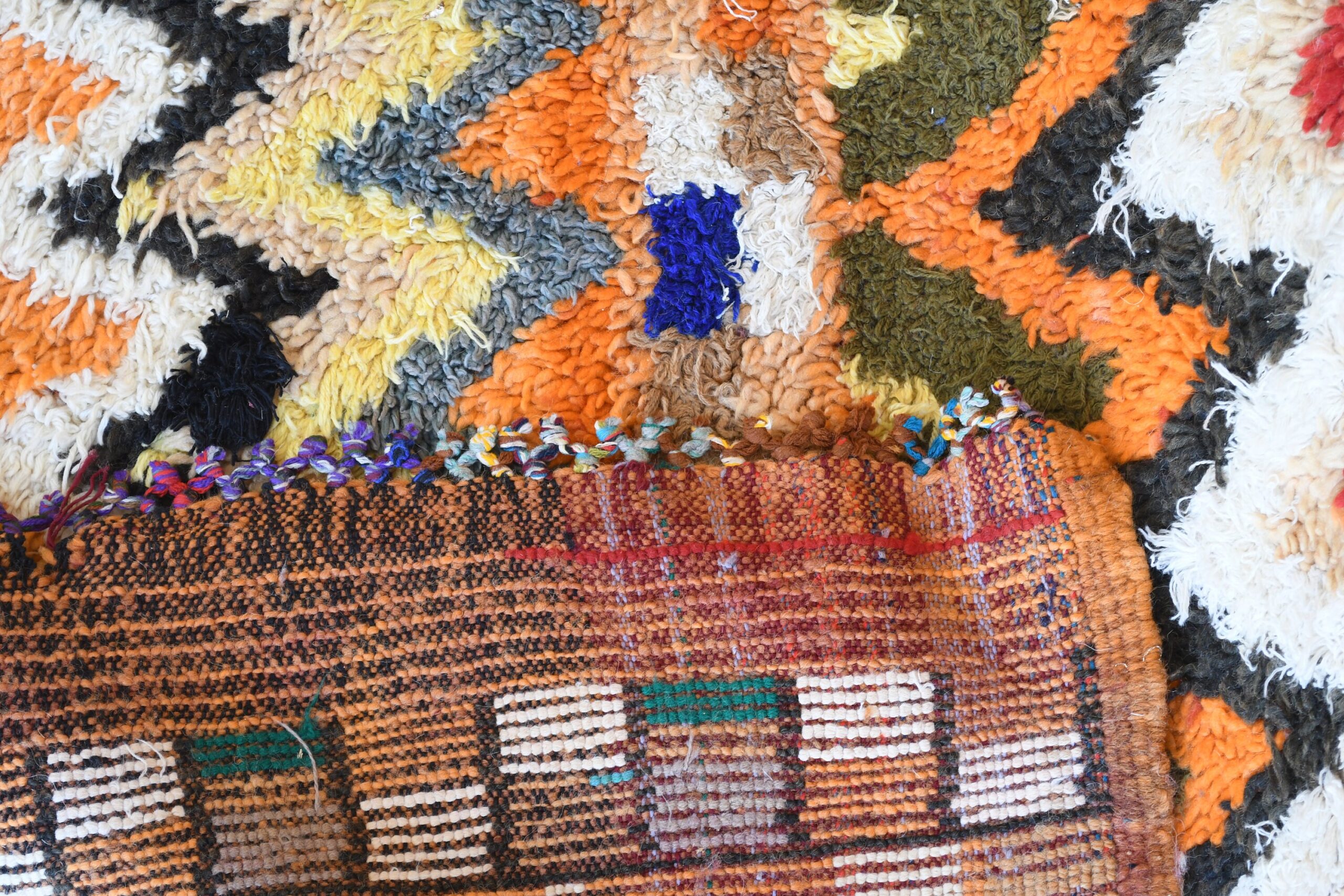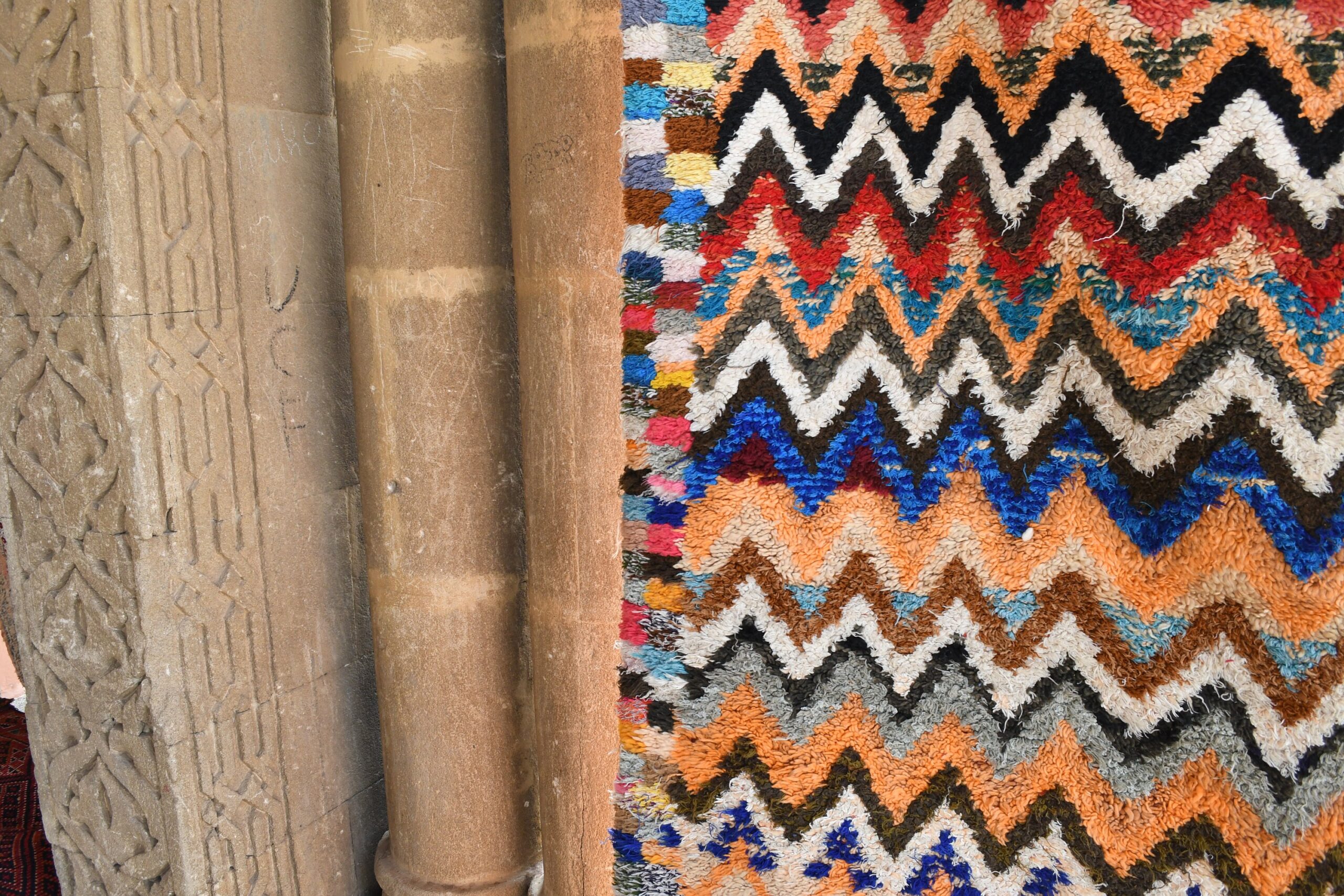 This authentic Moroccan rug is a handwoven Azilal Berber wool rug made by 3rd generation Berber artisans in Morocco. If you’re searching for a true Moroccan rug with bold character and premium craftsmanship, this one-of-a-kind piece delivers. The lively zigzag pattern and rich, saturated tones make this Moroccan rug a statement area rug for curated boho, minimalist, or modern homes. Fair trade certified (Label STEP) and ethically made.