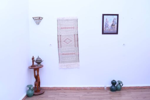 Ideal para salas de estar, pasillos o como pieza destacada en un dormitorio, esta alfombra Tiflet Kilim se adapta a la perfección a diversos estilos de decoración. Sus tonos neutros y su diseño distintivo la convierten en una opción versátil que combina a la perfección con muebles modernos y tradicionales.