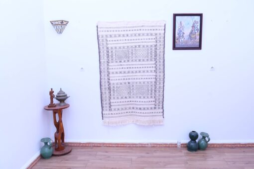 Alfombra marroquí de lana Tiflet Kilim hecha a mano – 104×157 cm – Diseños intrincados