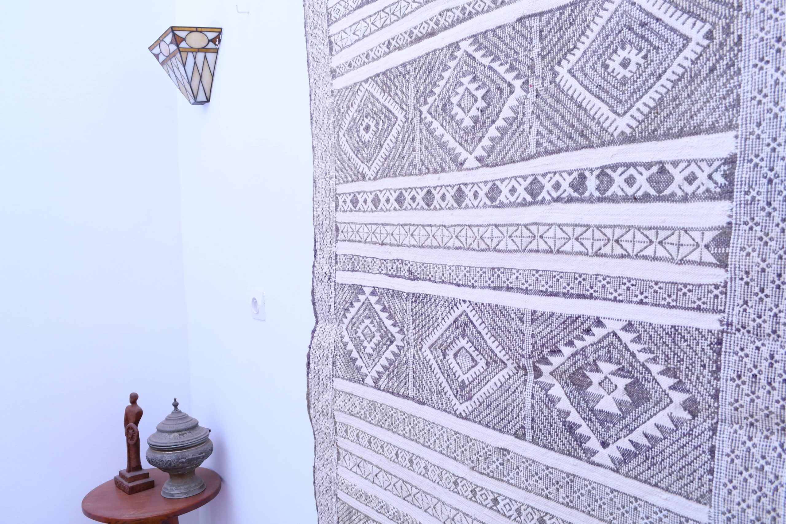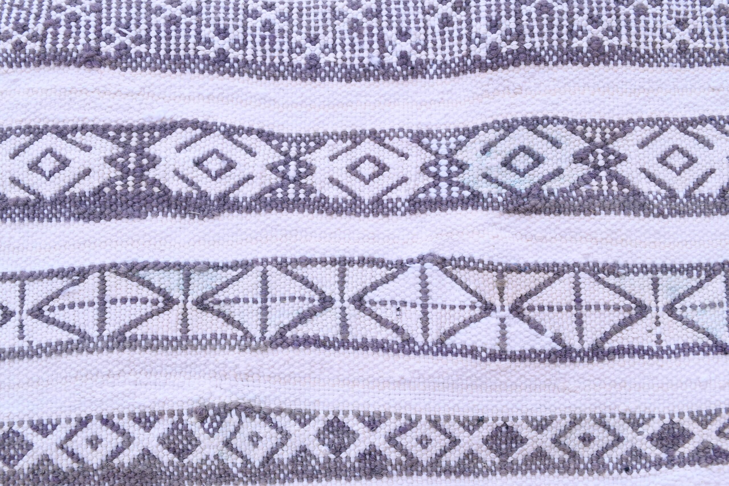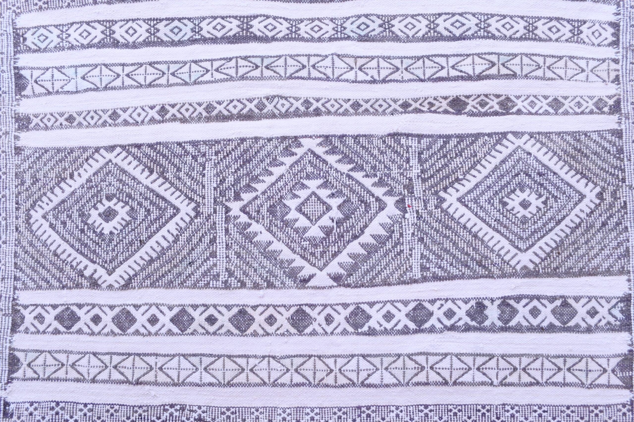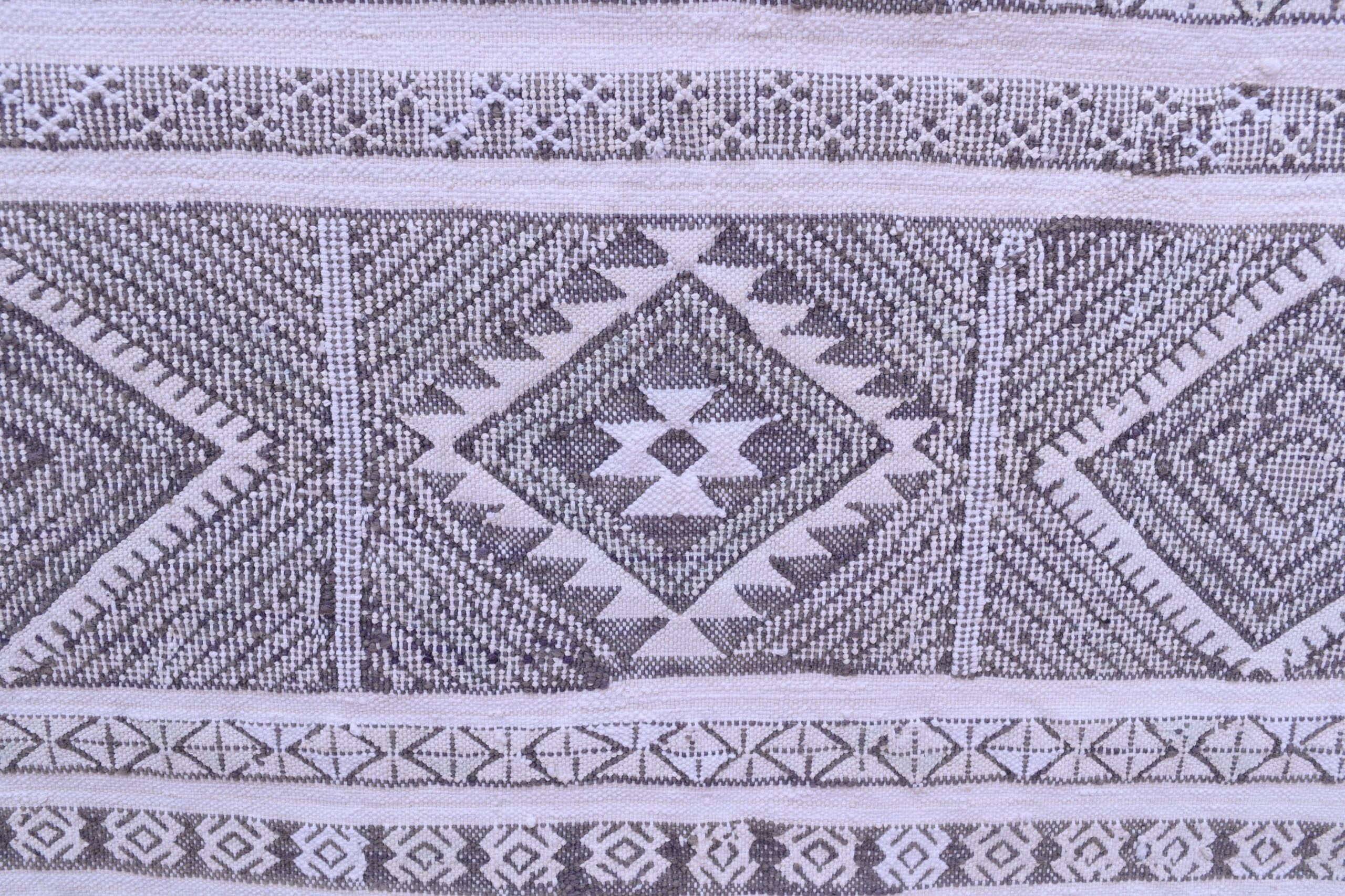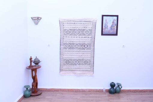 Hecha a mano con lana de alta calidad, esta alfombra Tiflet Kilim es un ejemplo de artesanía excepcional. La resistente lana garantiza su durabilidad y resistencia, lo que la convierte en una opción práctica para zonas de mucho tránsito. Cada nudo y tejido refleja la habilidad y la dedicación de los artesanos marroquíes, lo que garantiza que esta alfombra no solo sea hermosa, sino también una inversión duradera.
