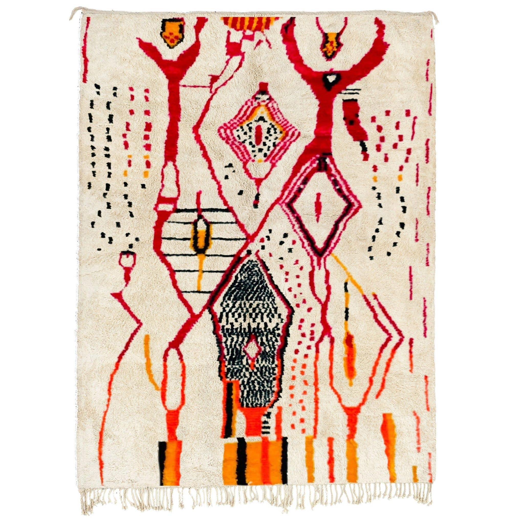 This authentic handmade Moroccan rug is a bold, modern statement for American homes that want warmth without looking “too busy.” Woven from natural wool, this Moroccan rug features an ivory/cream base with graphic red lines plus black and golden accents—perfect as a living room area rug or a bedroom rug that instantly elevates the space. Made by our 3rd generation Berber artisan family and fair trade certified, it’s the kind of handmade wool rug you keep for decades.