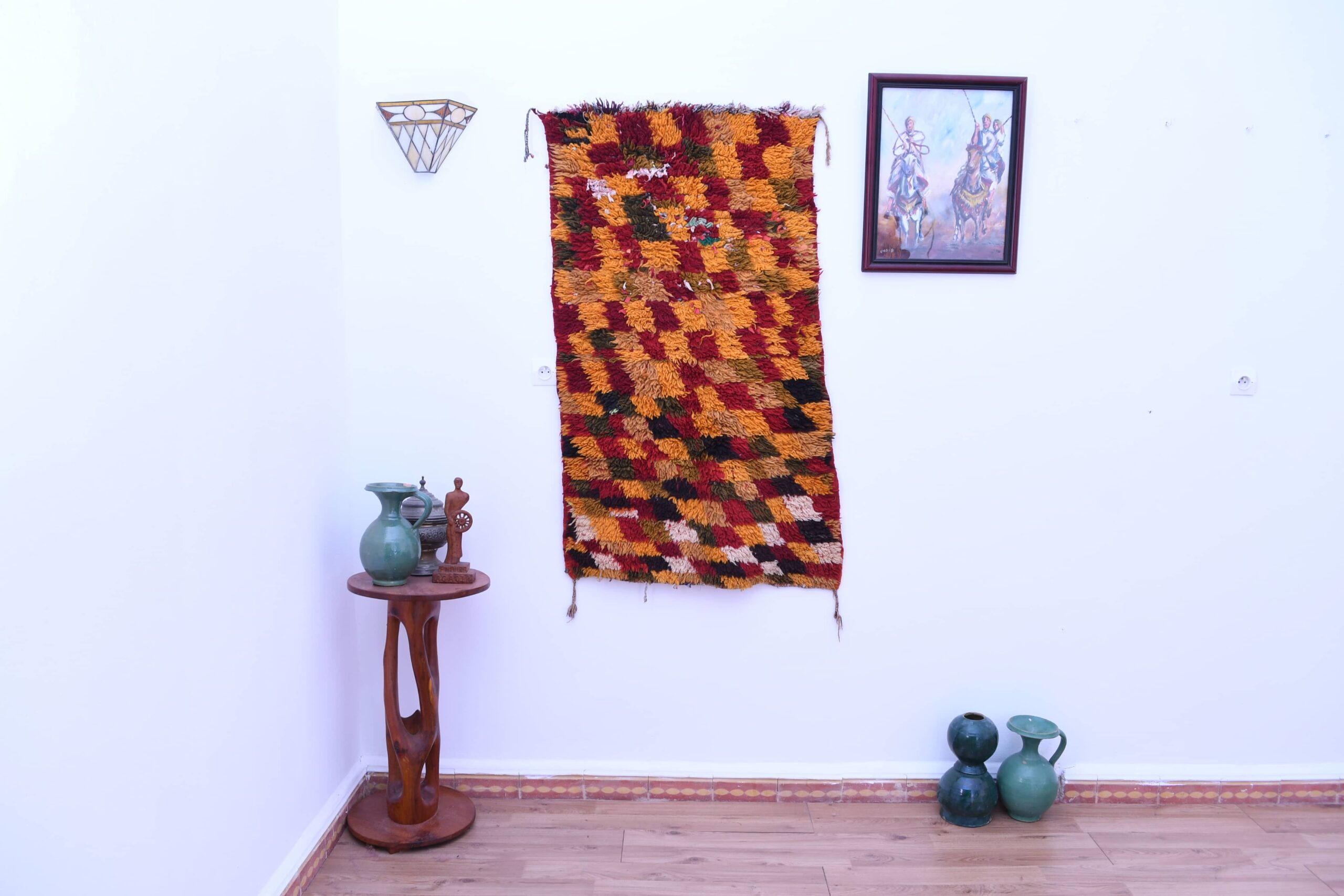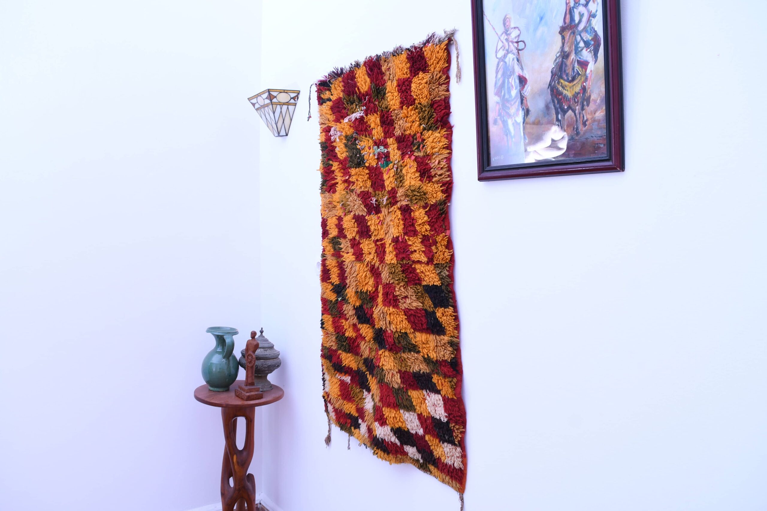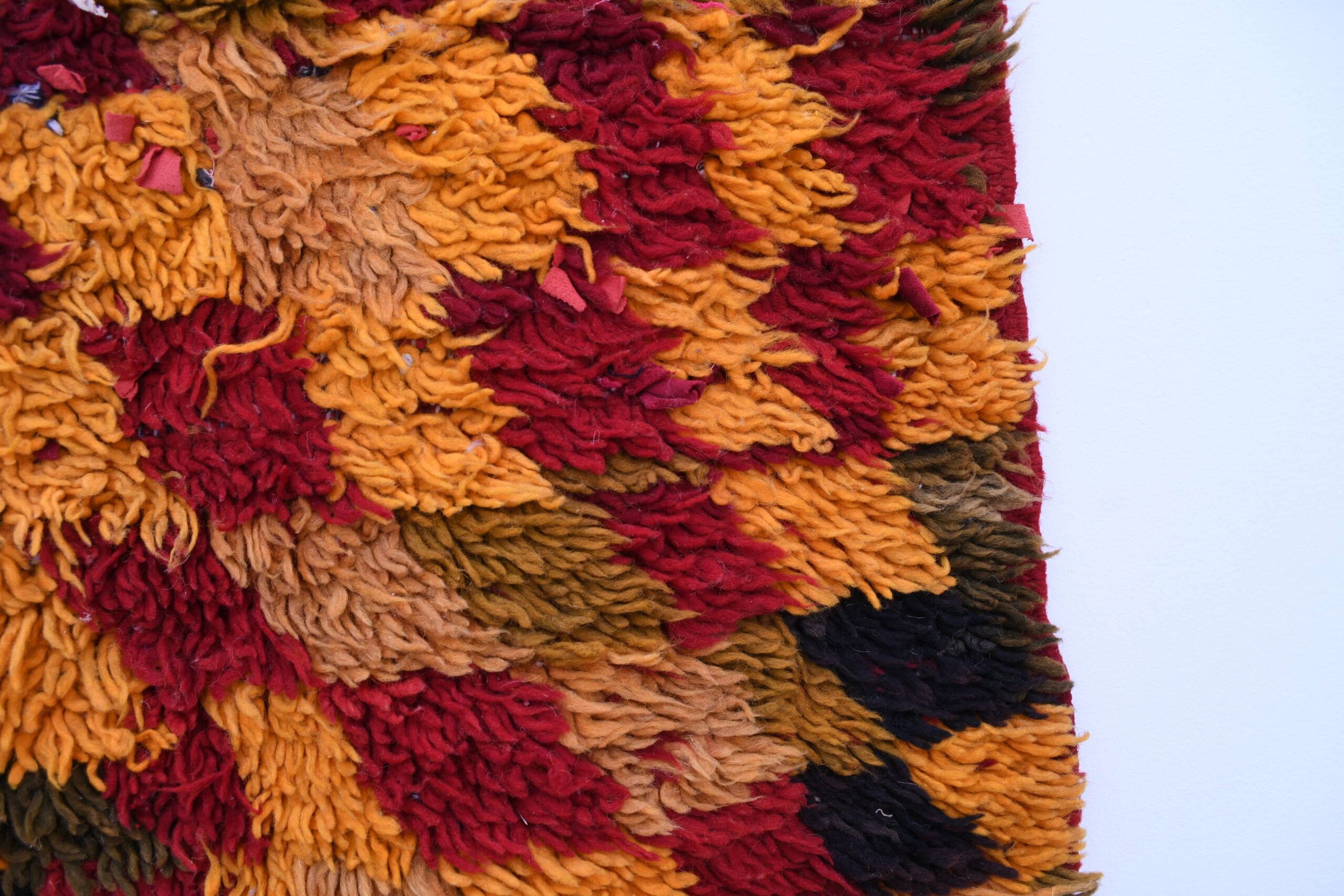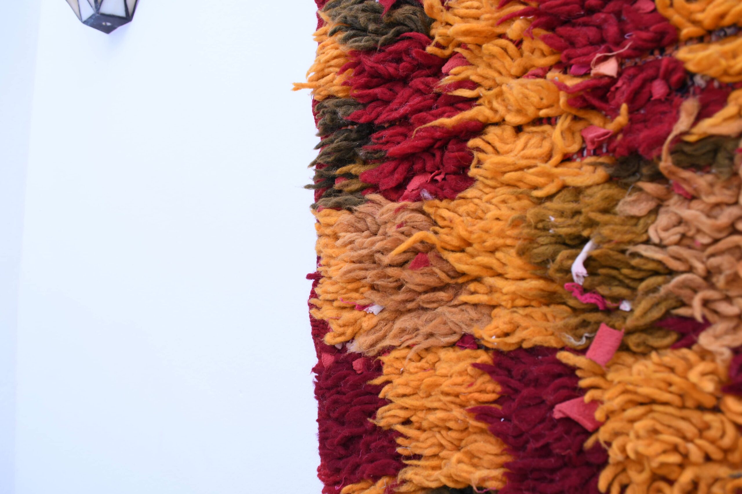 Tapis Boucharouite marocain fait main 80x138cm – Décor laine orange vif