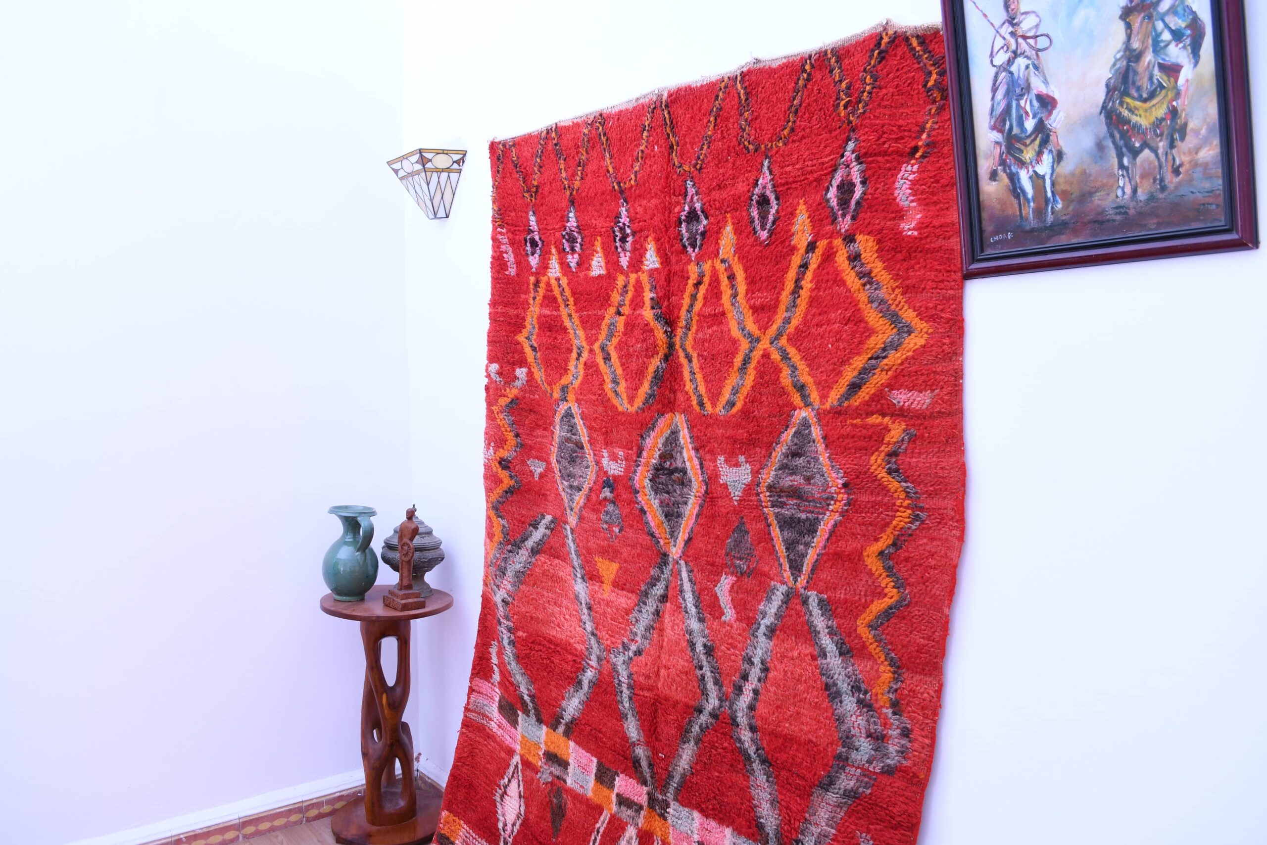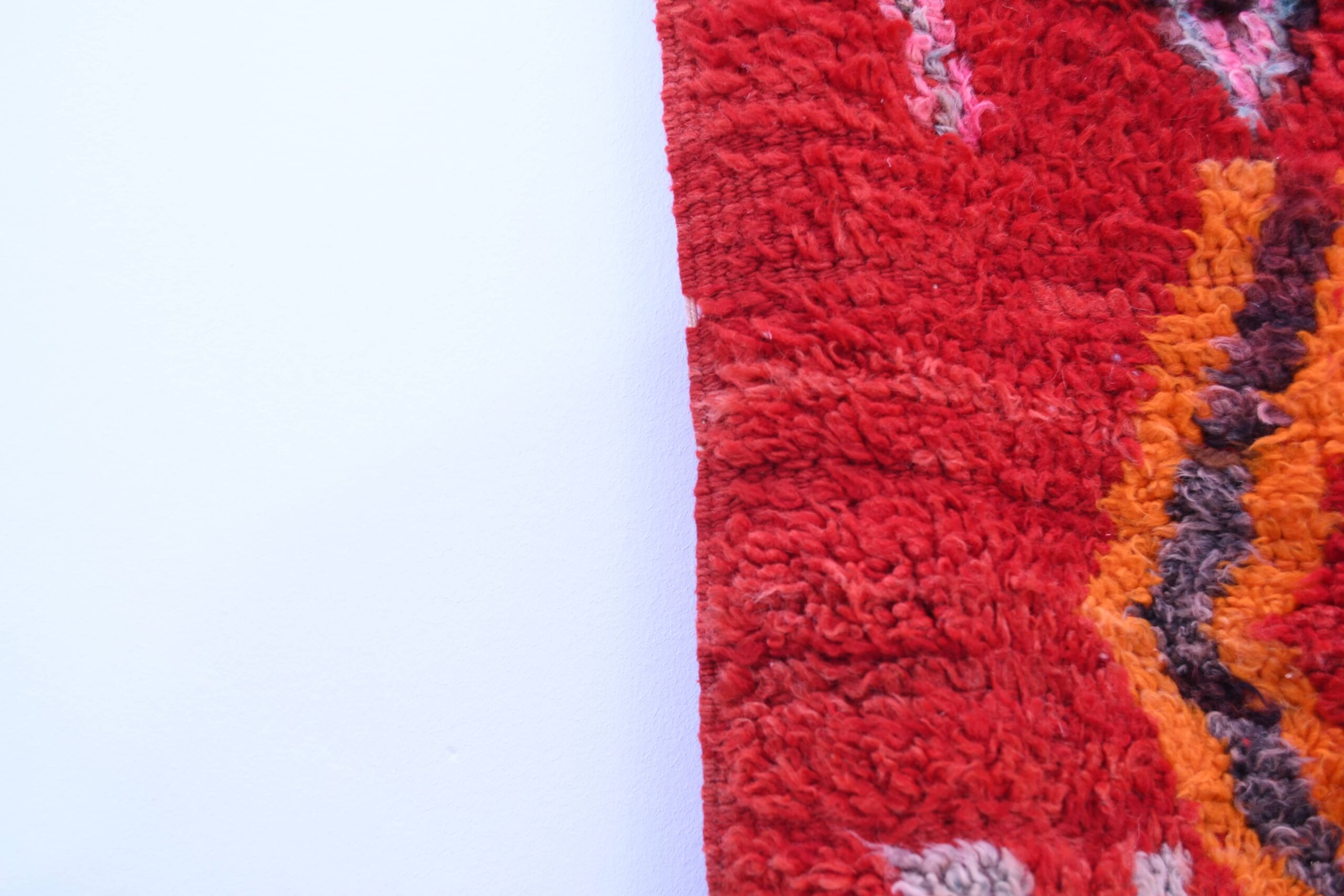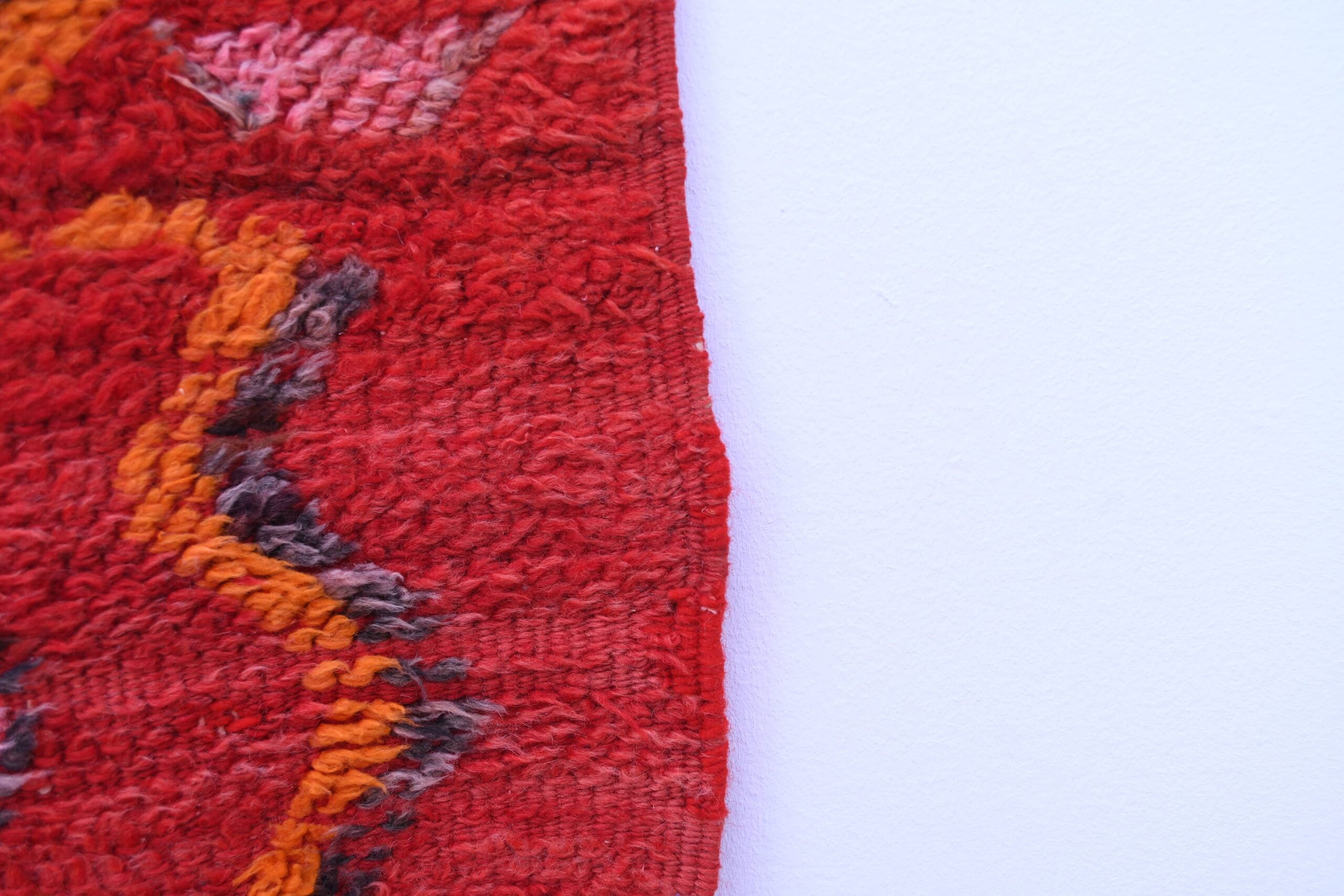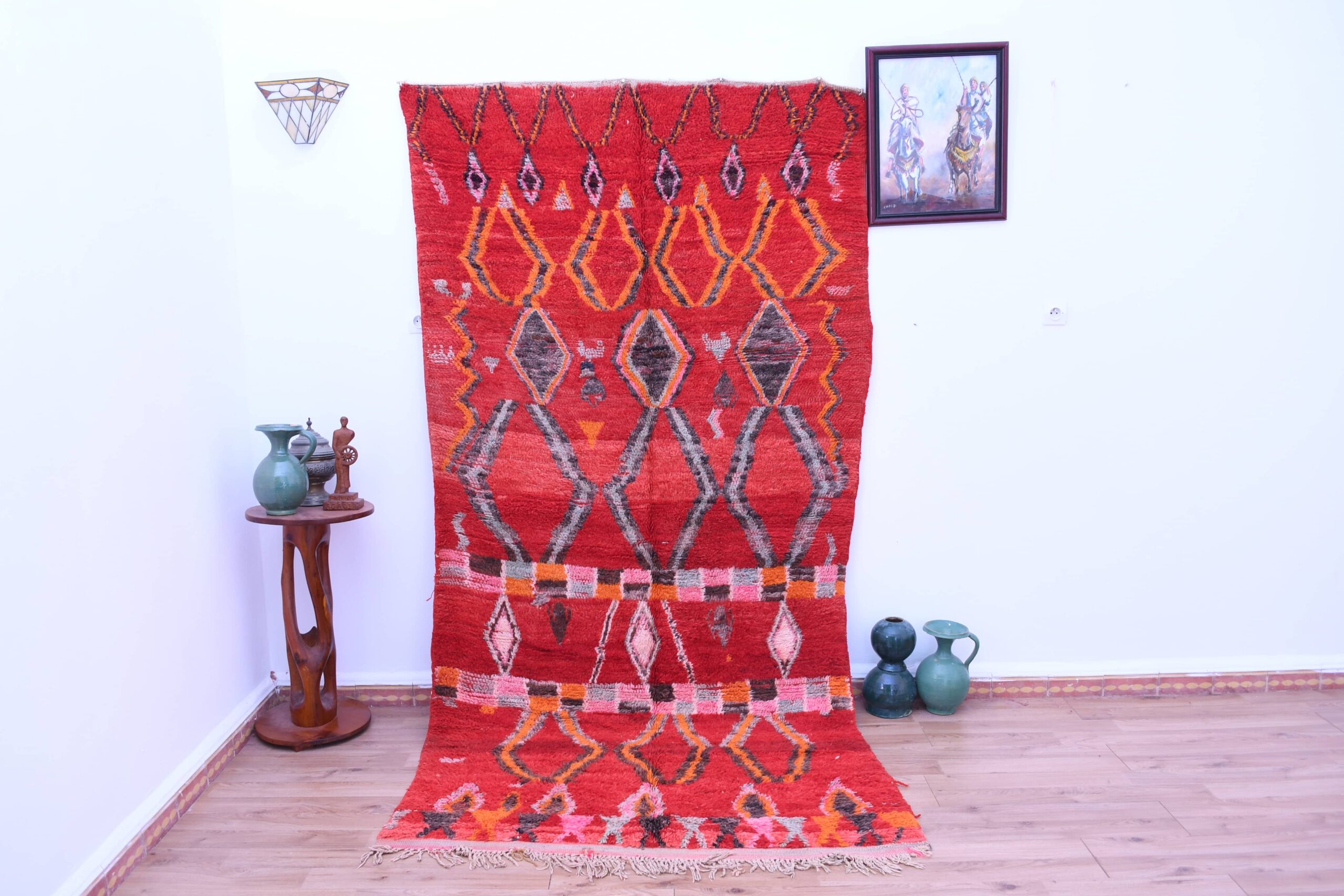 Tapis Talsint marocain rouge en laine fait main – 142 x 293 cm, motif géométrique vibrant