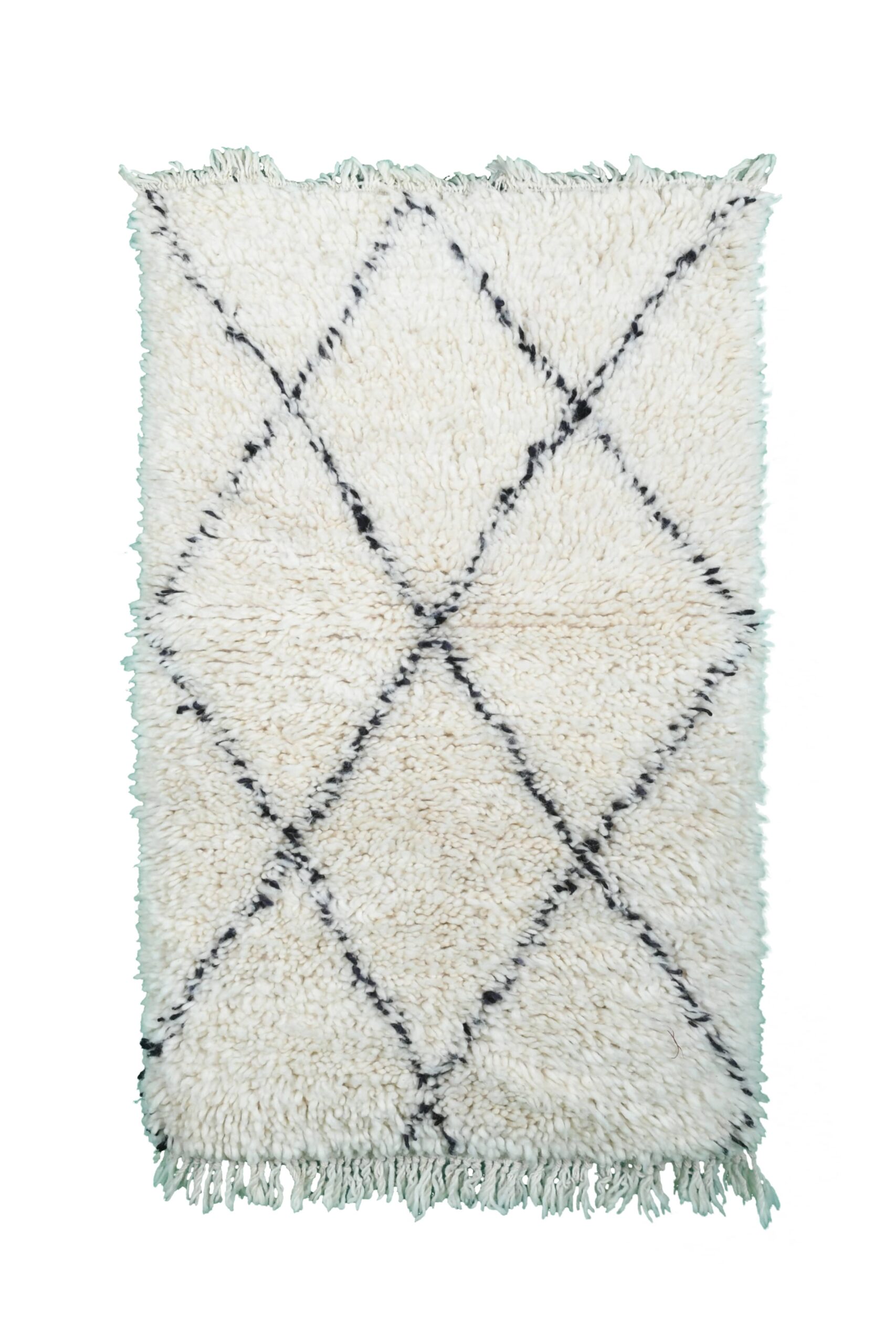 This authentic handmade Moroccan rug is a cozy, modern neutral you can style anywhere. Woven from 100% wool, this Moroccan rug features a soft ivory/cream base with simple black diamond lines—perfect for the buyer who wants a clean, minimalist look with warm texture. The 2×4 size works beautifully as a small area rug in an entryway, beside a bed, or layered in a living room for that elevated boho feel. Fair trade certified and made by 3rd generation Berber artisans.