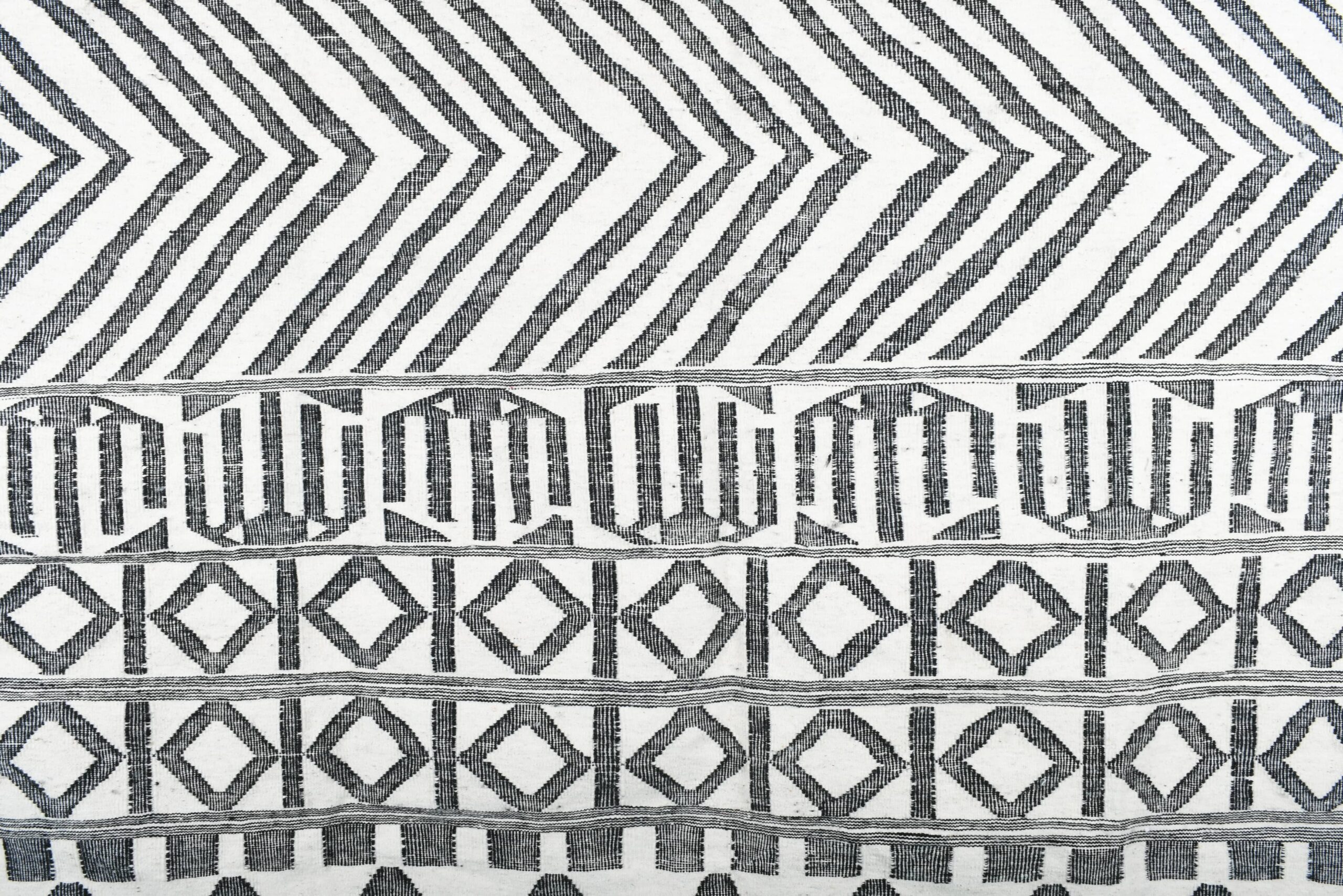🔷 PATTERN: Geometric diamonds, graphic stripes, modern tribal bands