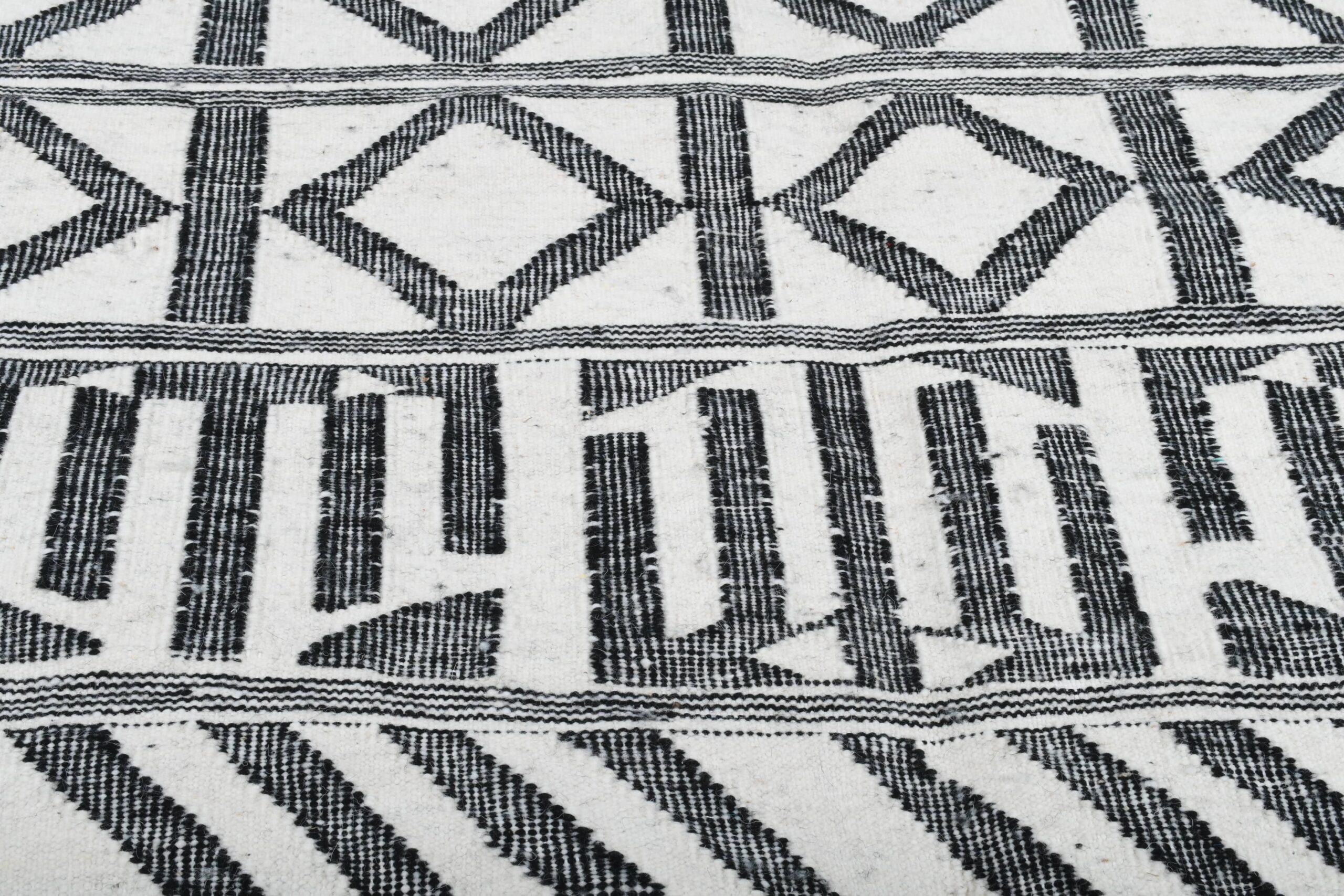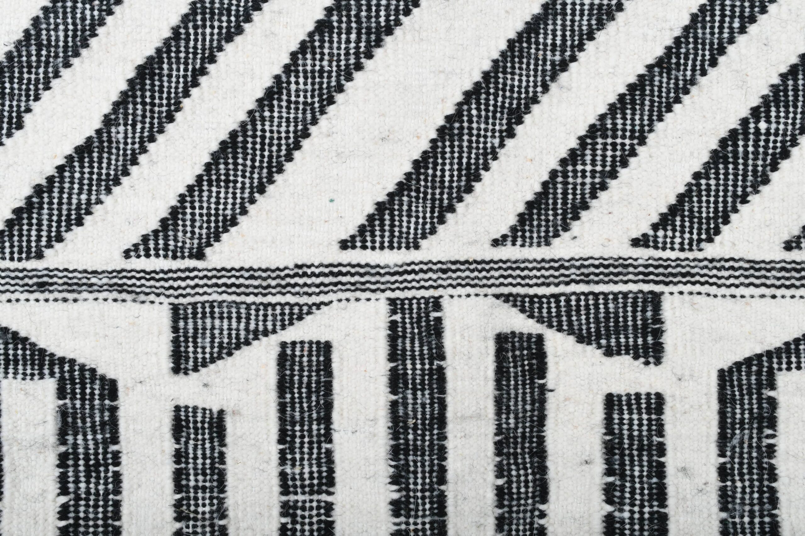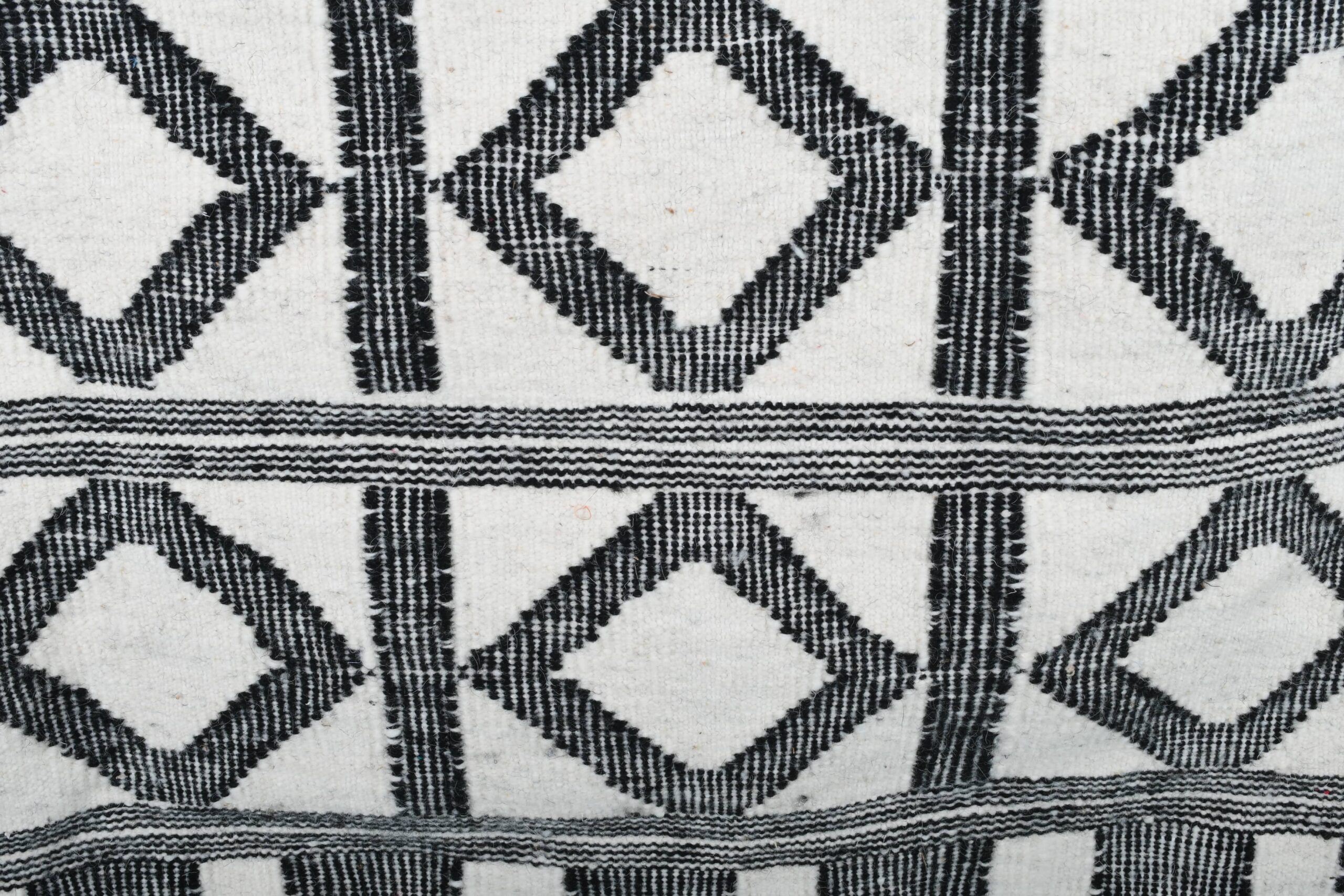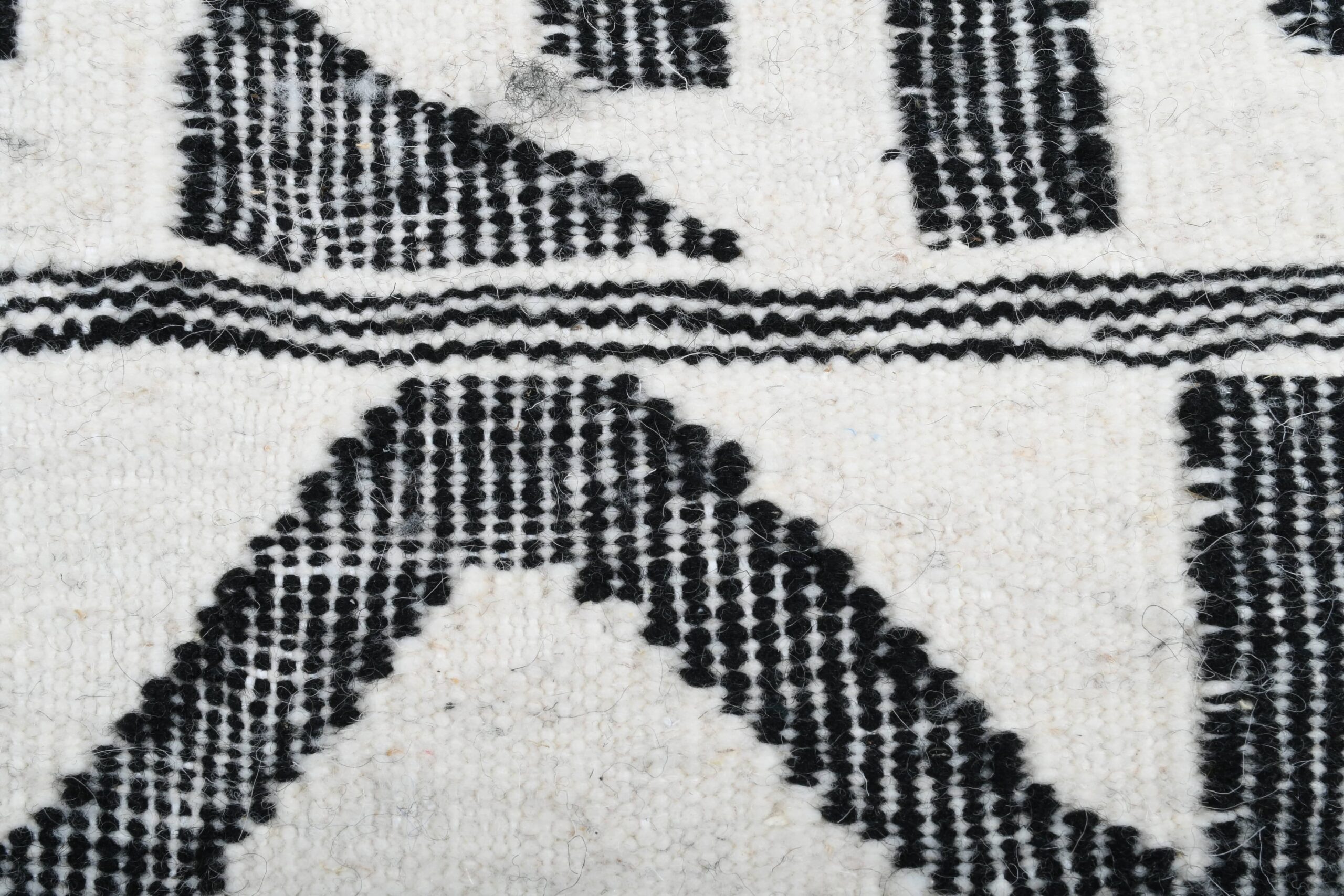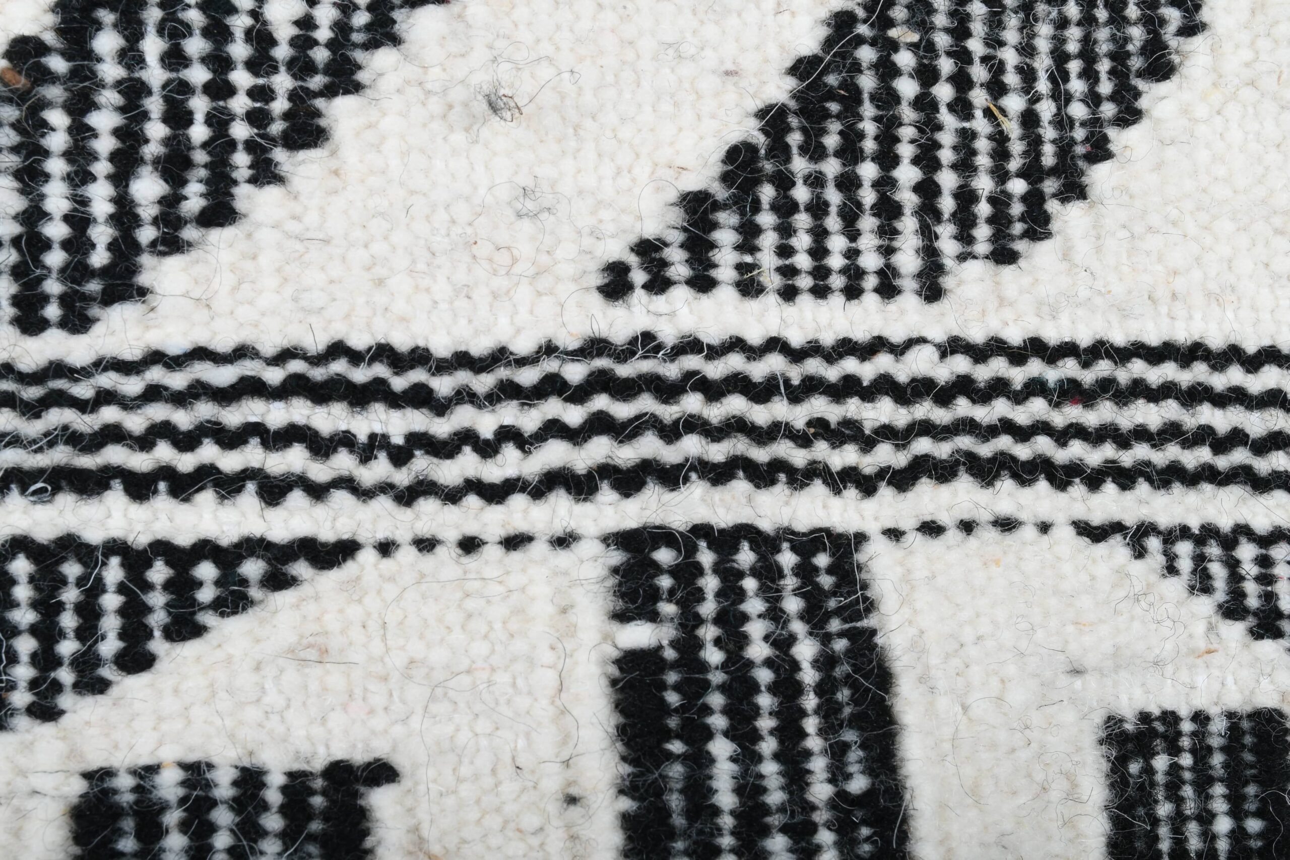 The palette is crisp and versatile: warm ivory/cream with deep charcoal-black motifs—diamonds, stripes, and modern tribal bands that look beautiful with neutral sofas, leather chairs, and natural wood floors. This design reads minimalist and modern, but still has that inviting boho character buyers love in a Moroccan area rug. Use it as a living room rug to anchor a seating area, or as a bedroom area rug to add warmth, texture, and contrast without overwhelming your decor.