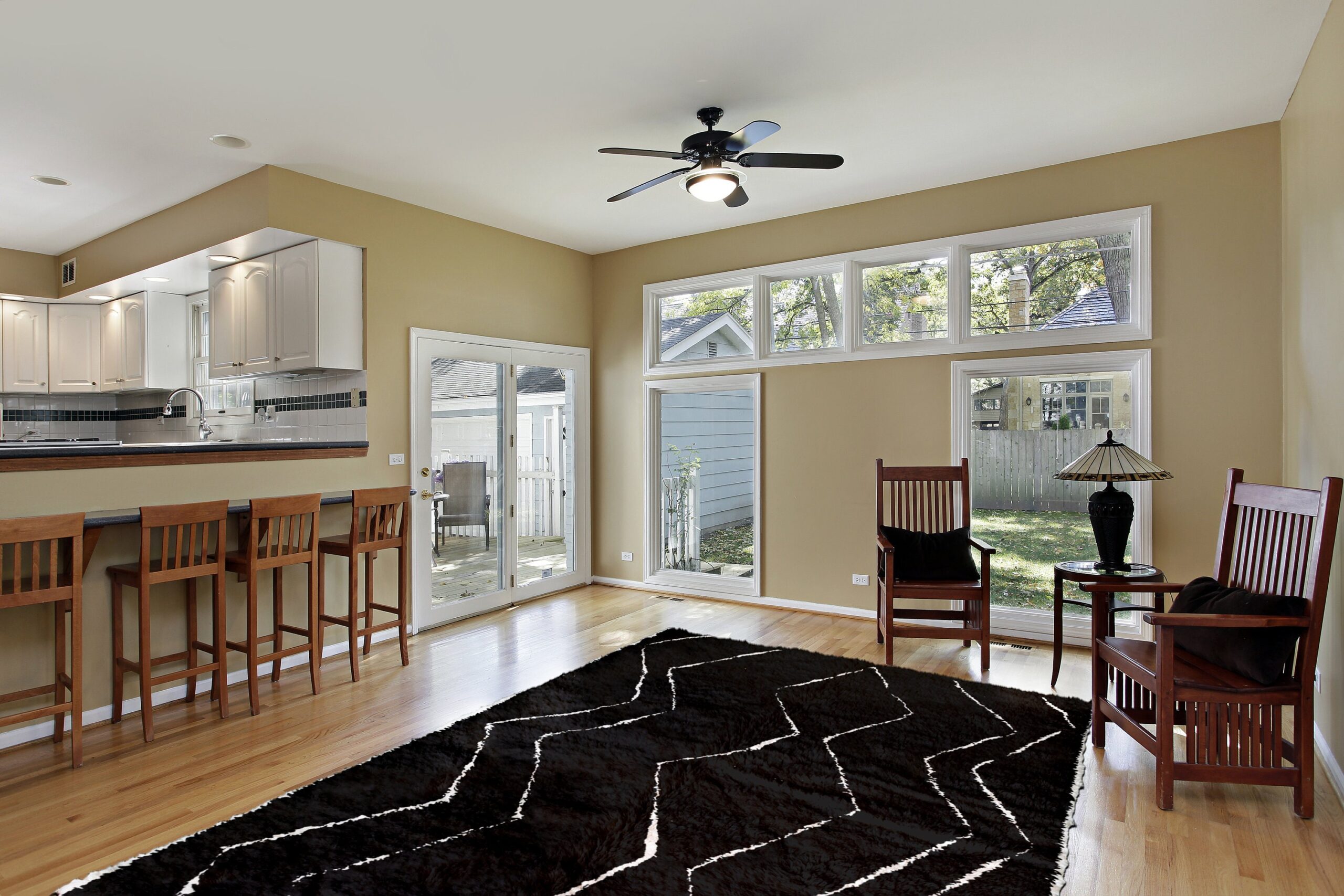 The color palette is classic black and ivory (also reads as black and white), designed to work with the interiors Americans love right now: modern farmhouse, Scandinavian, mid-century modern, and coastal boho. The minimal geometric pattern adds texture and movement without overwhelming your space, and the plush wool pile feels cozy underfoot. Use it as a living room rug under a sofa, a bedroom area rug for a soft landing, or a striking modern area rug in an office.