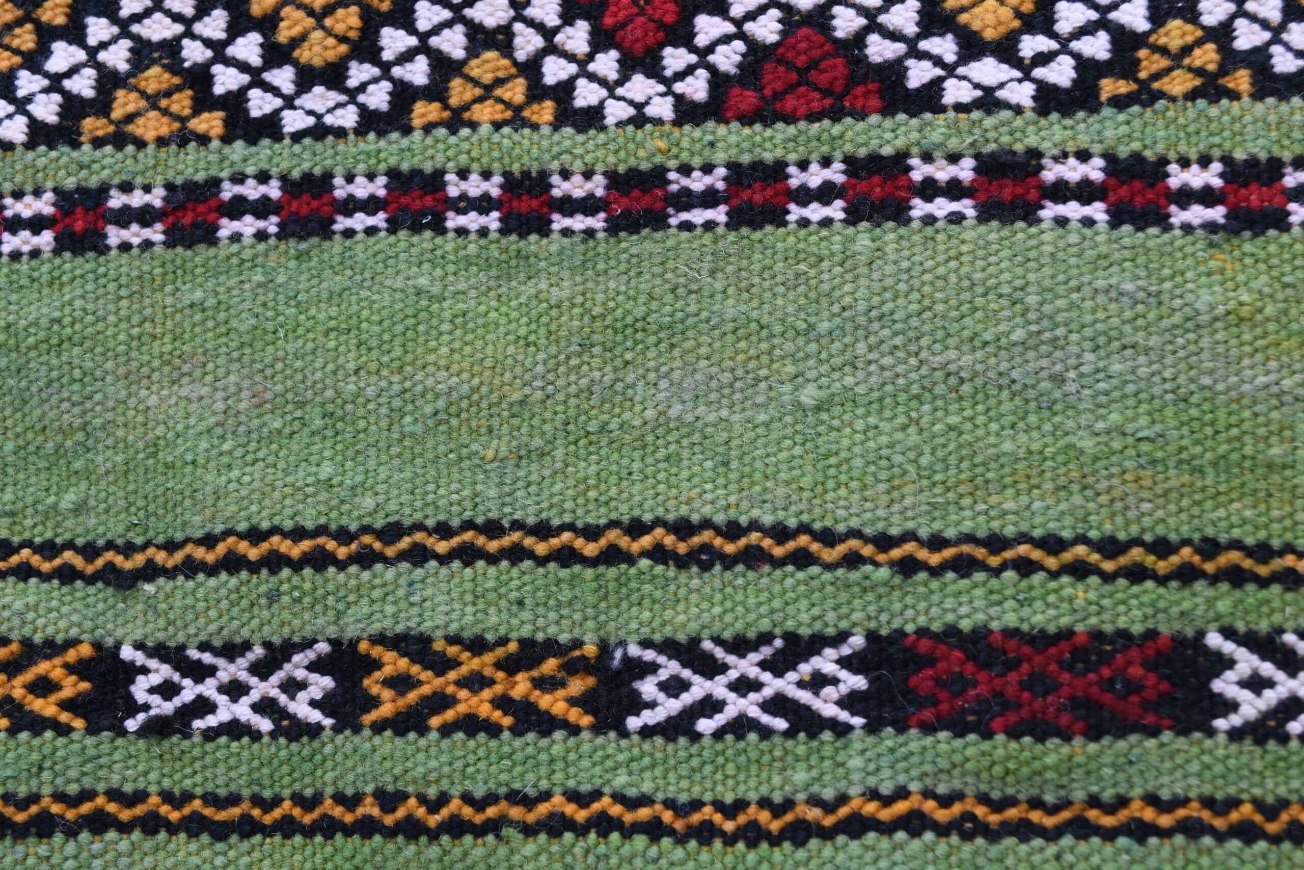 この見事なゼムール絨毯は、81.00×330.00cmの大きさで、モロッコの芸術性を象徴する複雑な幾何学模様が美しく表現されています。ダイヤモンド、ライン、そしてこの地域の豊かな文化遺産を反映した伝統的なモチーフが調和したデザインが特徴です。