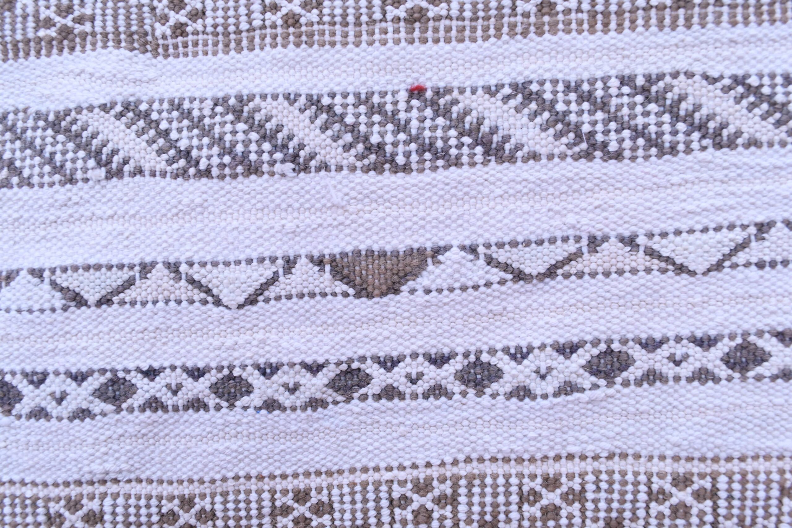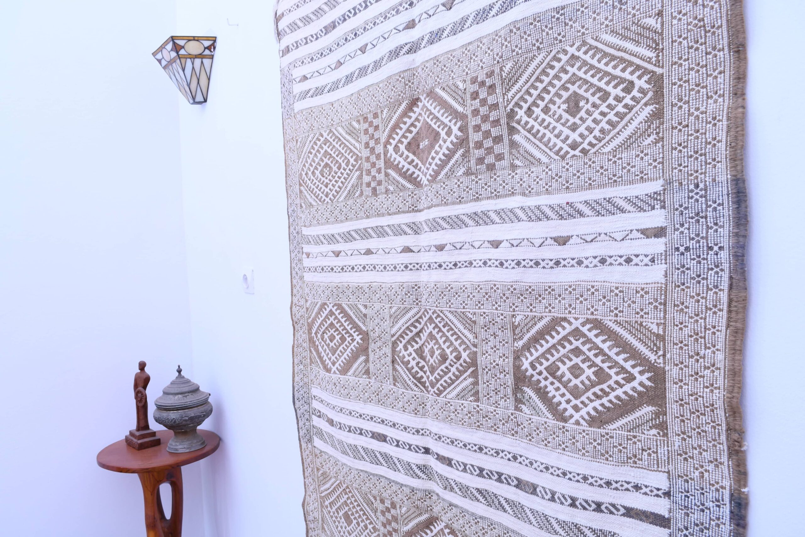 上質なウールから丁寧に手織りされたこのティフレット・キリム・ラグは、卓越した職人技の結晶です。緻密な織りと丈夫な素材が、耐久性と耐久性を保証し、ご自宅に彩りを添えます。ラグの質感と仕上げは、モロッコの織り職人の熟練した技を反映しており、一枚一枚が唯一無二の逸品です。