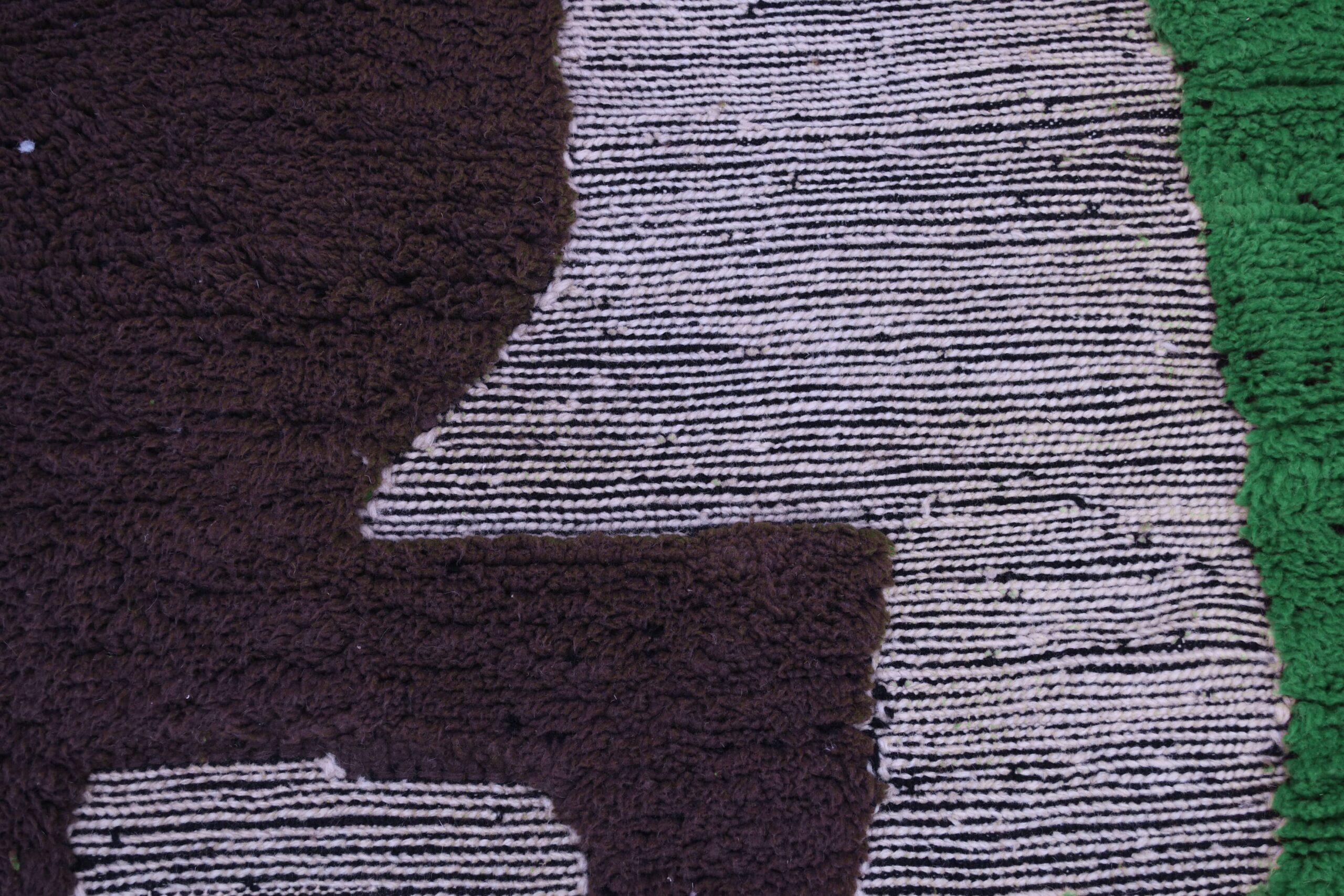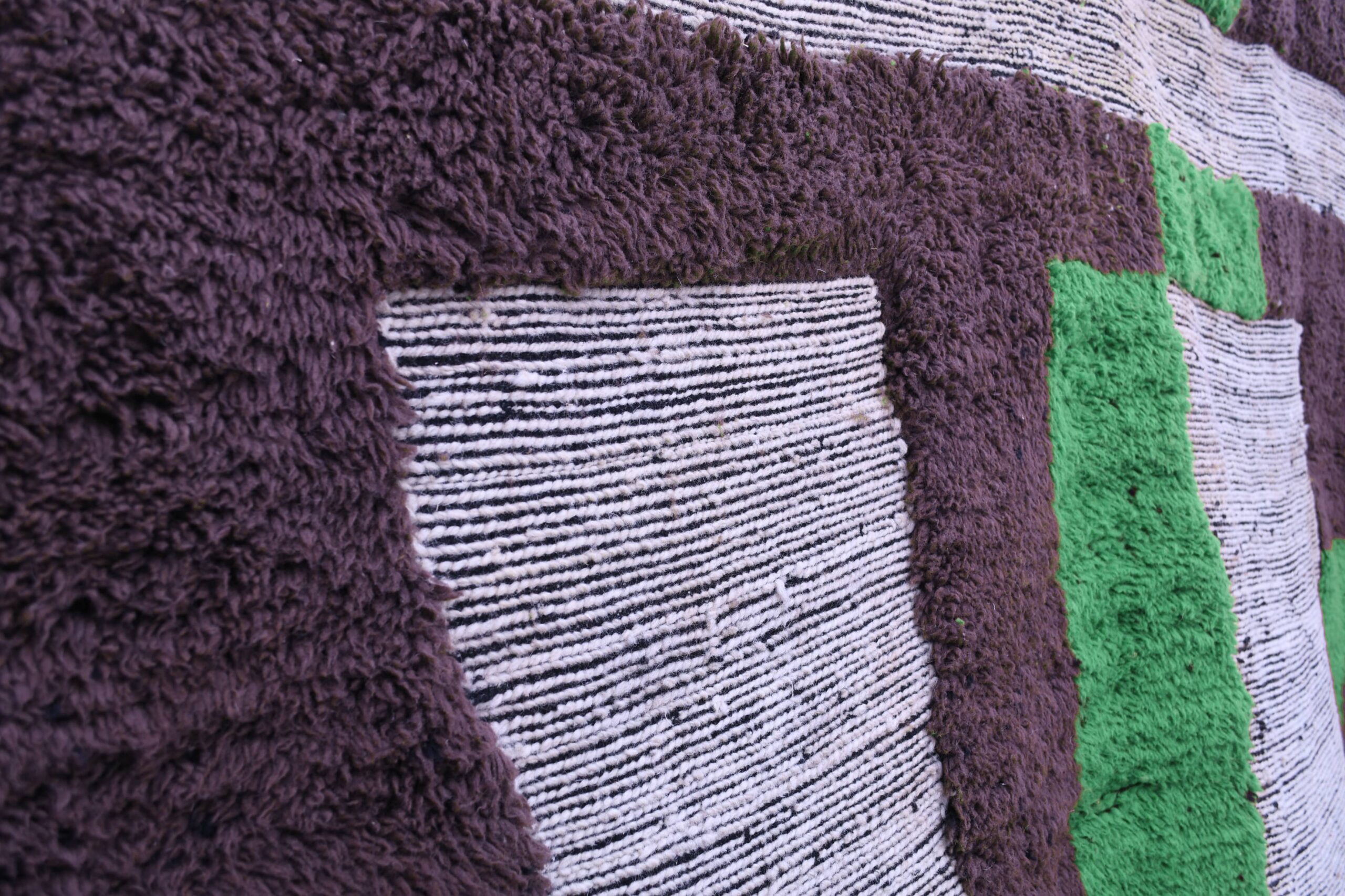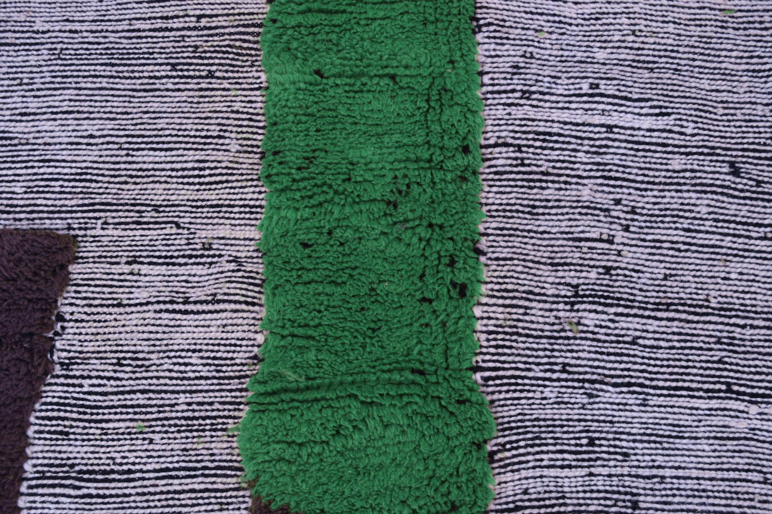 この本格的なハンドメイドモロッコラグは、温かみとくつろぎの空間をアメリカンスタイルの家に演出する、大胆でモダンなステートメントピースです。7×10フィート(約2.1×3メートル)のこのモロッコラグは、リビングルームラグとしても、寝室の広いエリアラグとしても美しくお使いいただけます。3世代にわたるベルベル人の職人によって天然ウールから手織りされたこのラグは、ニュートラルグレーのベースに深みのあるブラウン、そして鮮やかなグリーンのアクセントが調和し、モダンなボヘミアンスタイルを演出します。さらに、フェアトレード認証を受けた職人技で仕上げられた、信頼できる逸品です。