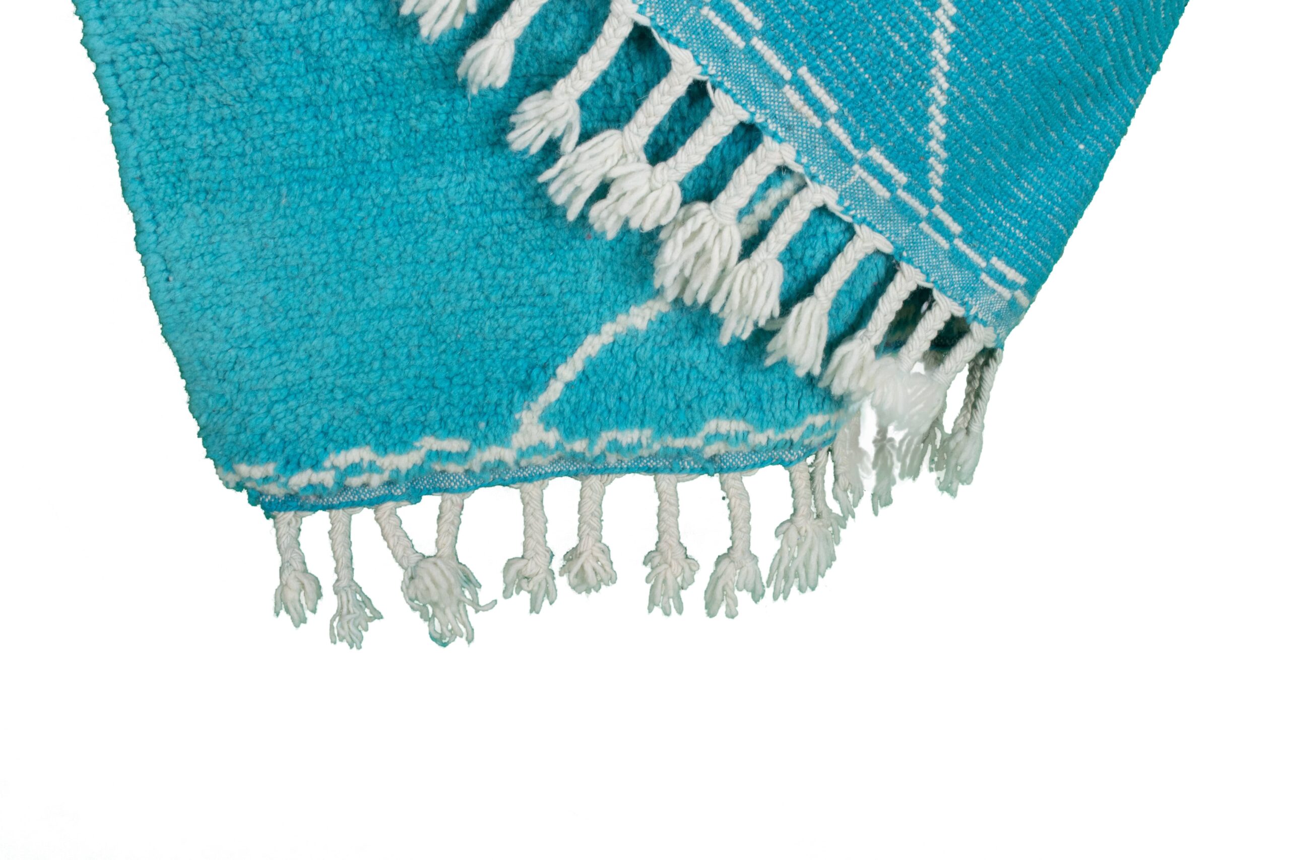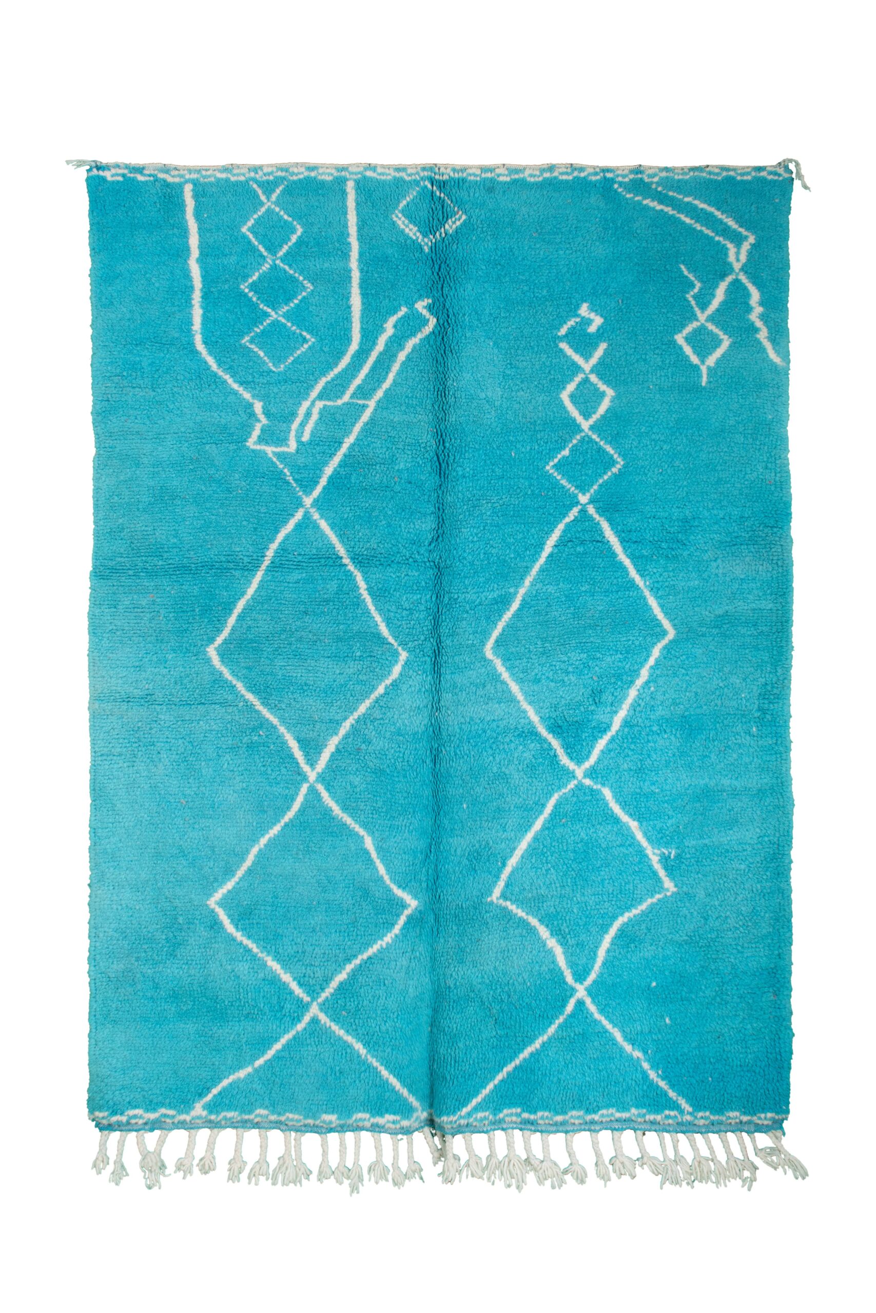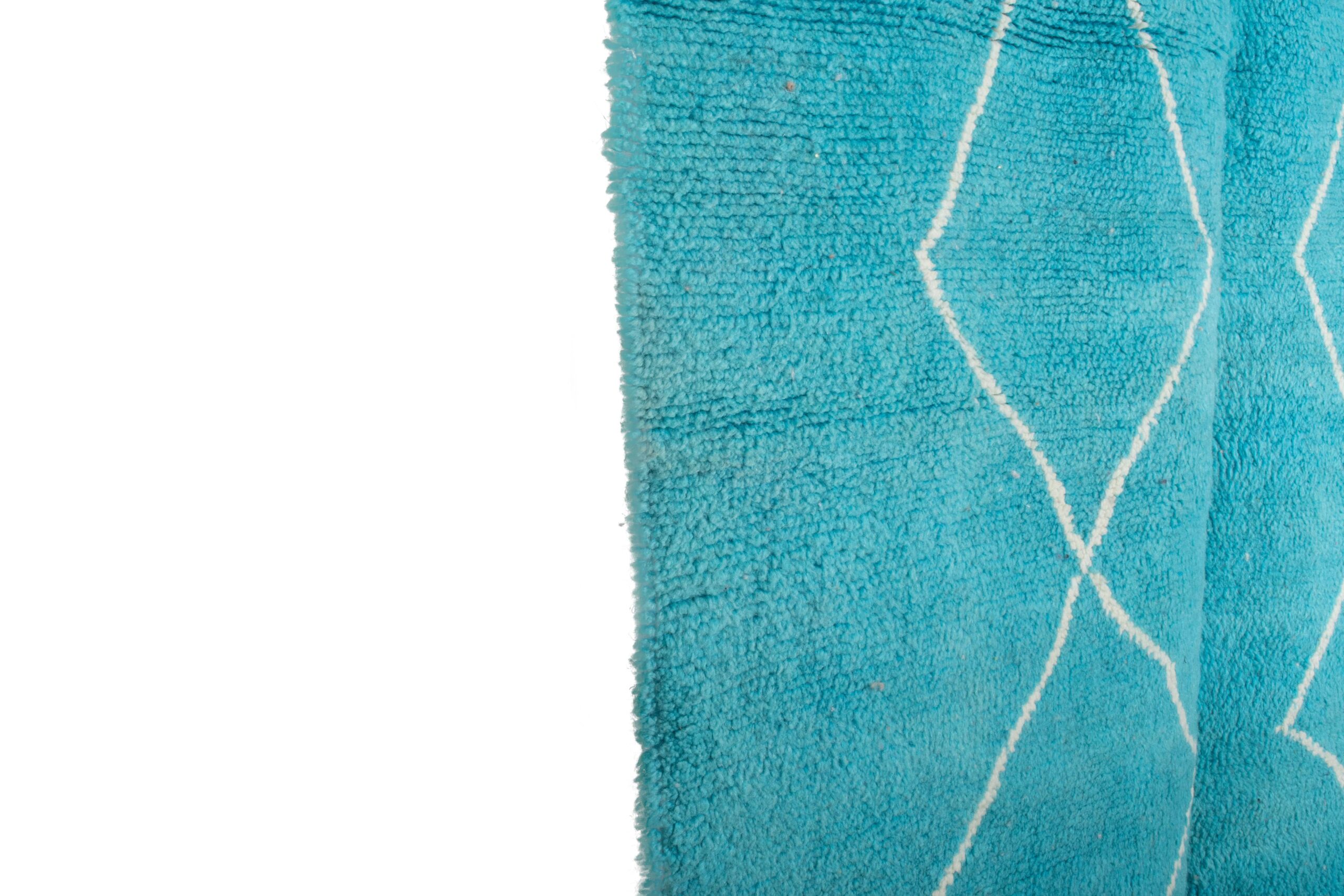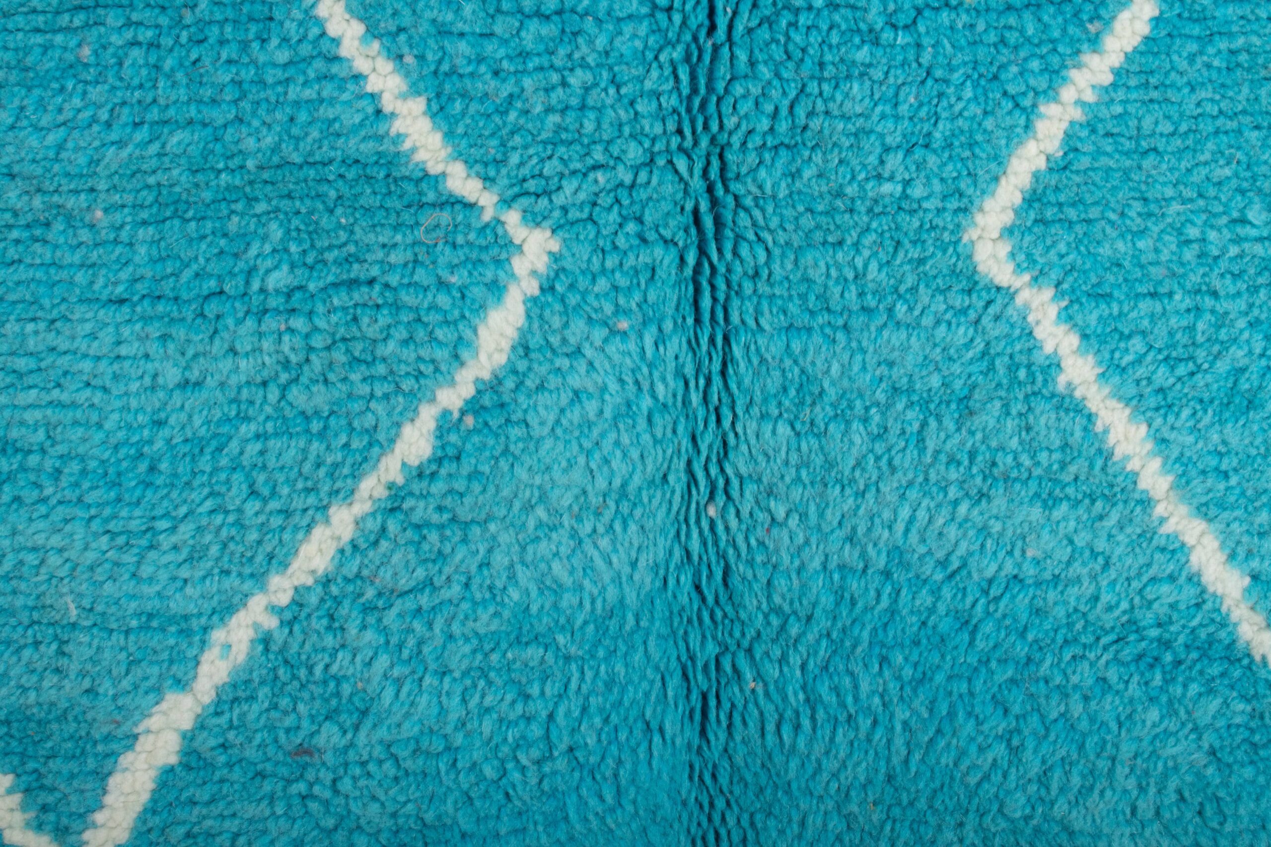 This authentic handmade Moroccan rug is a plush wool area rug designed to make your space feel instantly warmer and more pulled-together. In a vibrant turquoise/teal blue with clean ivory diamond lines, this Moroccan rug adds modern boho style without feeling busy. Sized at 5×7 ft, it’s an ideal living room rug for apartments and small spaces, and a cozy bedroom area rug that feels soft underfoot. Handwoven by 3rd generation Berber artisans and fair trade certified.