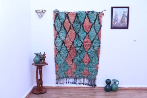 Марокканский ковер ручной работы из бушаруита 119x175 см – шерсть, синие и коралловые ромбы