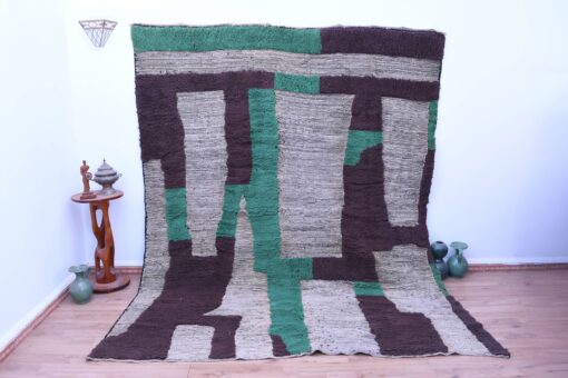 Изготовленный вручную из отборной шерсти, этот ковёр является примером высочайшего качества и долговечности, присущих марокканскому текстилю. Тщательное мастерство исполнения проявляется в замысловатых узорах и бархатистой текстуре ковра, гарантируя, что он станет вашей любимой вещью на долгие годы. Использование высококачественной шерсти не только повышает его эстетическую привлекательность, но и обеспечивает мягкость и роскошь на ощупь.