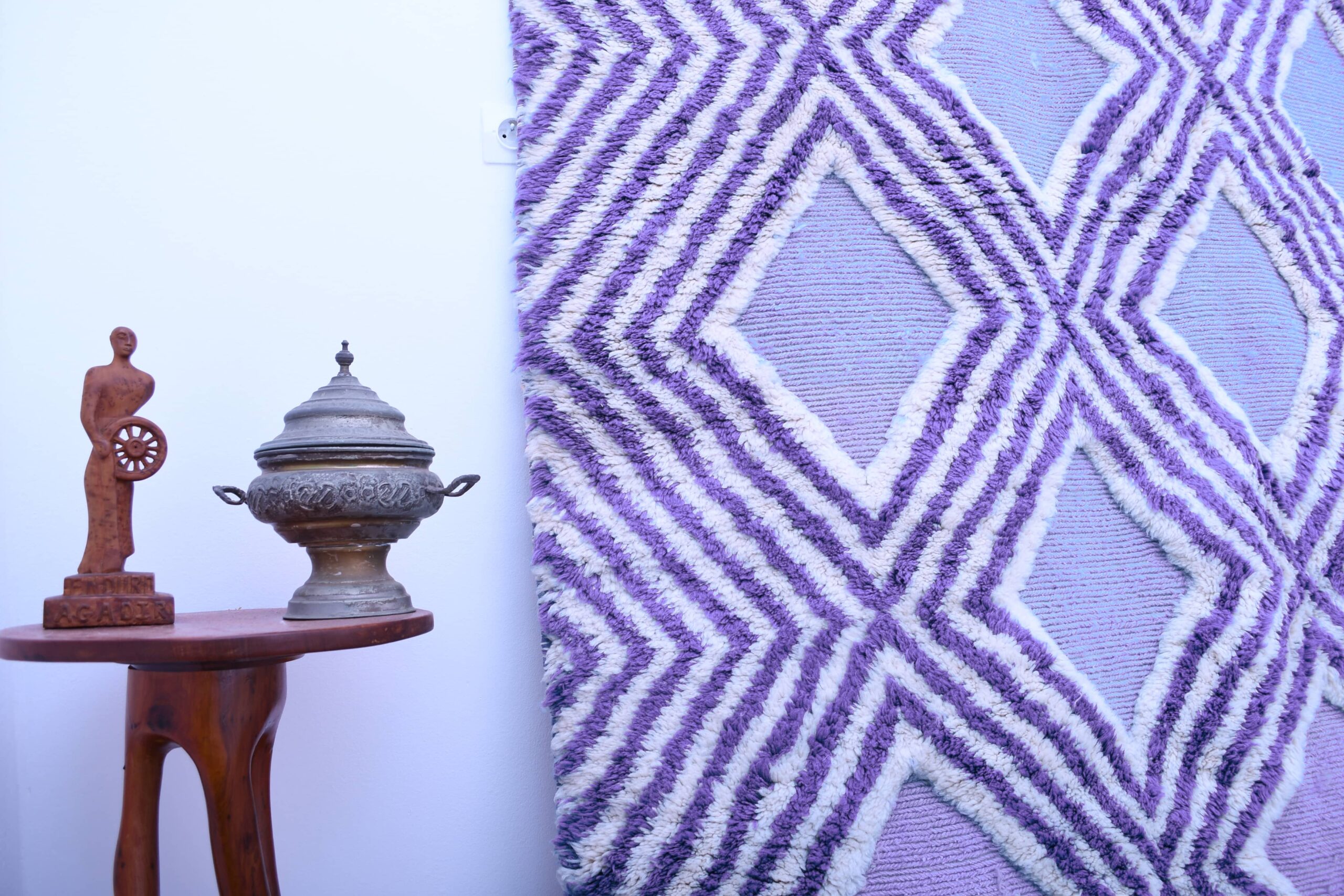 Марокканский шерстяной ковер Mrirt 200x300 см - фиолетовый геометрический узор ручной работыМарокканский шерстяной ковер Mrirt 200×300 см – фиолетовый геометрический узор ручной работы