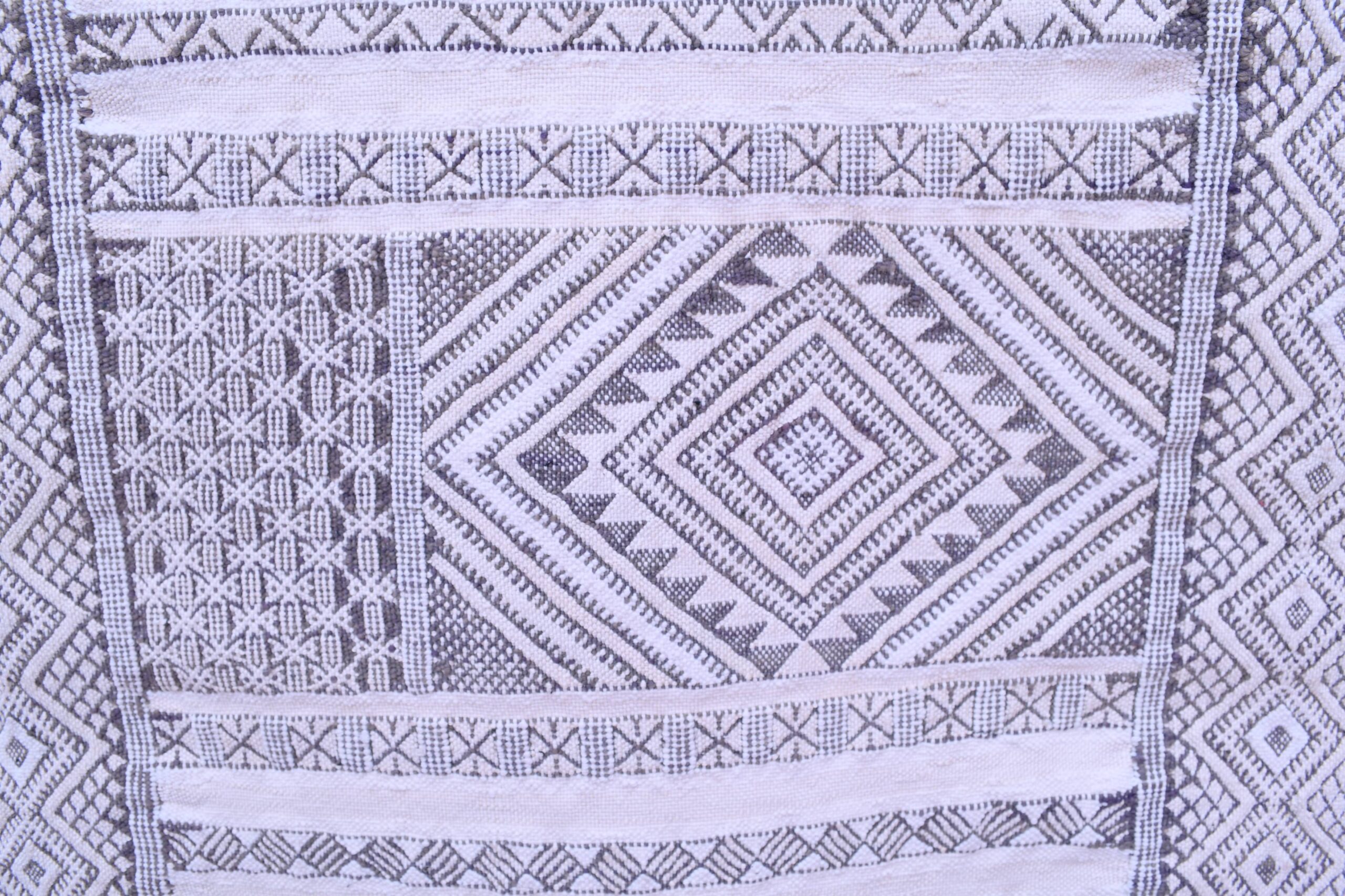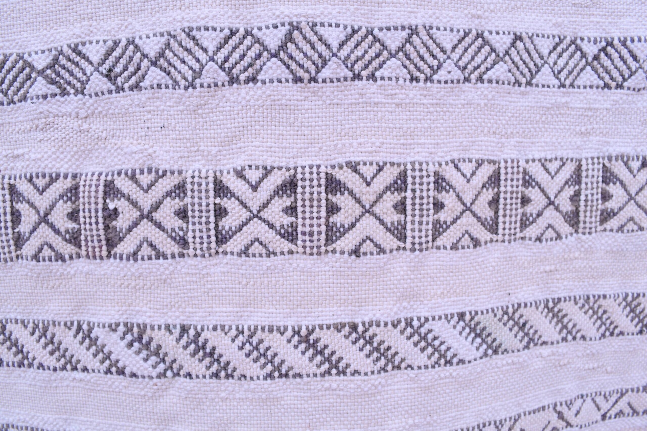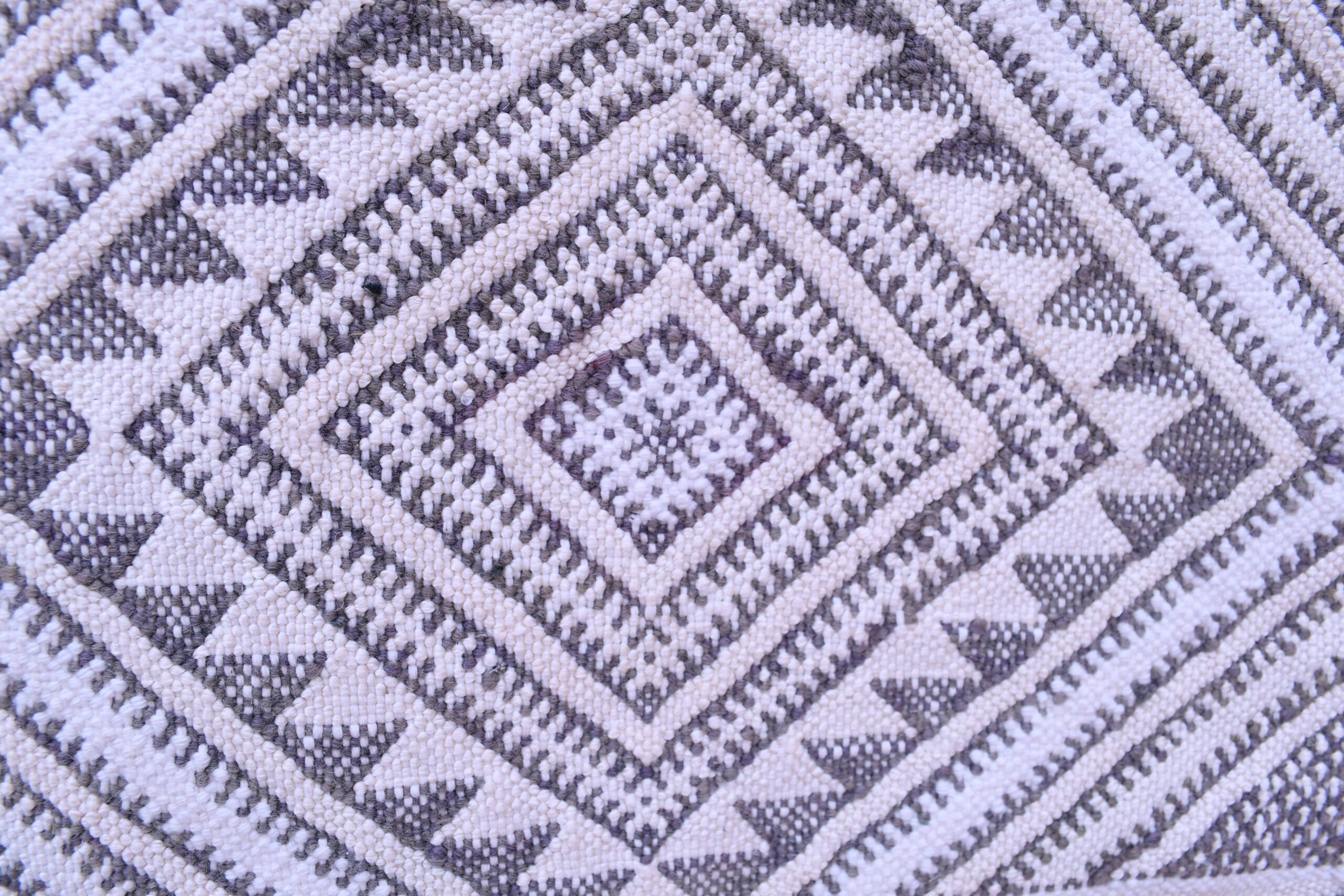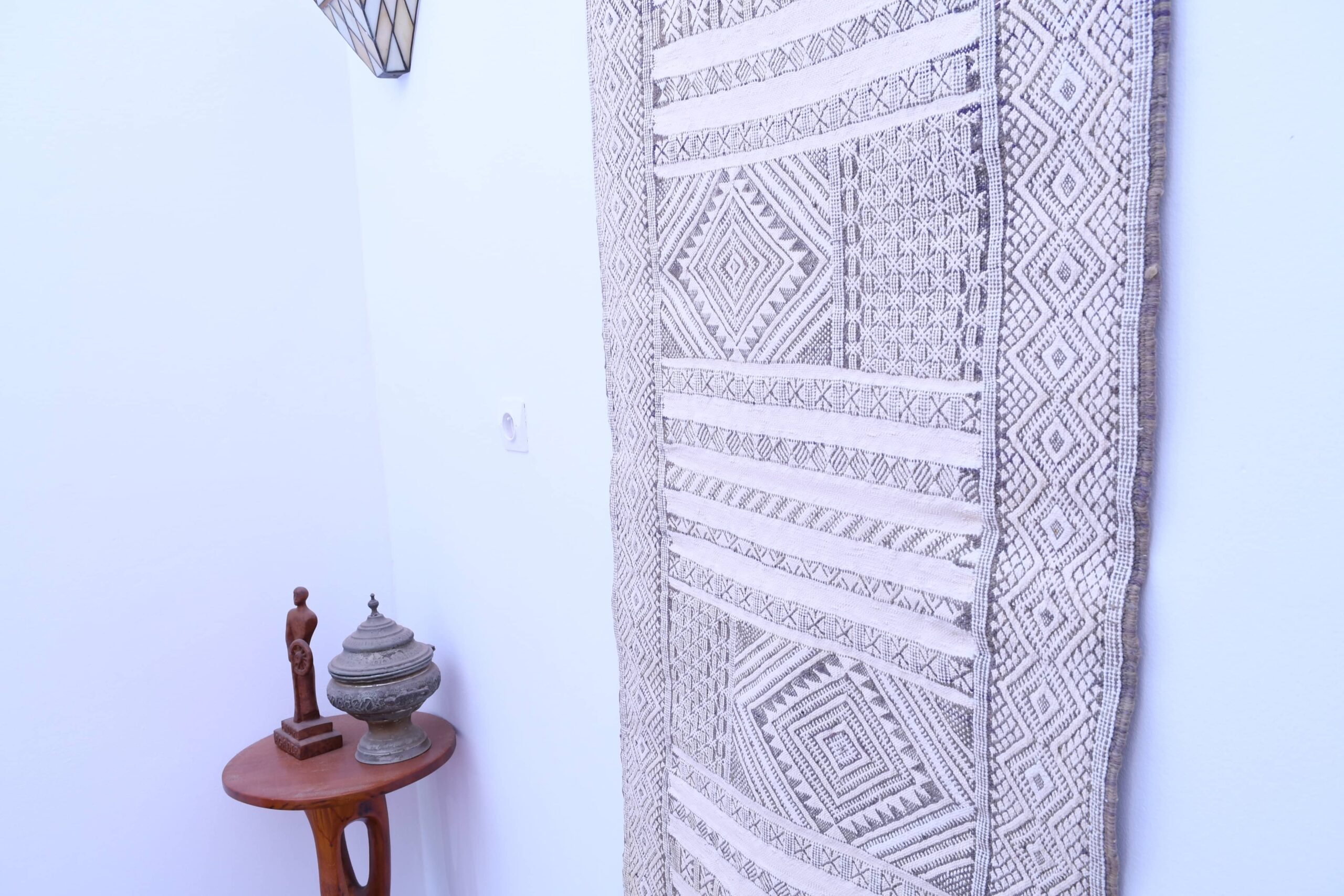 With its refined design and neutral colors, this Tiflet Kilim rug is perfect for enhancing the decor of living rooms, bedrooms, or entryways. Its size makes it an ideal choice for adding a touch of sophistication to smaller spaces or as a complementary piece in larger rooms. Pair it with wooden furniture and earthy tones to create a warm, inviting atmosphere.