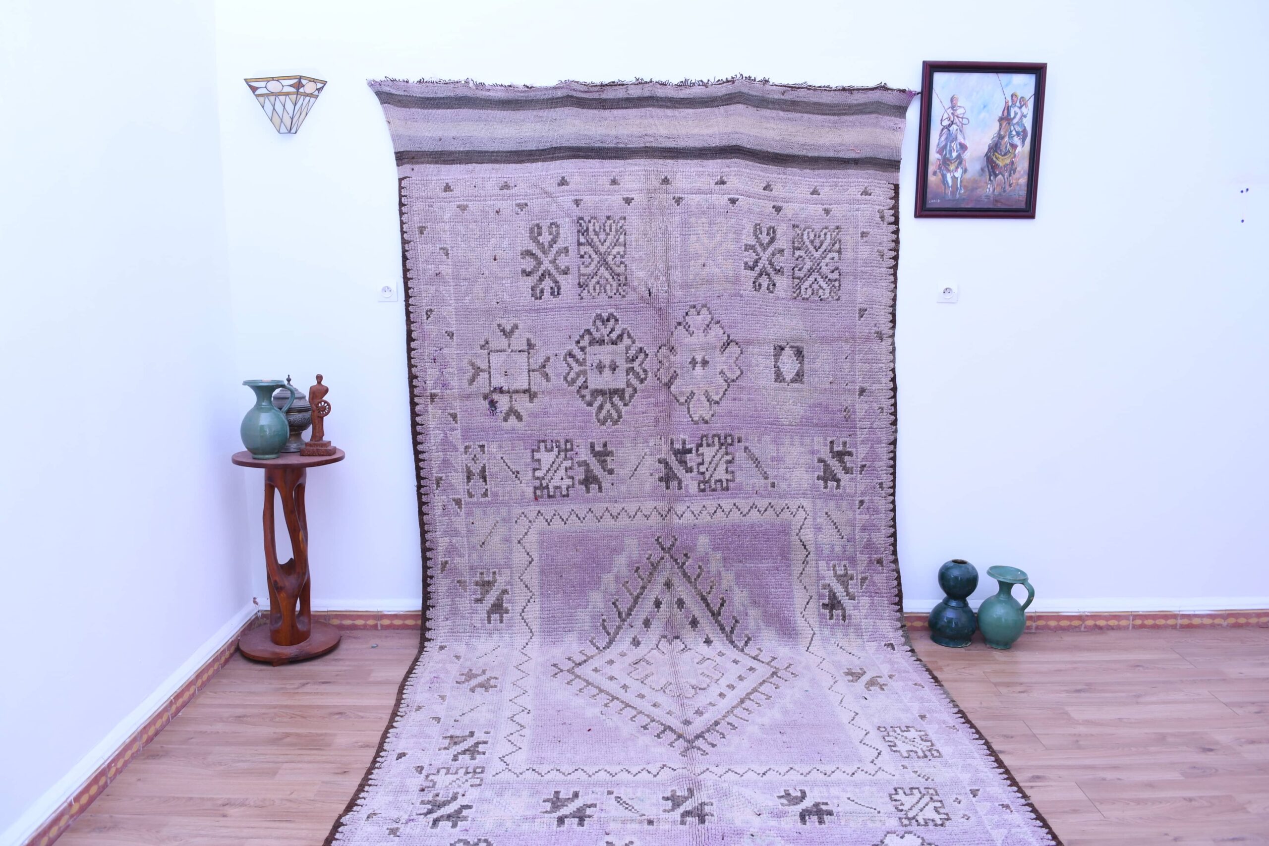 Изысканный фиолетовый марокканский шерстяной ковер Beni Mguild 187x465 см – Элегантность ручной работы