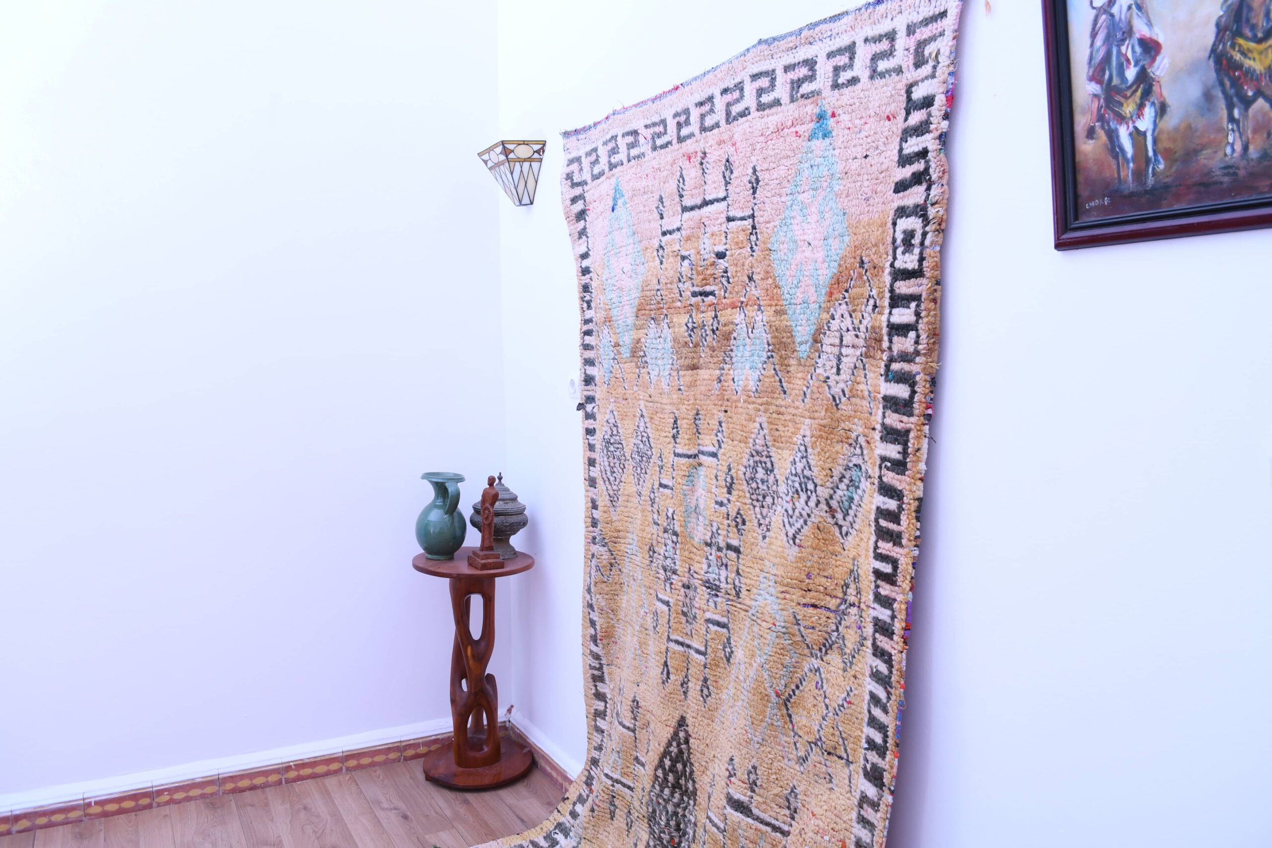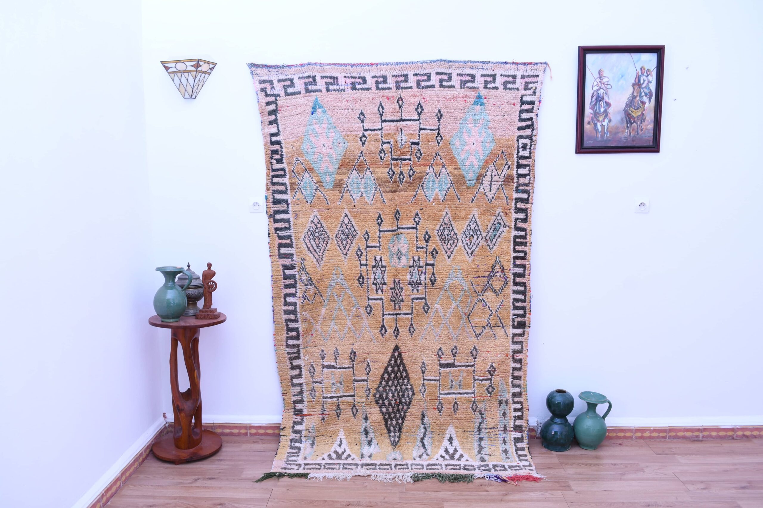Марокканский шерстяной ковер Beni Mguild ручной работы 145x237 см – уникальный коричневый геометрический узор