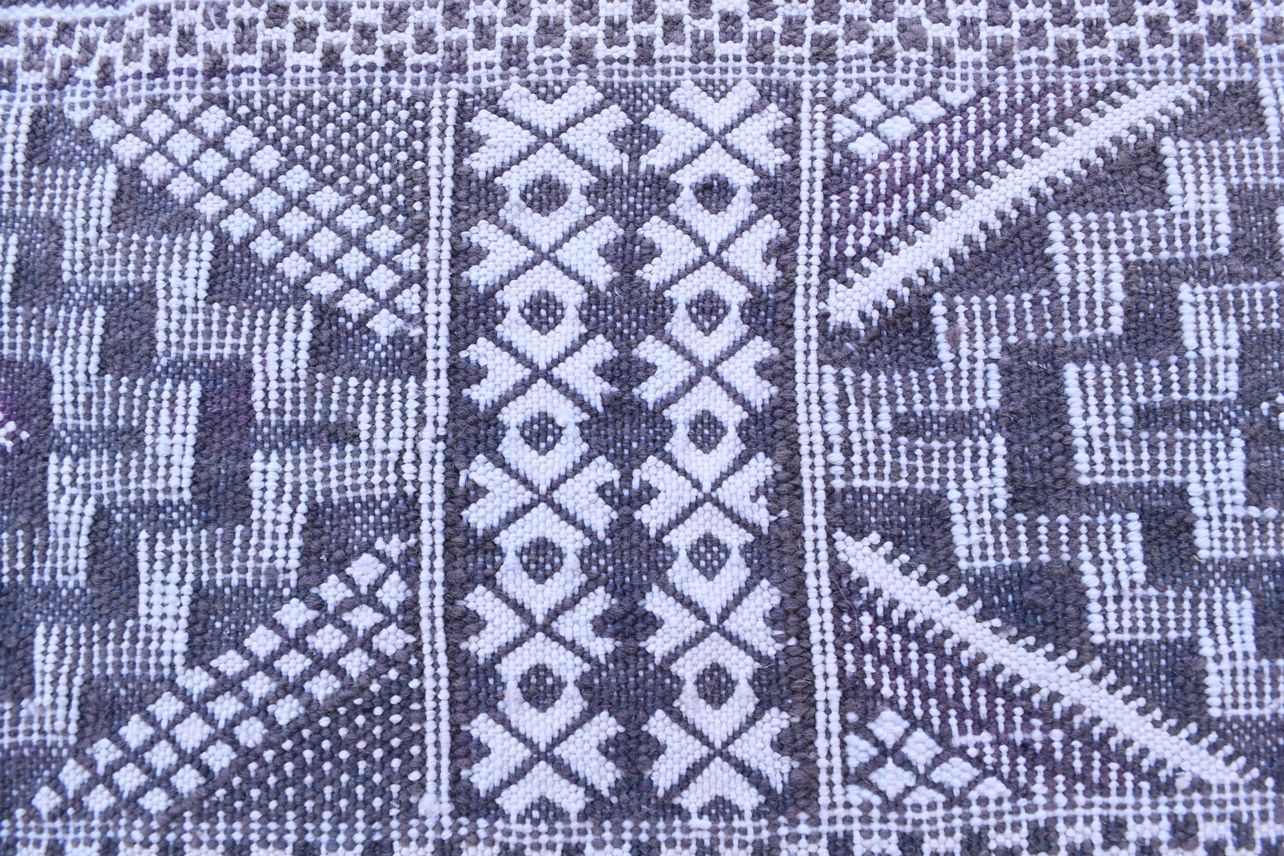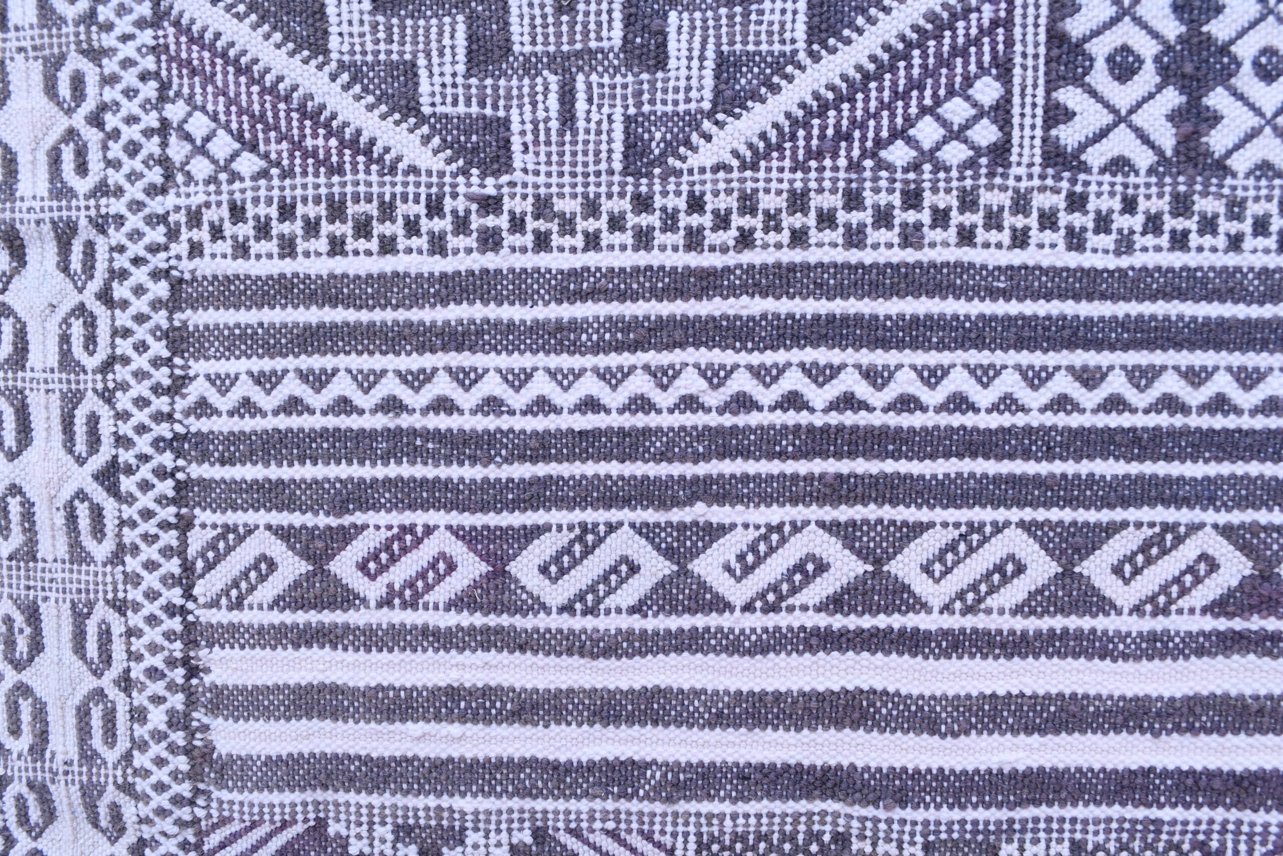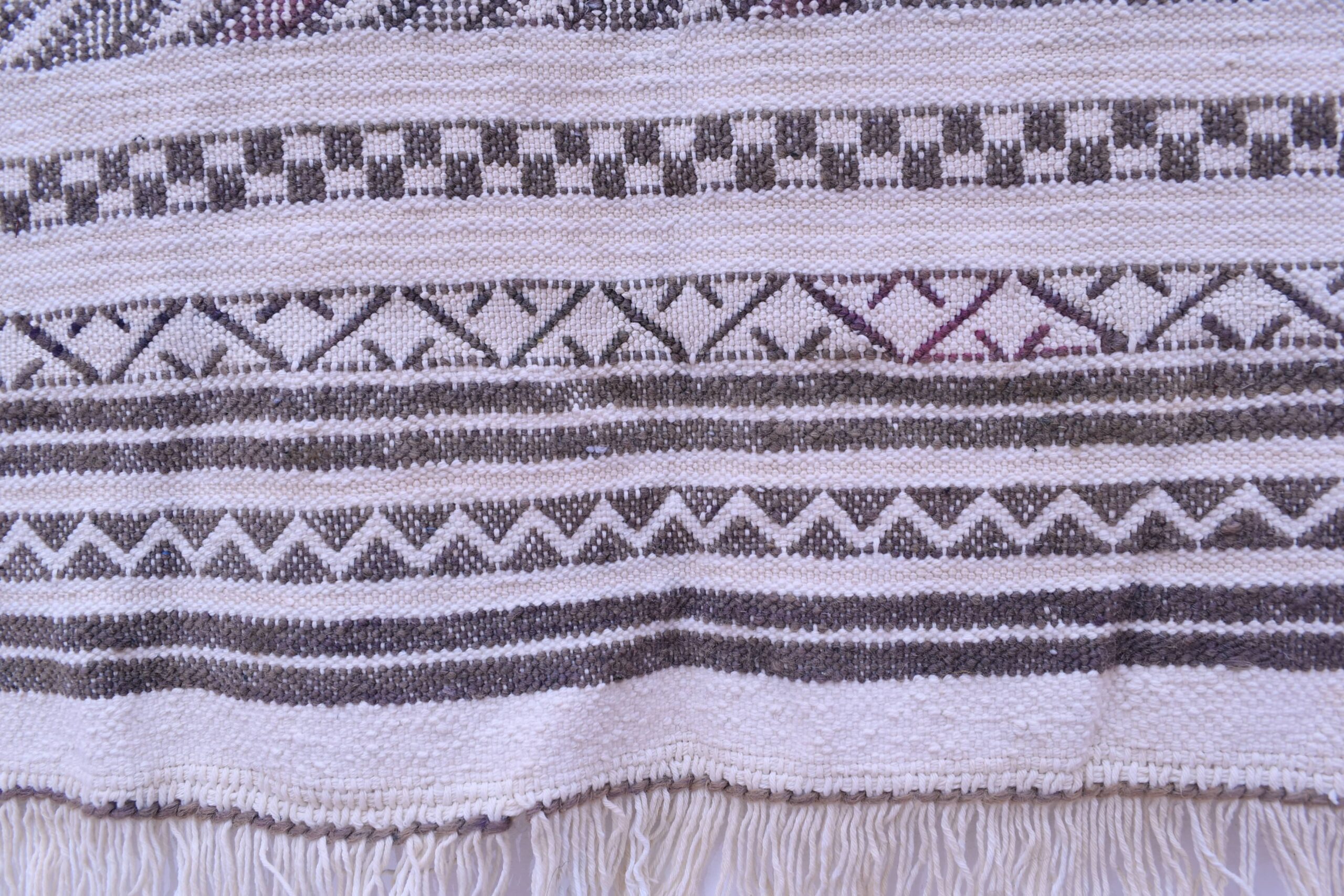 This Tiflet Kilim rug is perfect for enhancing the ambiance of living rooms, bedrooms, or study areas. Its neutral colors and elegant design make it an ideal match for both minimalist and eclectic decor themes. Whether placed under a coffee table or as a wall hanging, this rug adds a touch of Moroccan elegance to any space.