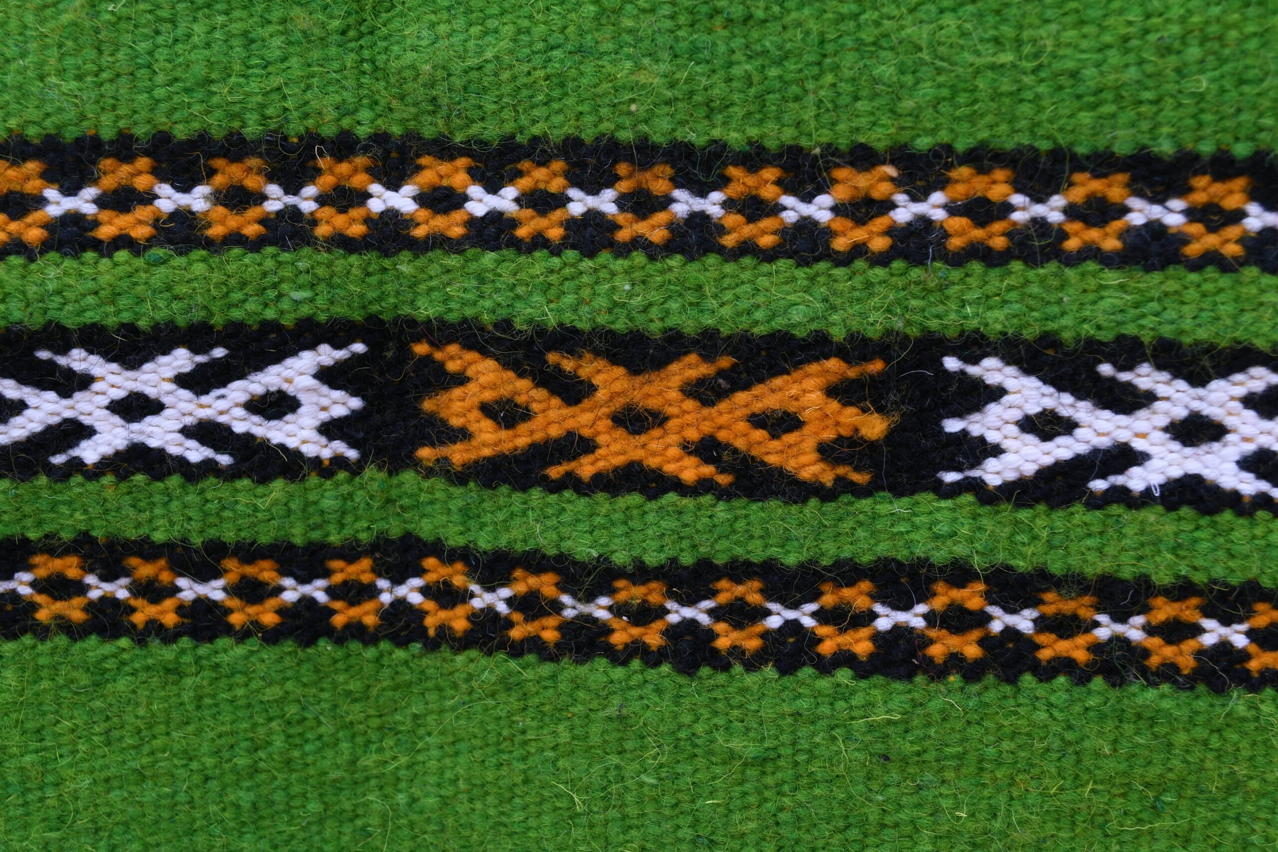 The rug features a vibrant palette dominated by lush greens, complemented by striking accents of orange, black, and white. This harmonious color combination adds depth and character, making it an eye-catching centerpiece for any room. The interplay of colors is expertly balanced, enhancing the rug’s aesthetic appeal.