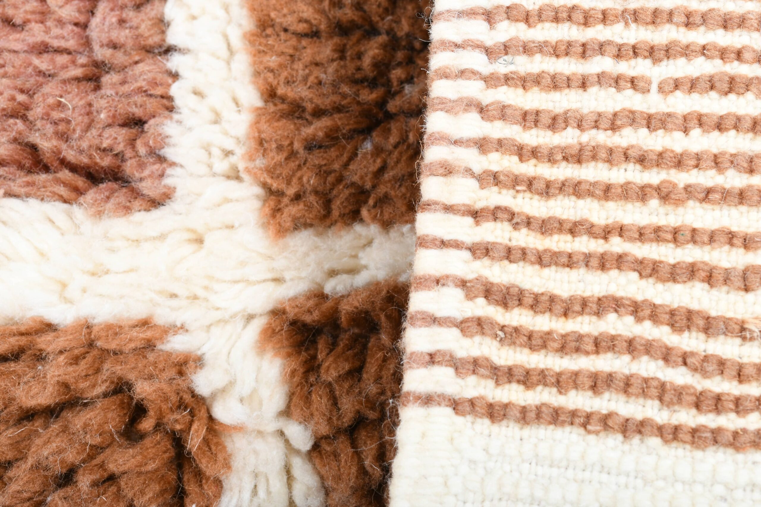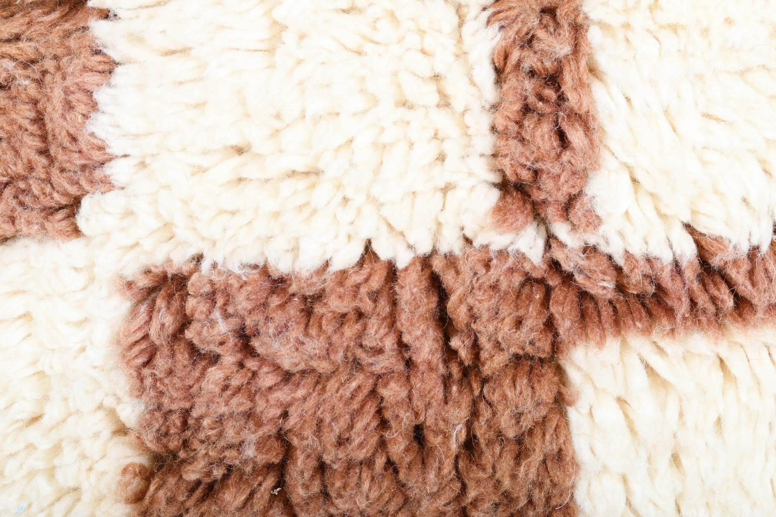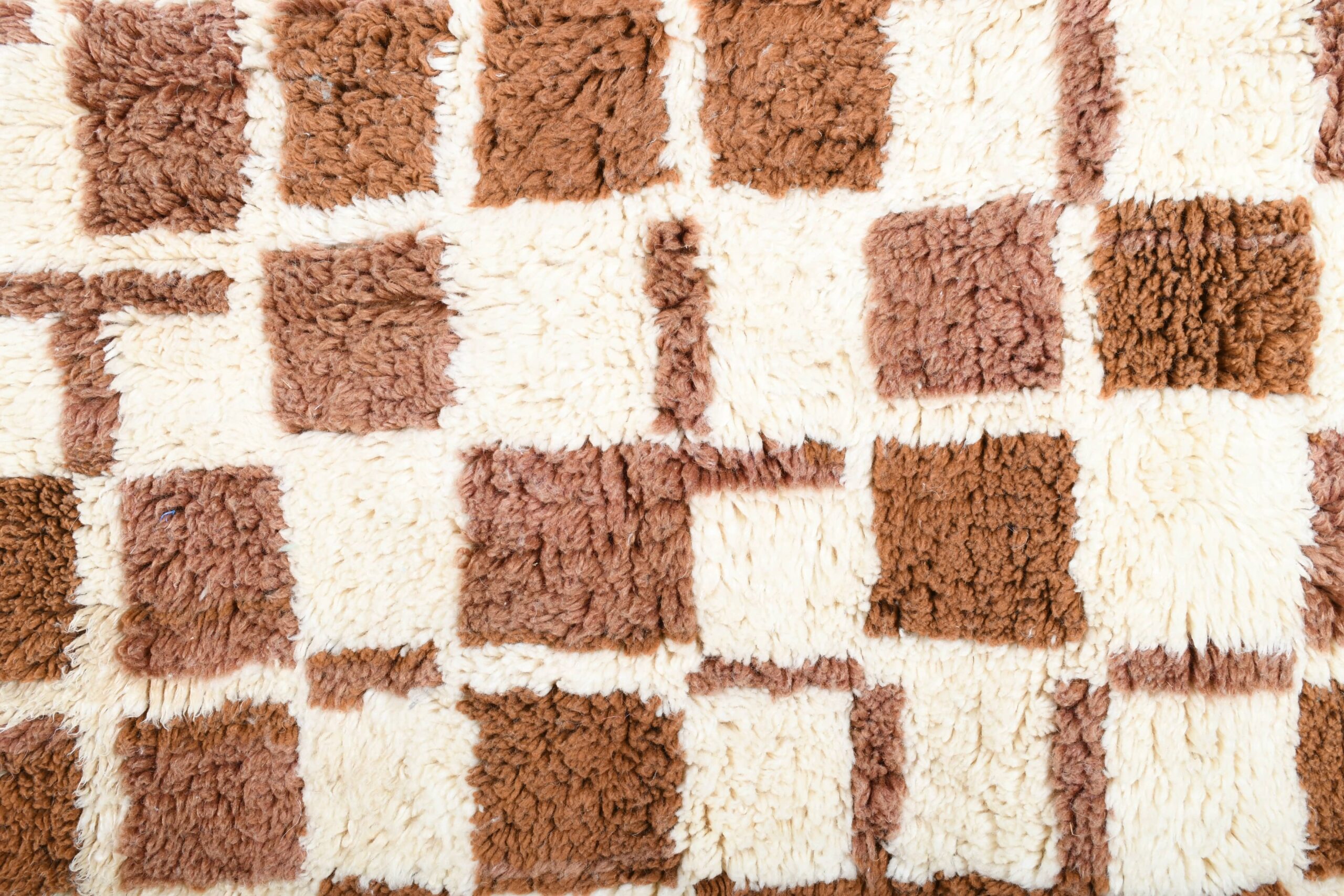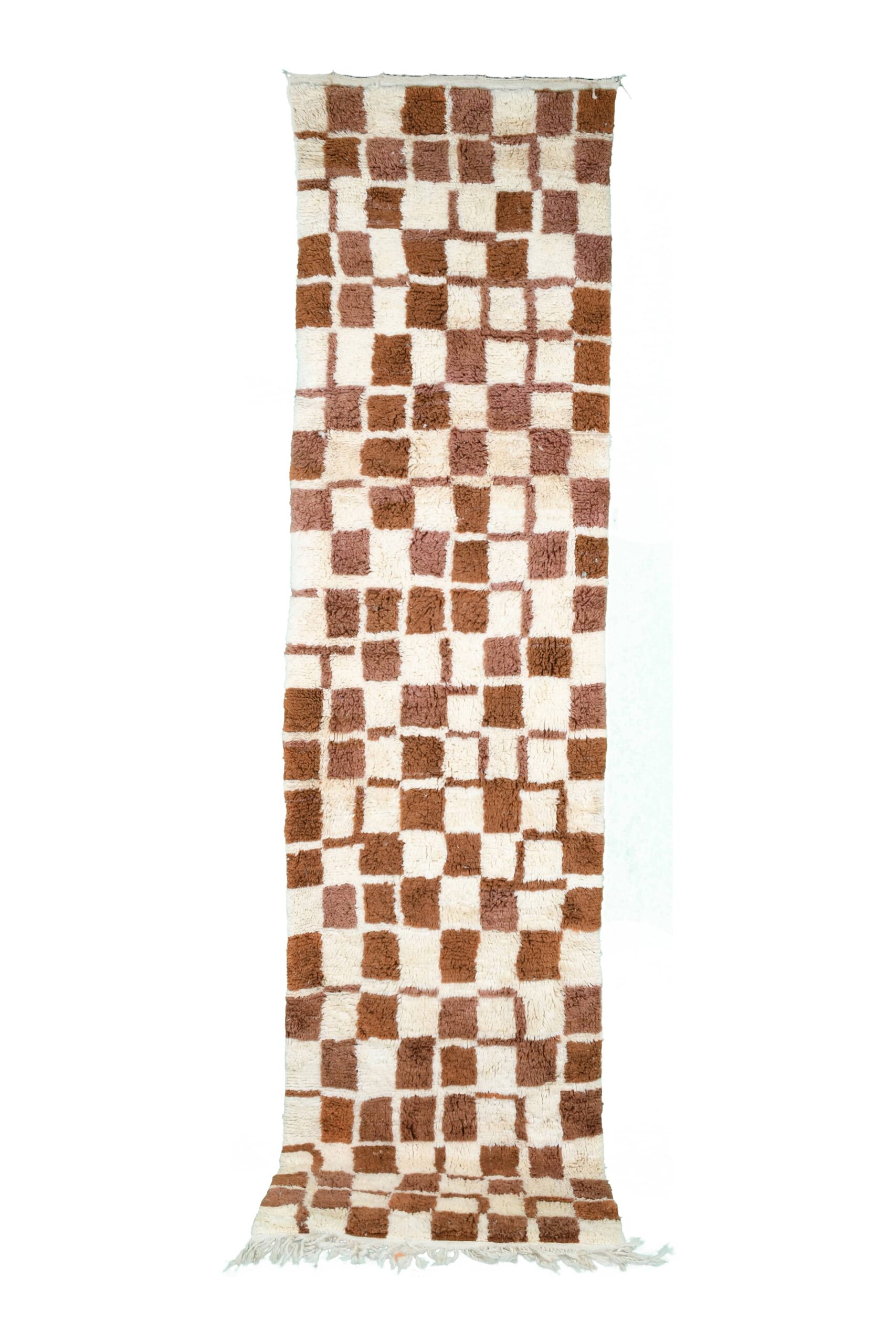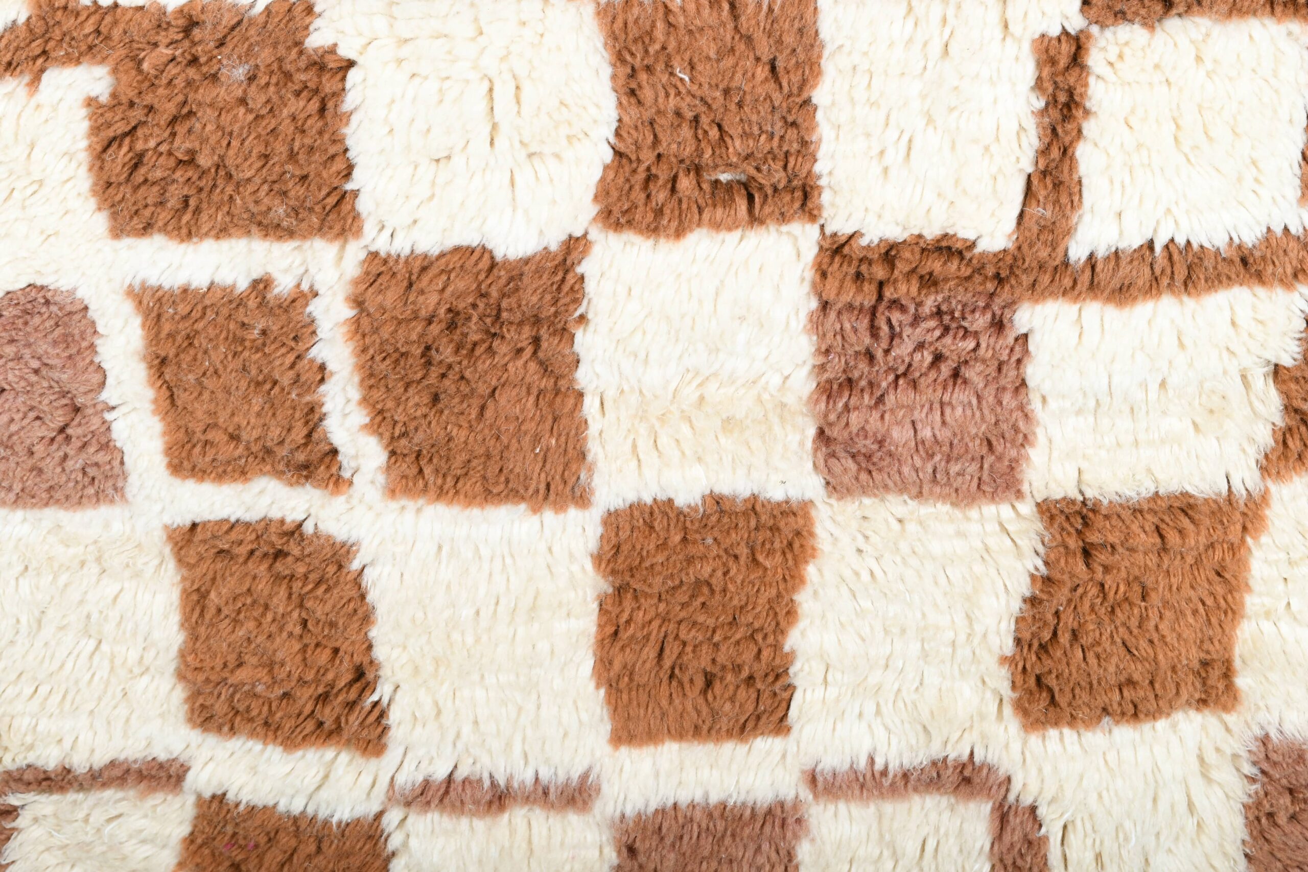 The palette is buyer-friendly and versatile: creamy ivory with caramel/cognac and mocha brown tones in a modern checkered grid. The soft wool pile feels plush and inviting underfoot—perfect if you want a minimalist, modern, or boho vibe without loud colors. This runner works beautifully in a long hallway, kitchen walkway, bedroom side runner, or as a grounding piece in a living room with neutral upholstery, wood floors, and warm earthy accents.
