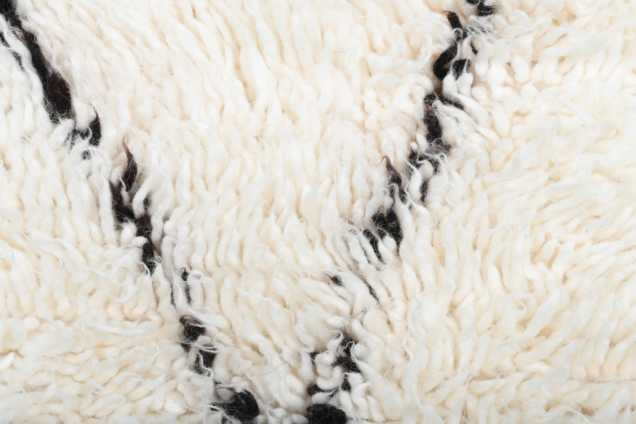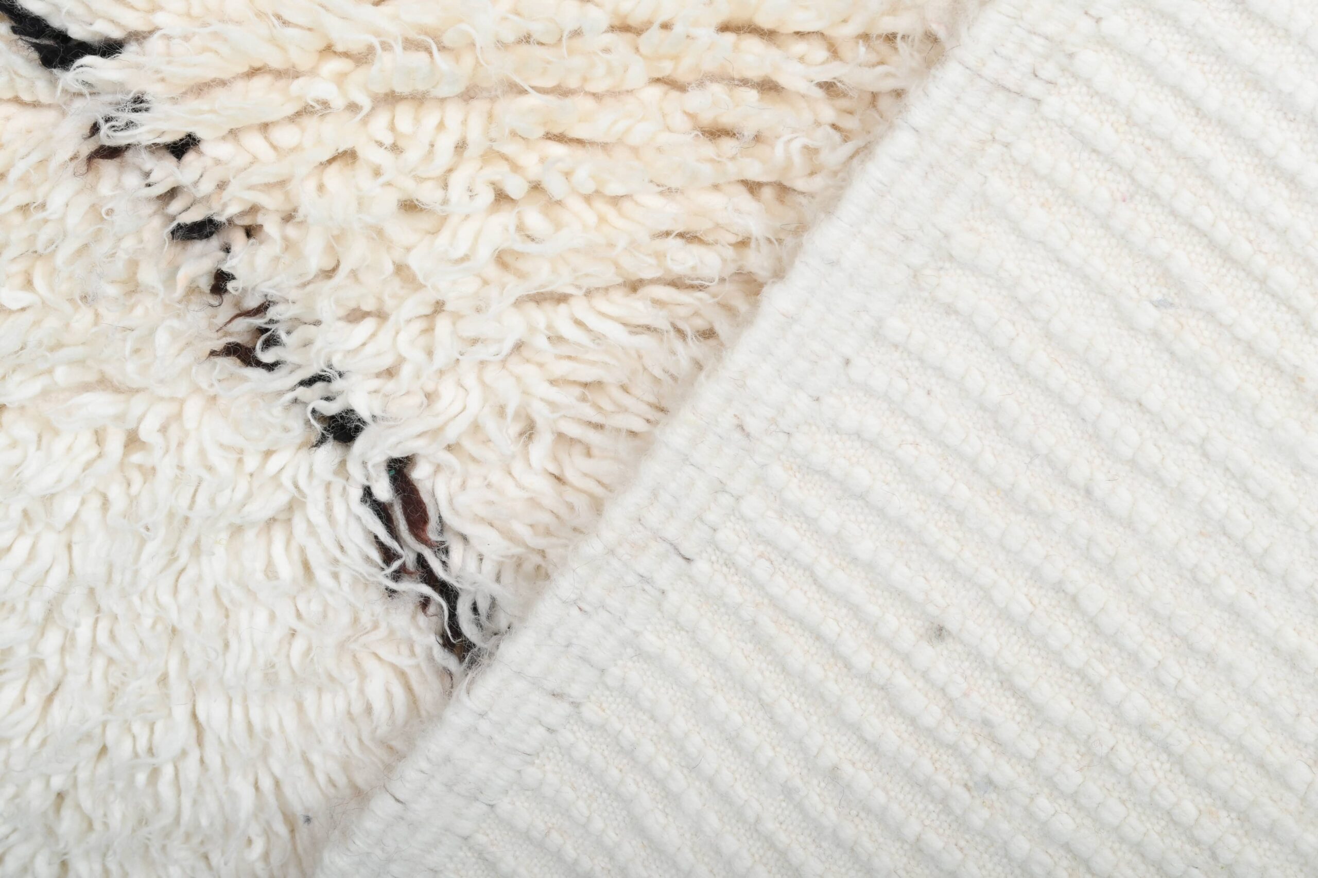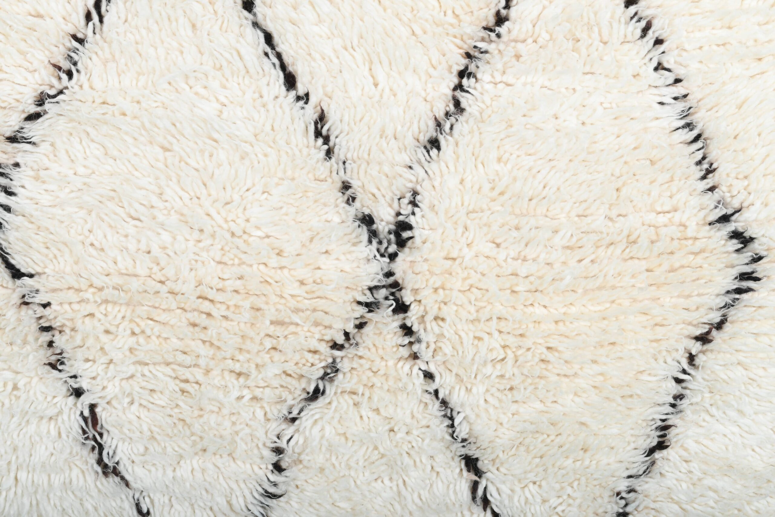 The color palette is the #1 reason customers choose this style: creamy ivory/white wool with thin black lines that read as modern and clean—not busy. This Moroccan wool rug adds texture without overwhelming your furniture, making it easy to style with neutral couches, wood floors, and layered textiles. Use it as a cozy bedroom rug for warm feet in the morning, or as a living room rug to soften a seating area. The pile is thick and inviting, with that classic handwoven character you can feel underfoot.