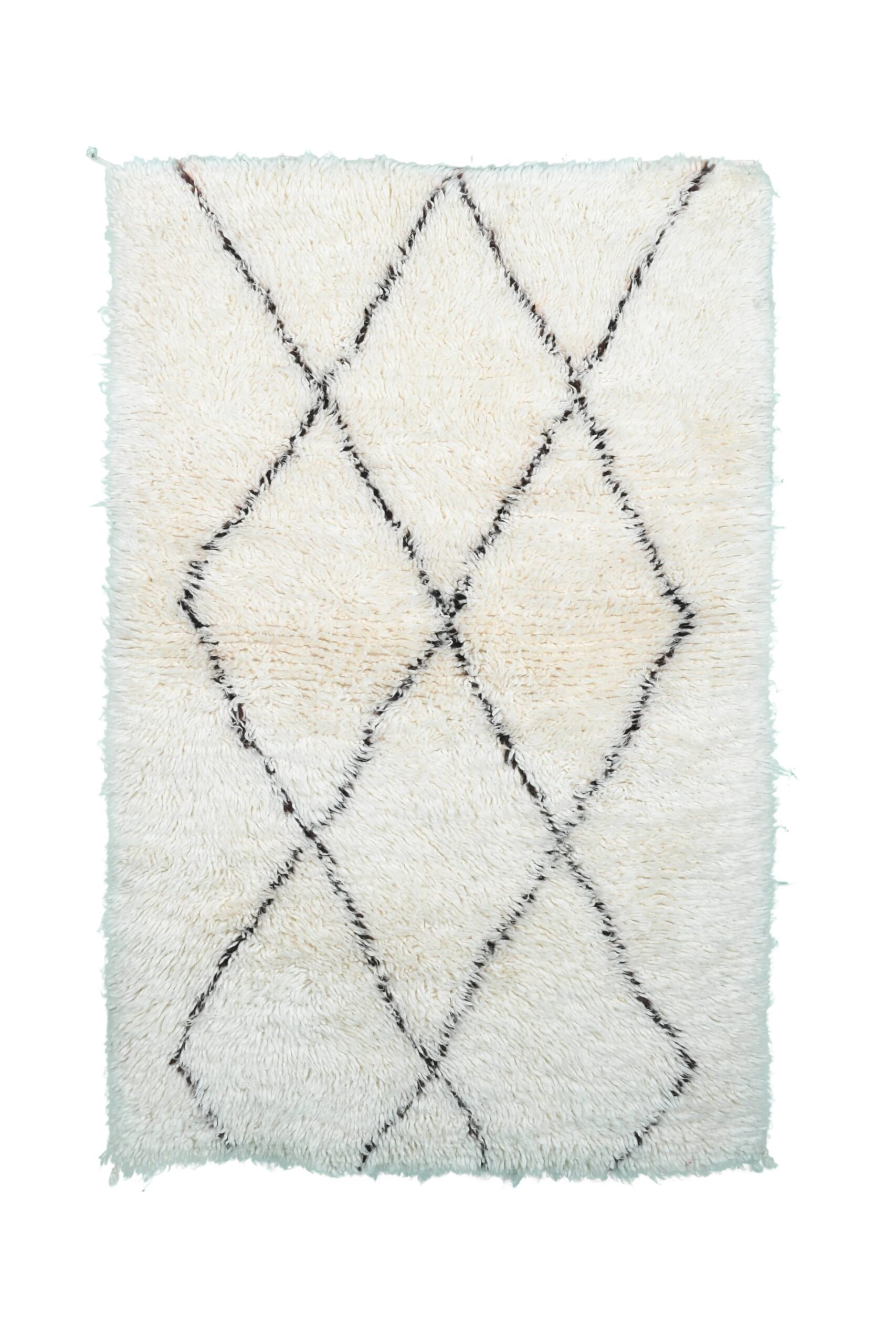 This authentic handmade Moroccan rug is a plush wool area rug designed to warm up modern American homes. The soft ivory base with clean black diamond lines gives you that timeless Moroccan rug look that works with minimalist, boho, and Scandinavian decor. Sized 3×6 ft, it’s perfect as a hallway runner alternative, a bedroom area rug beside the bed, or a living room accent in front of a sofa. Made by 3rd generation Berber artisans and fair trade certified.